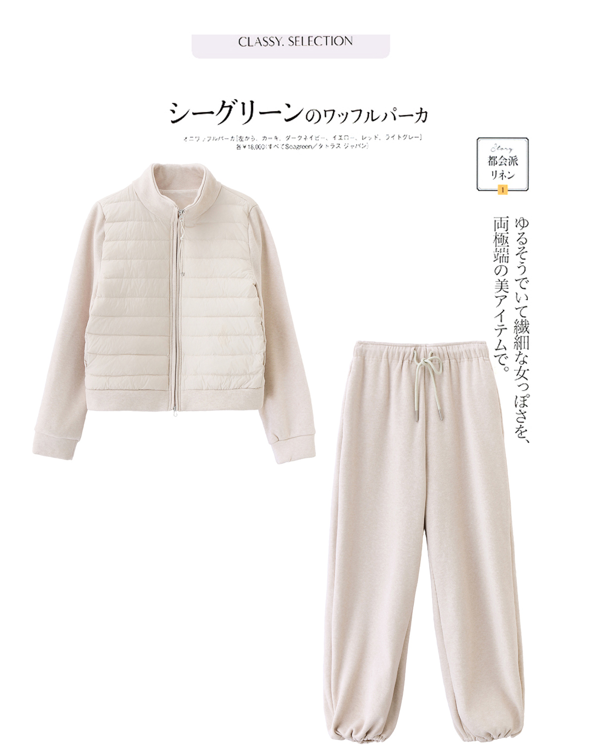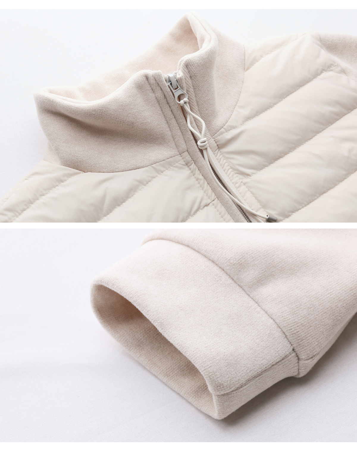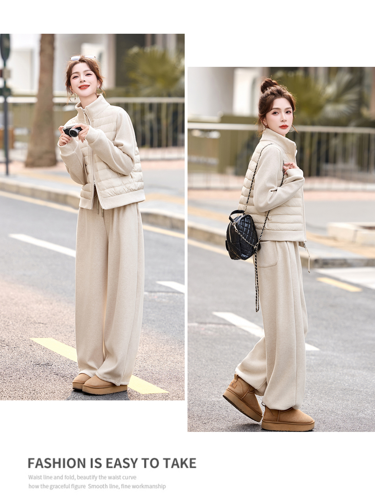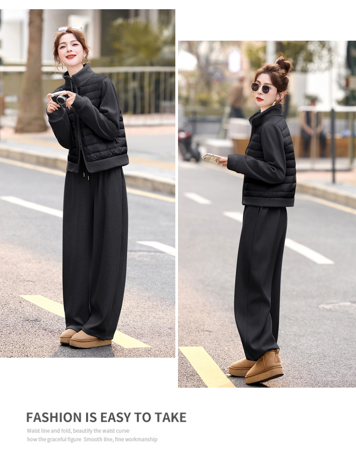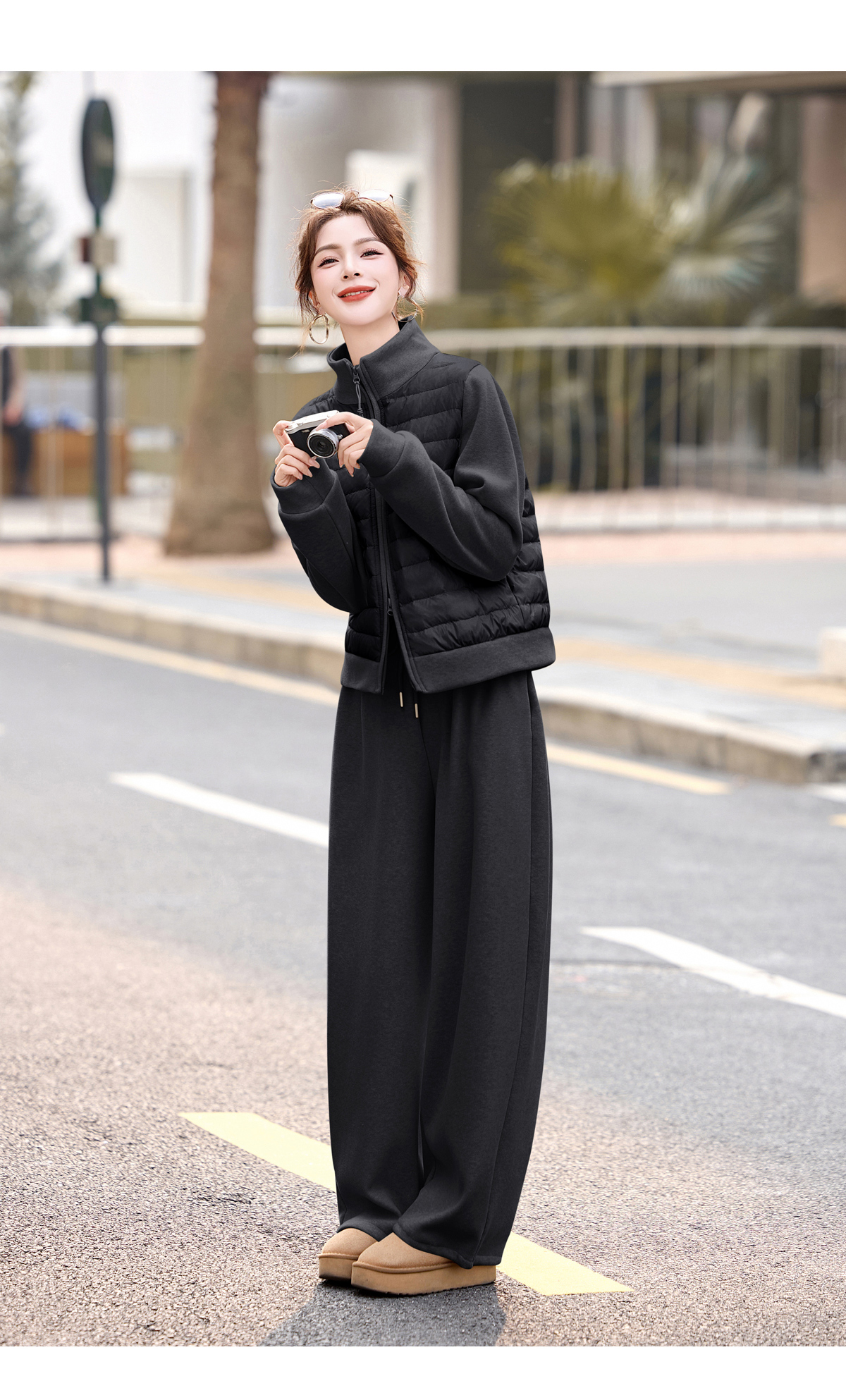 韩版拼接立领排骨90绒羽绒服外套,配加厚松紧腰卫裤套装HR-YDYX9511