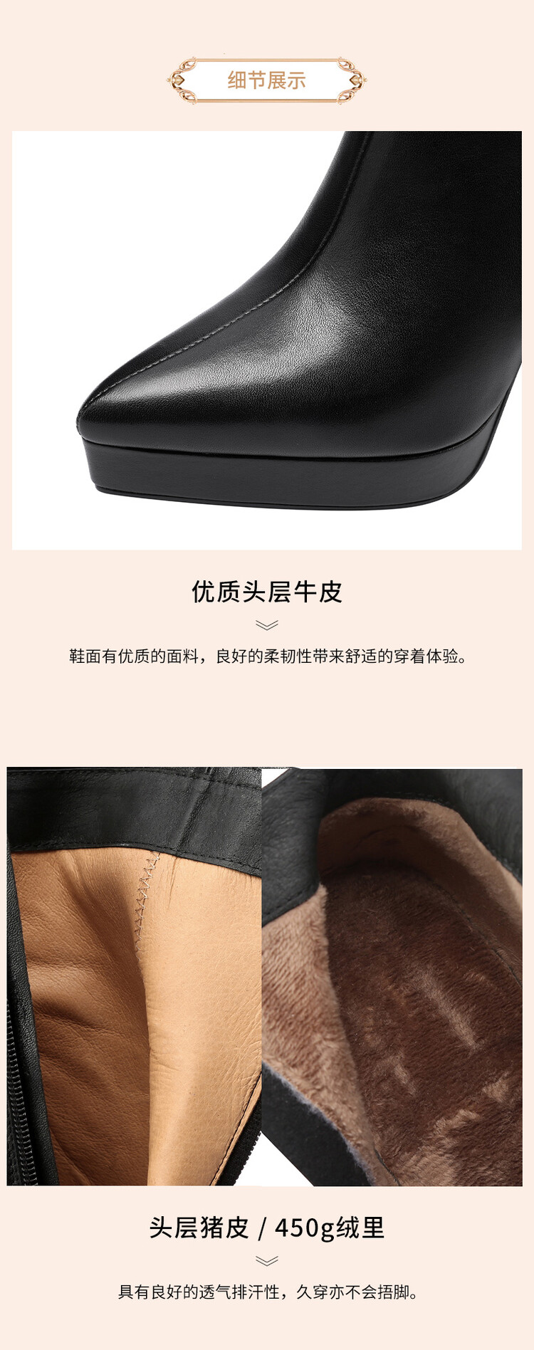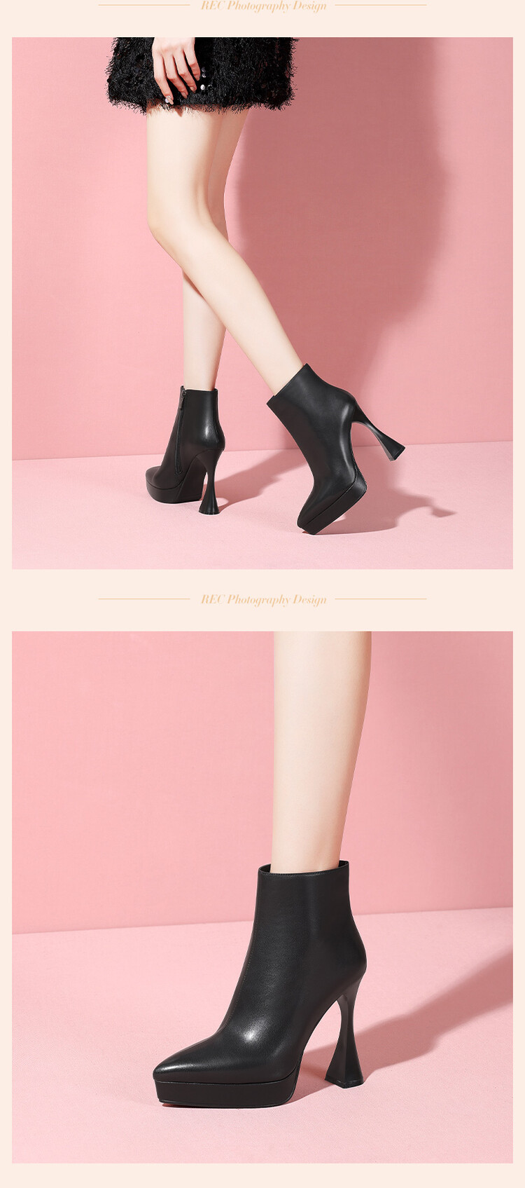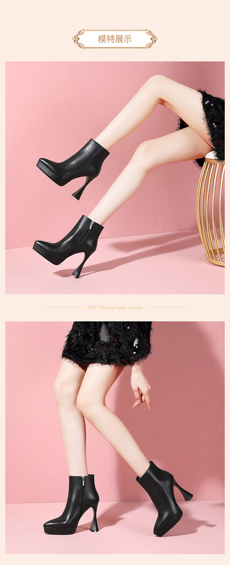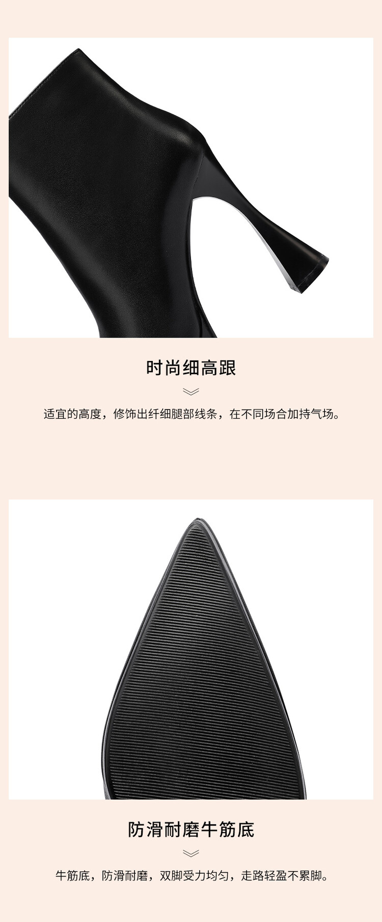 【预售5天】黑色小高跟鞋拼接法式优雅尖头细跟及裸靴冬季短靴XC&SR206