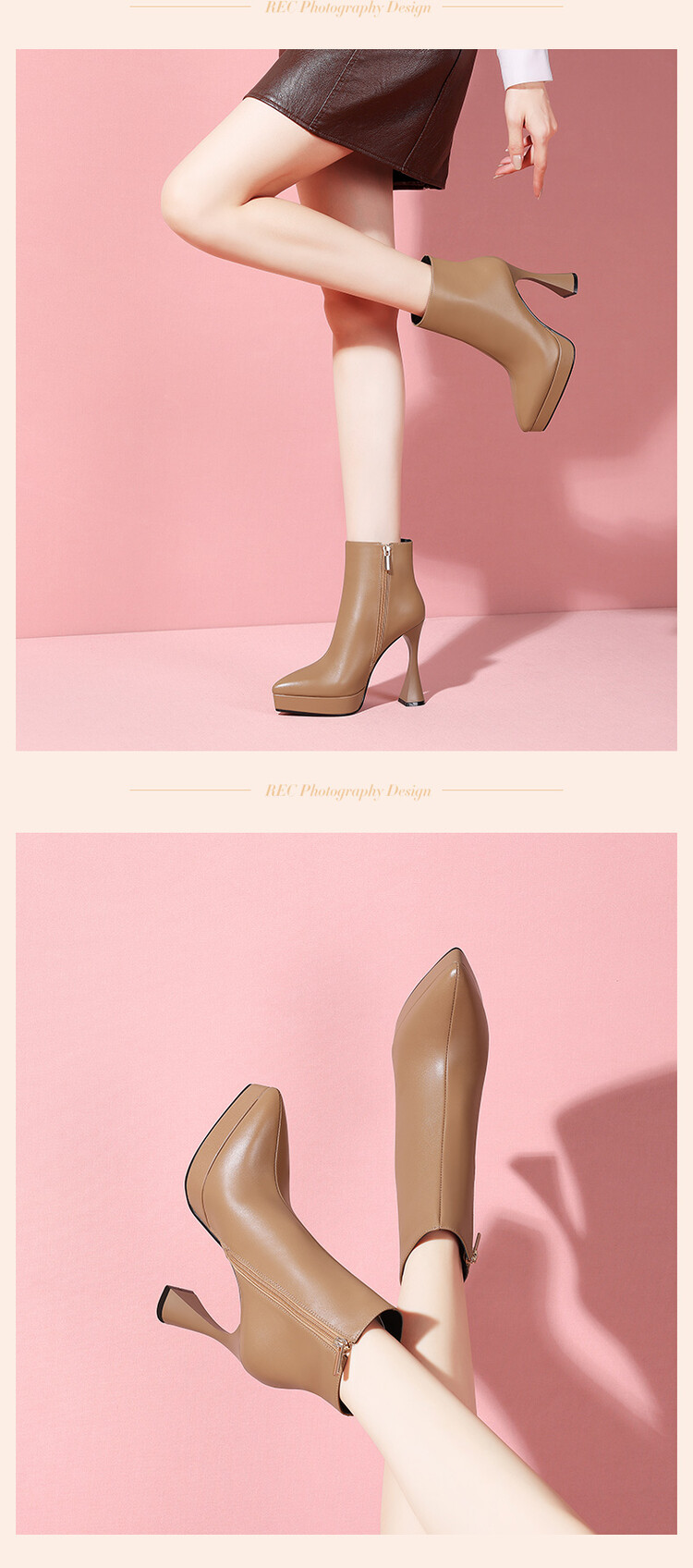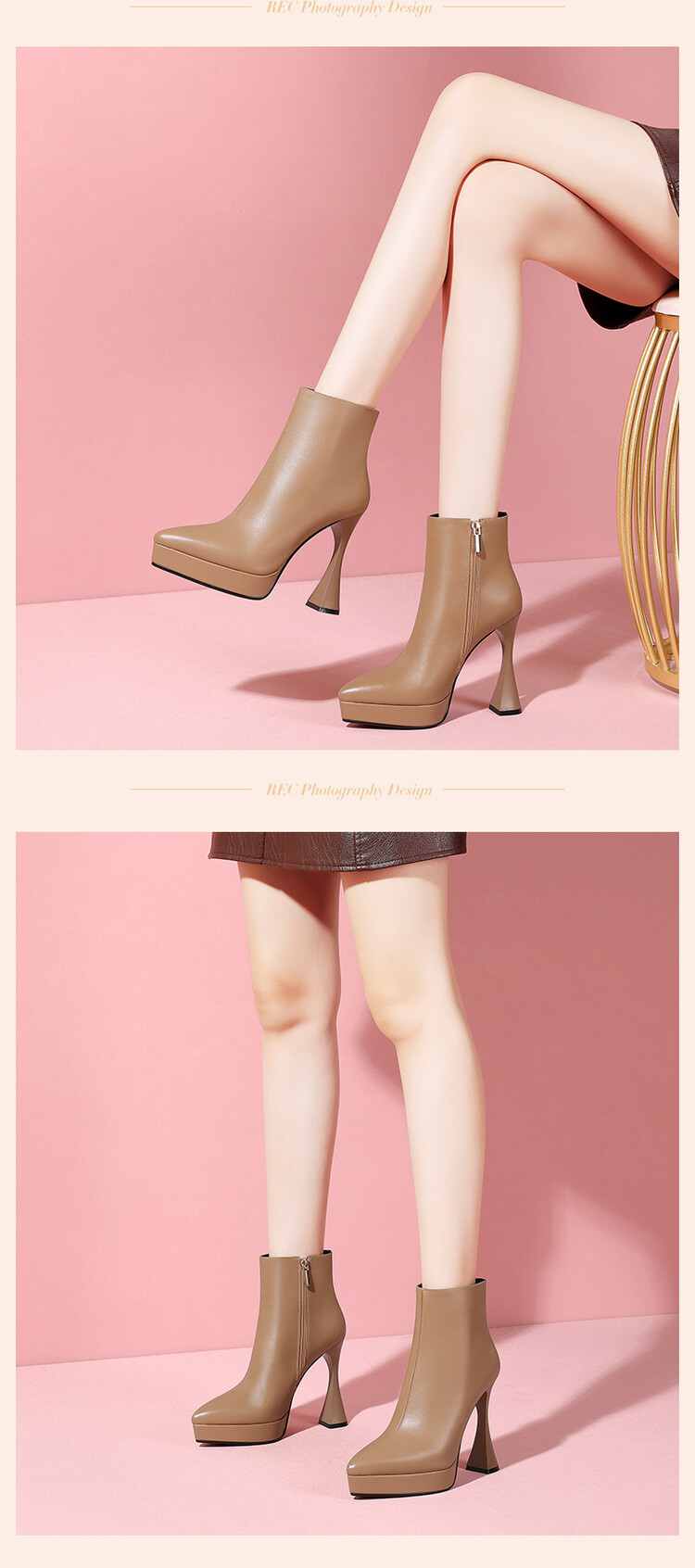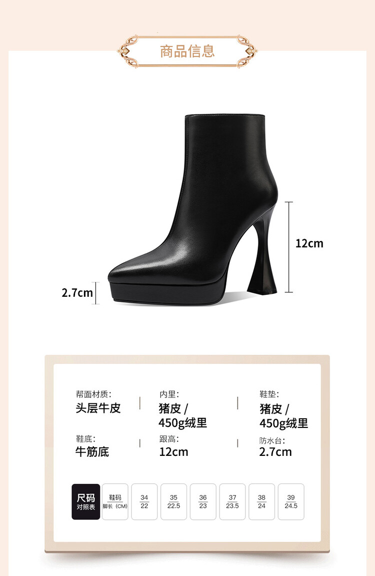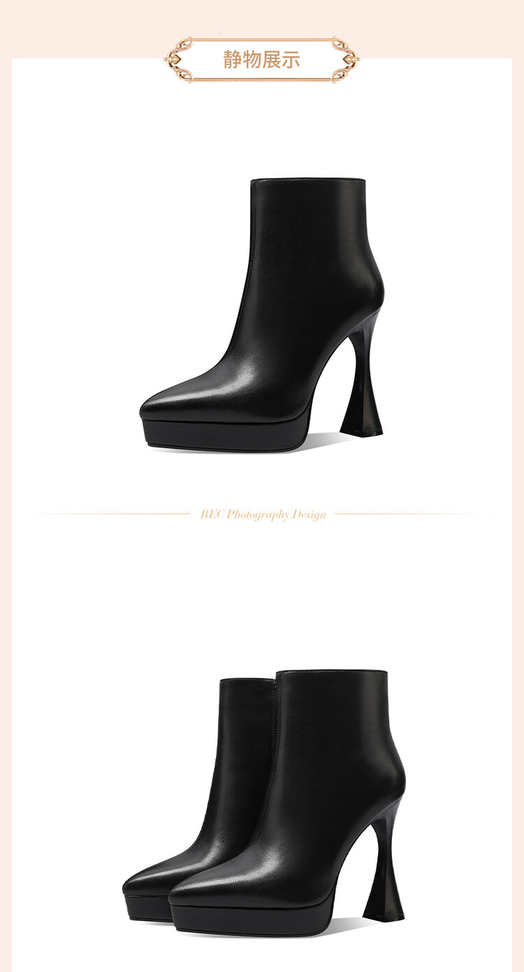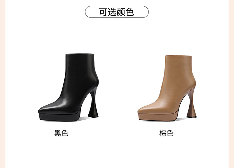 【预售5天】防水台高跟短靴新款加绒方头粗跟牛皮马丁靴短筒春秋单靴&1129
