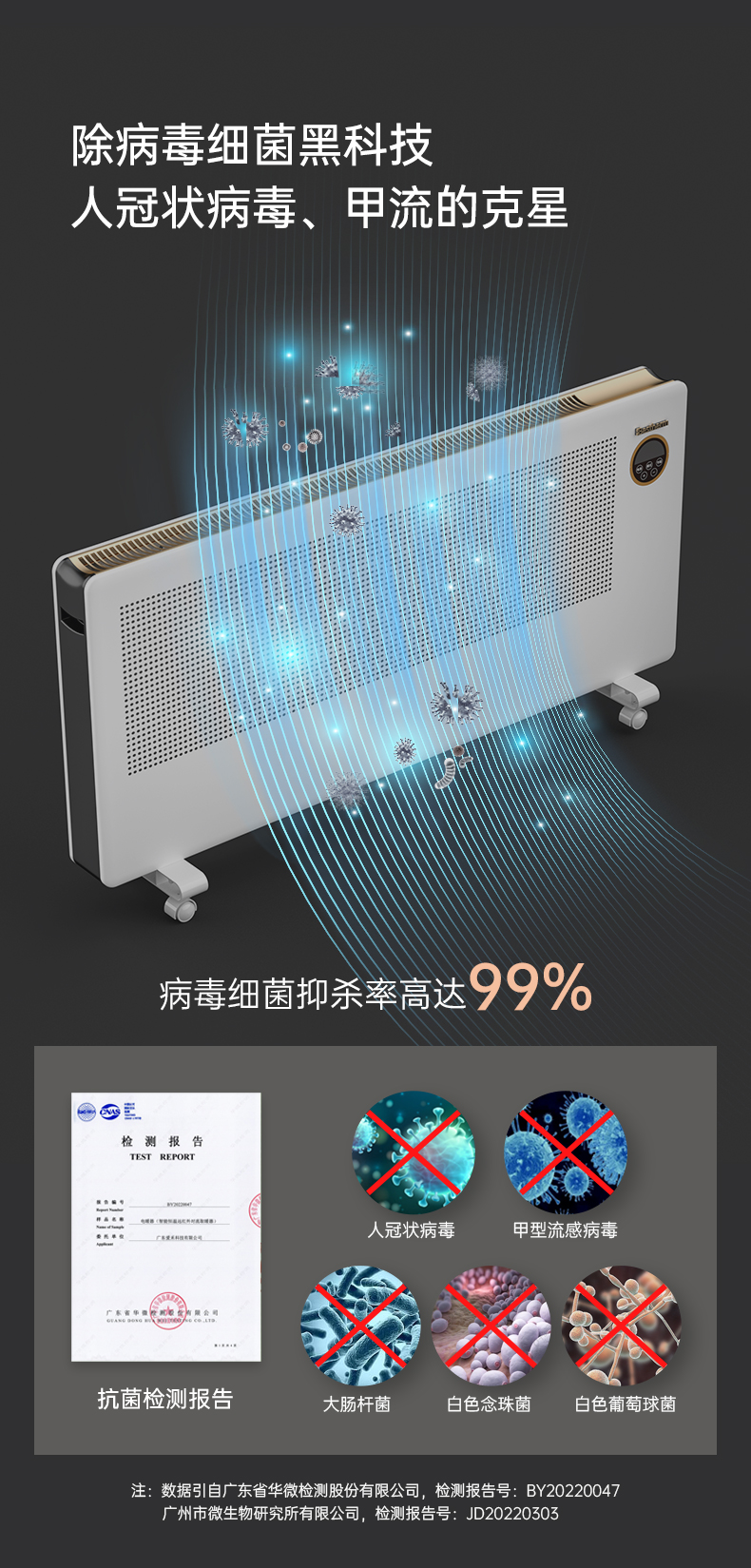 2、是全屋电暖器,也是细菌病毒清杀机,解决了电暖功能单一问题;