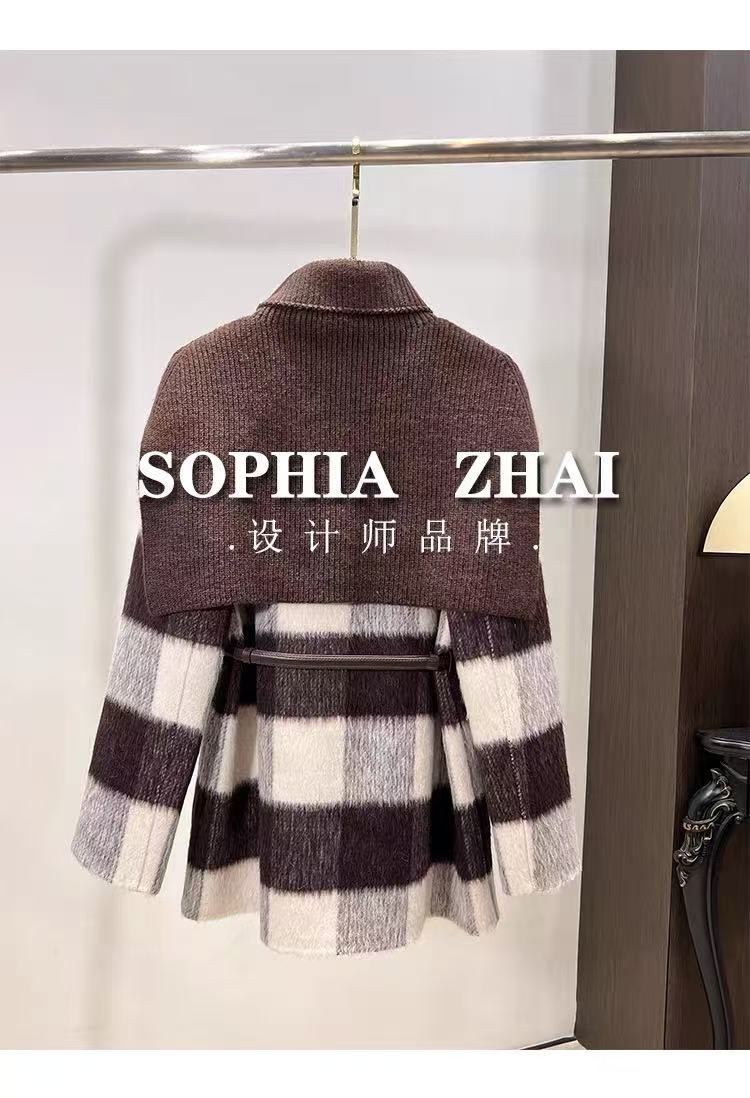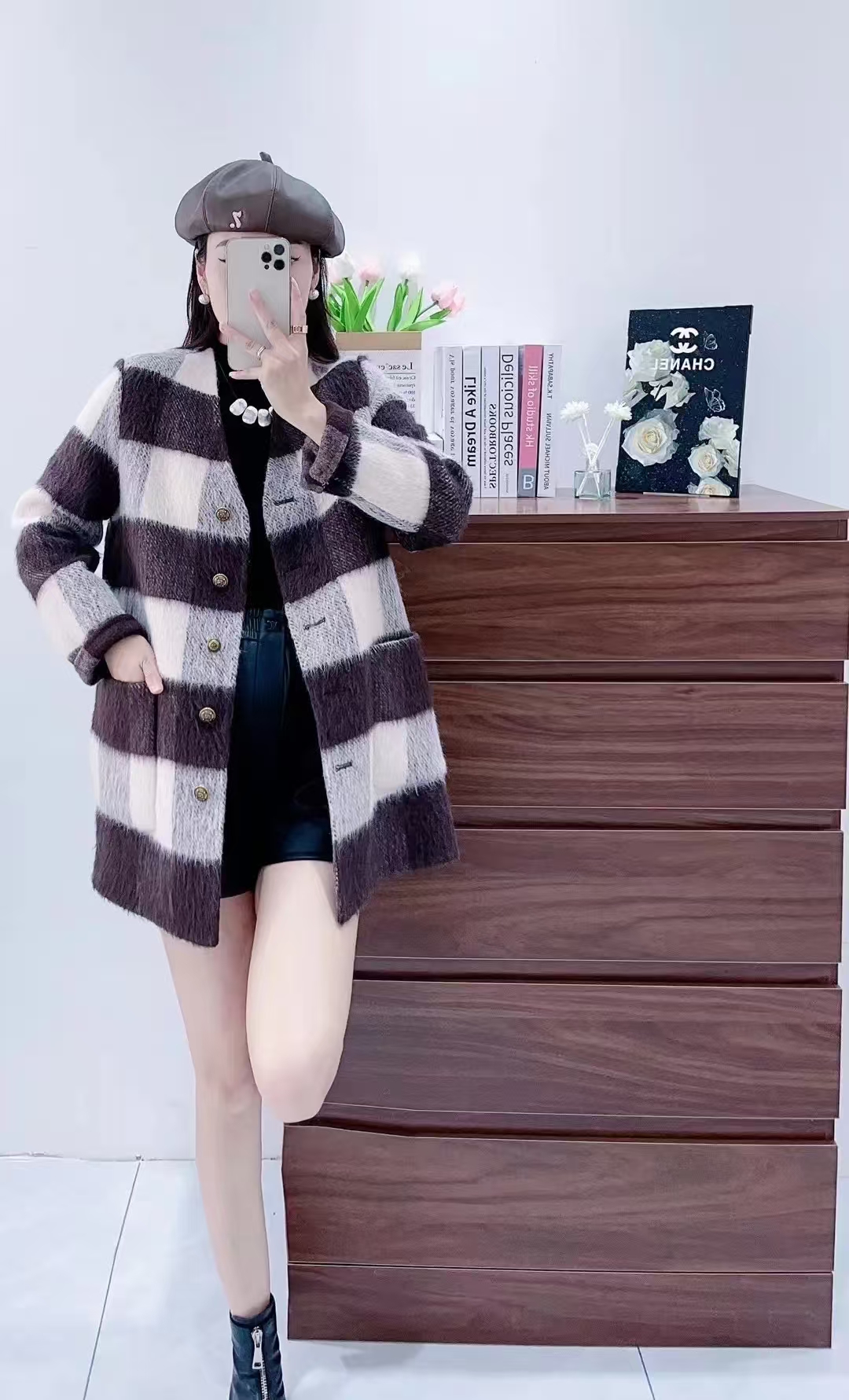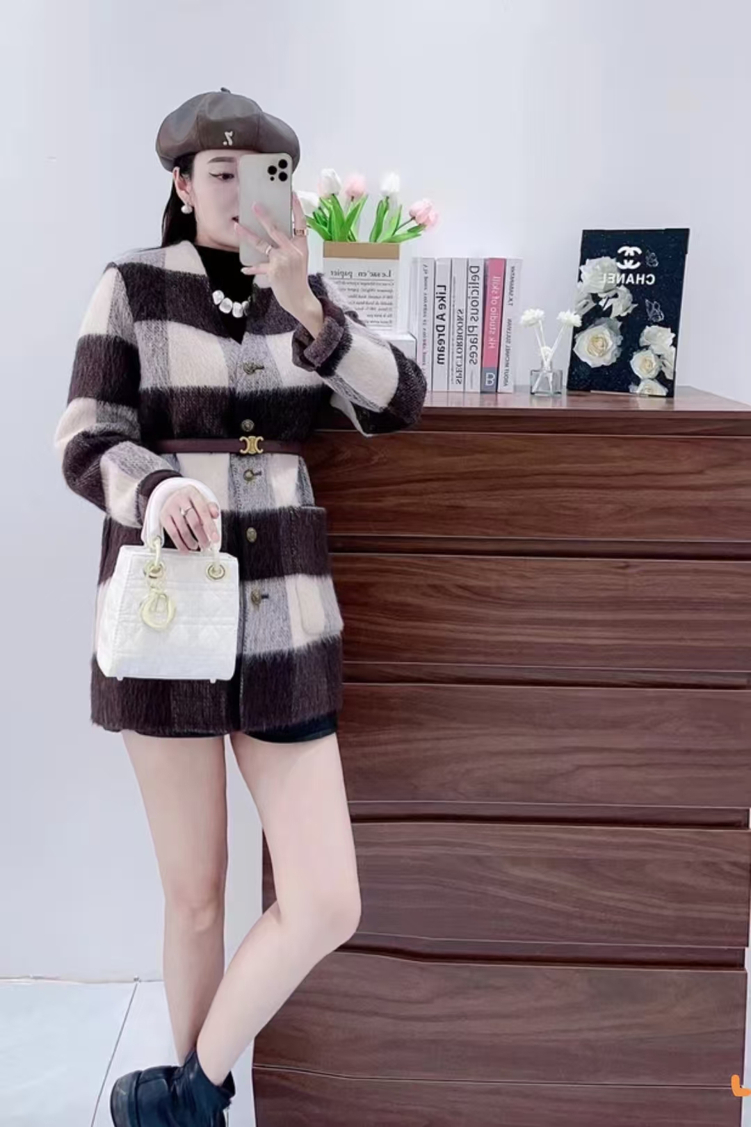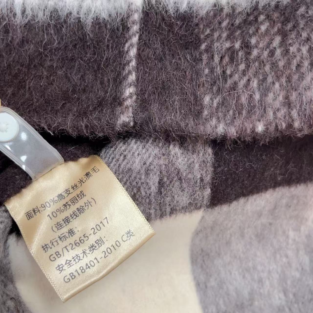 【高端系列】305款90%高支丝光羊毛➕苏丽绒格子双面尼大衣-喜出