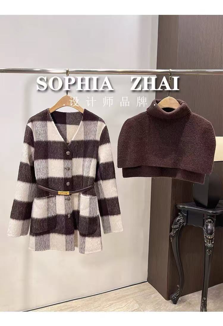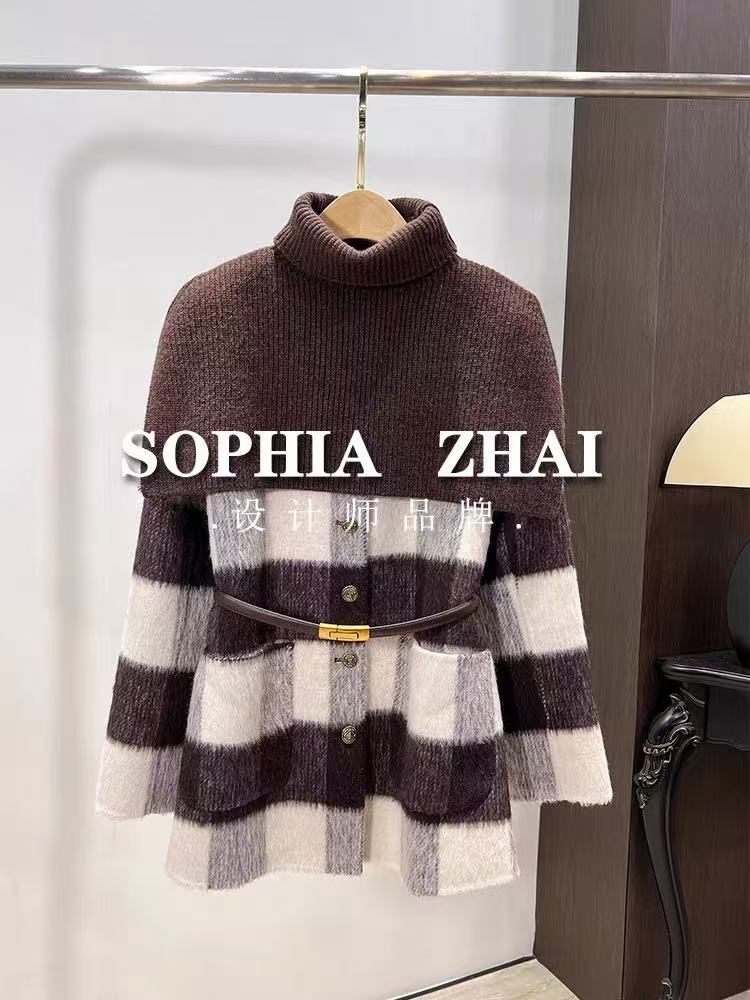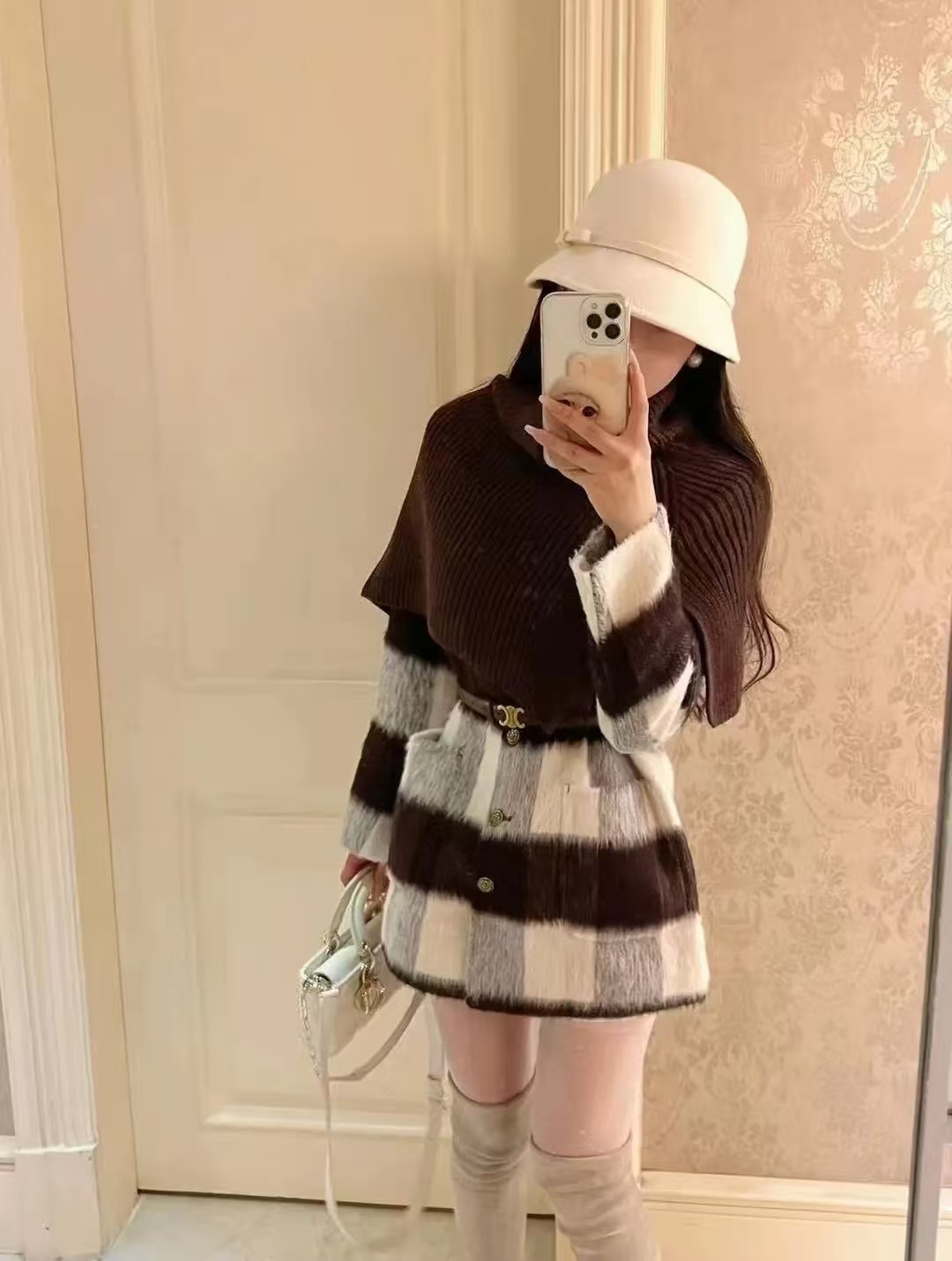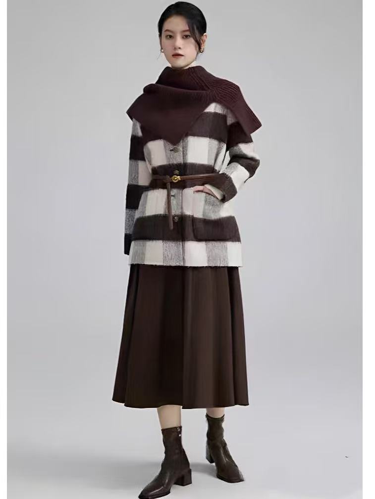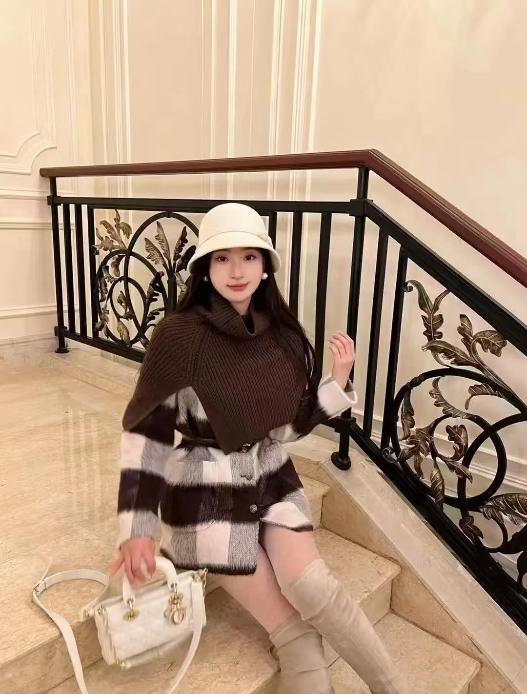 【高端系列】305款90%高支丝光羊毛➕苏丽绒格子双面尼大衣-喜出