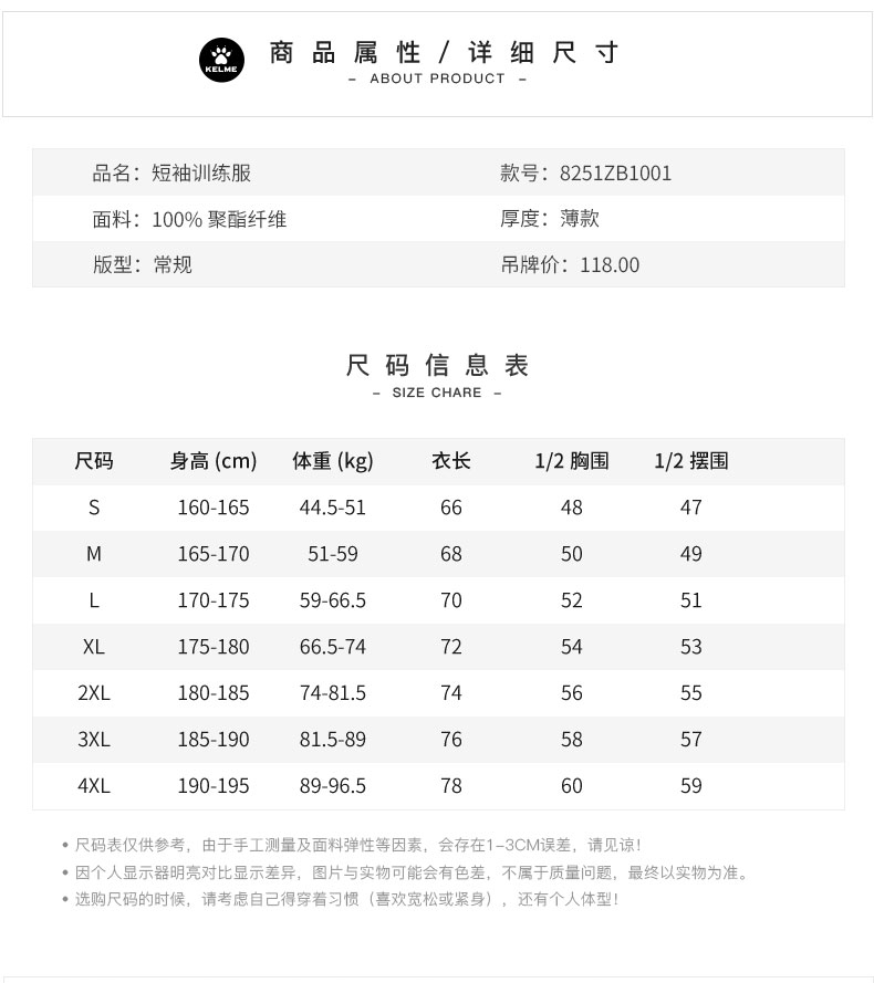 卡尔美官方旗舰店 运动足球训练服男士短袖t恤 定制足球服