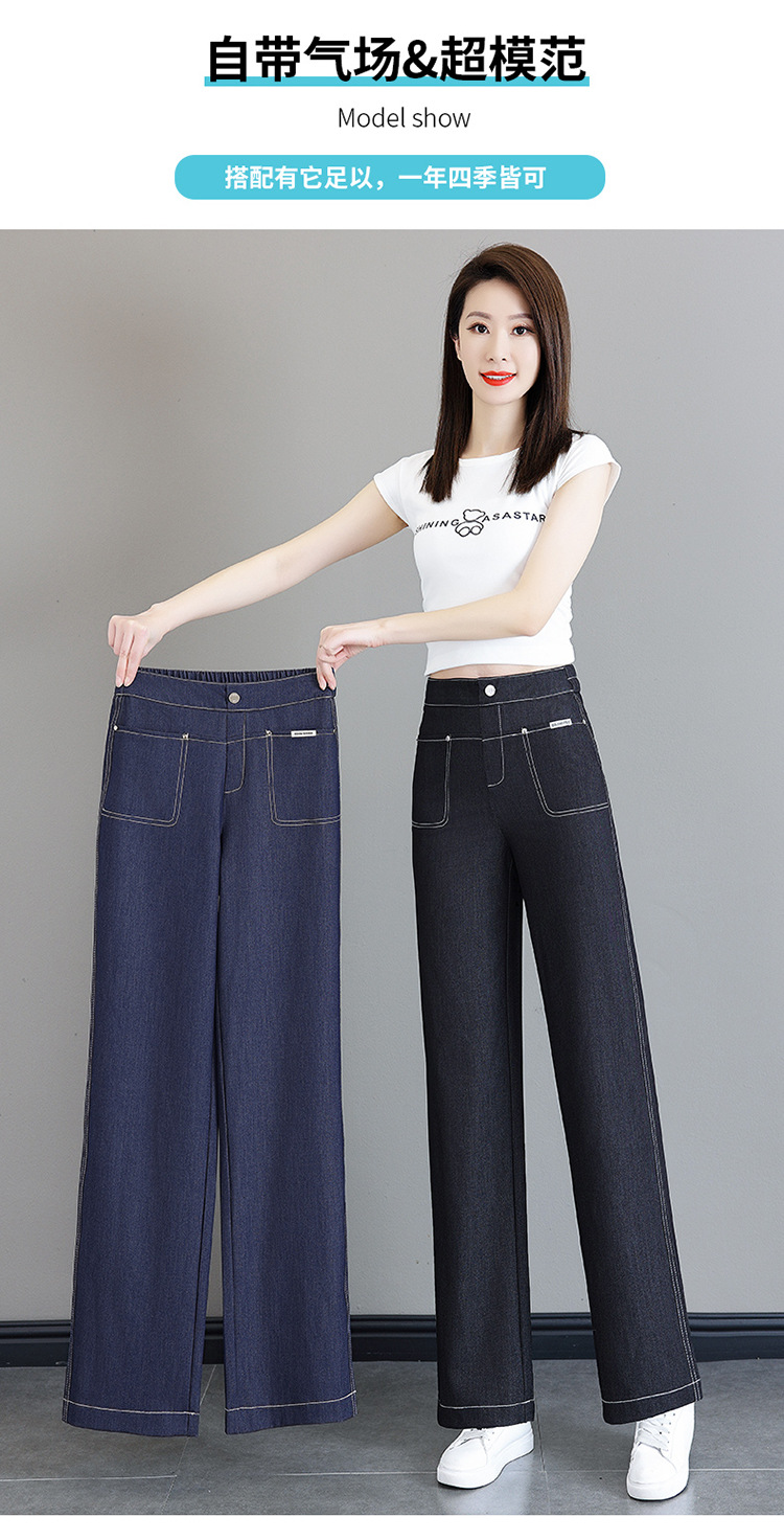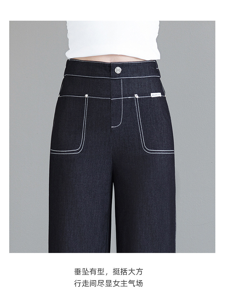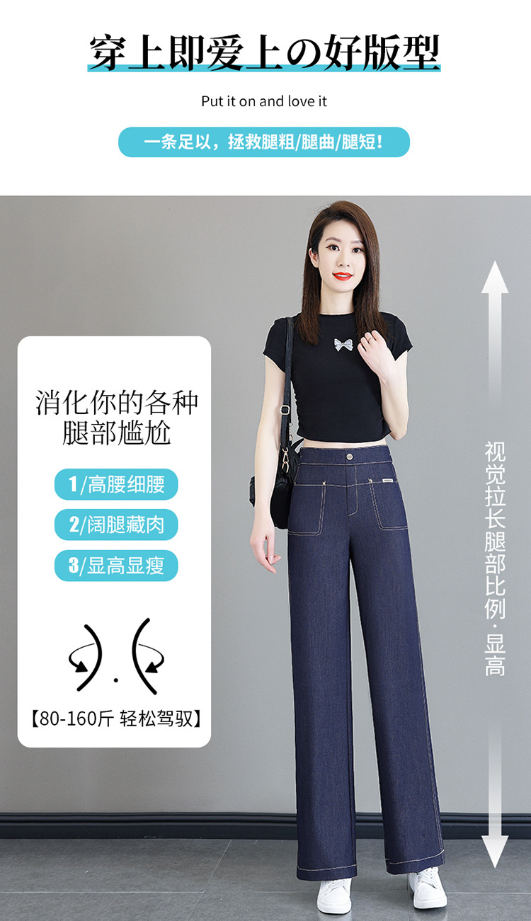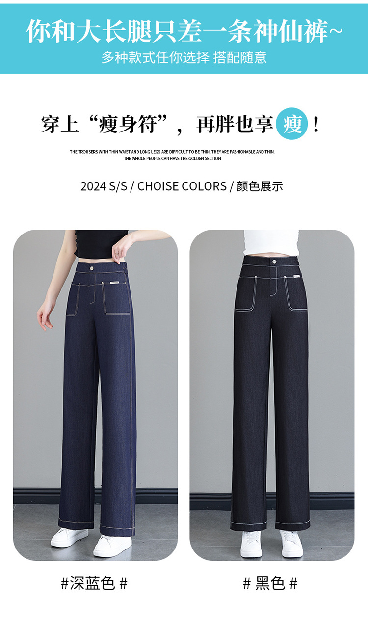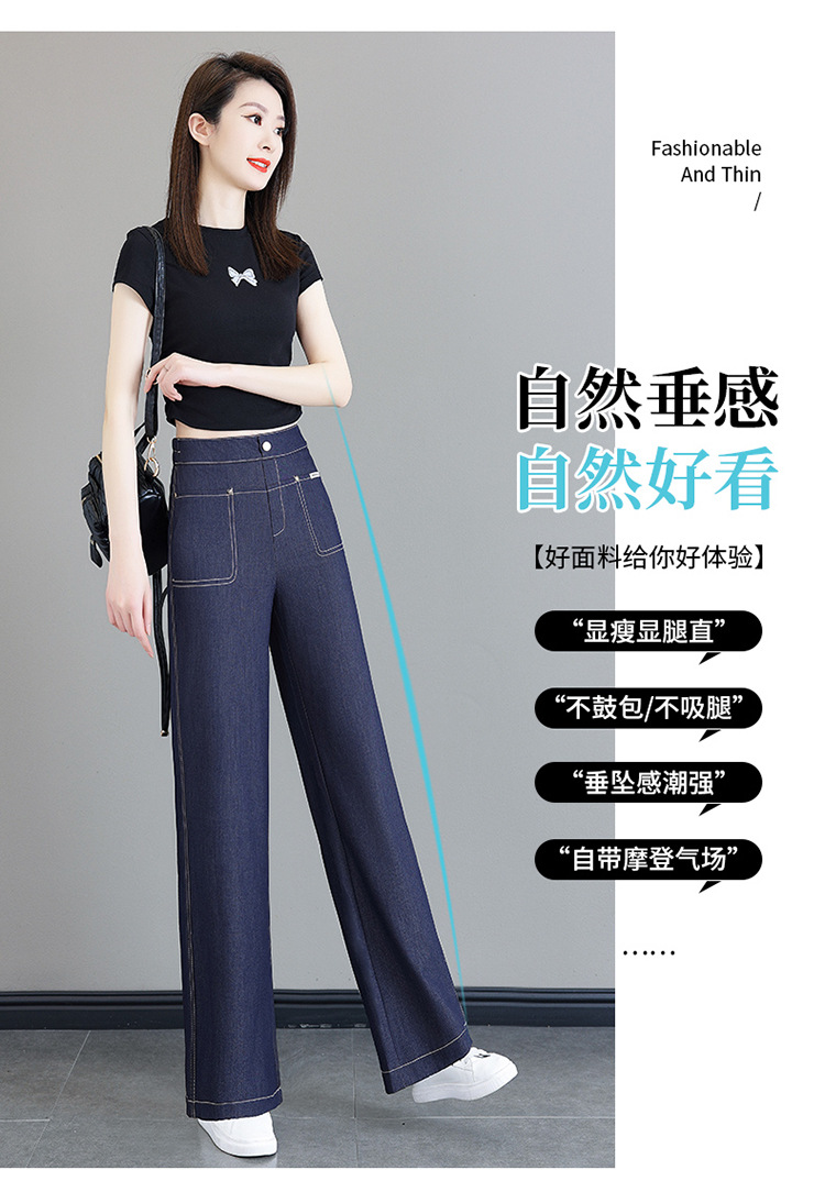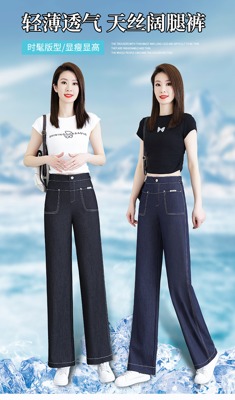 雀说天丝薄款直筒牛仔裤新款窄版冰丝阔腿裤高腰宽松休闲裤AL6092