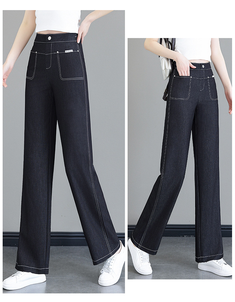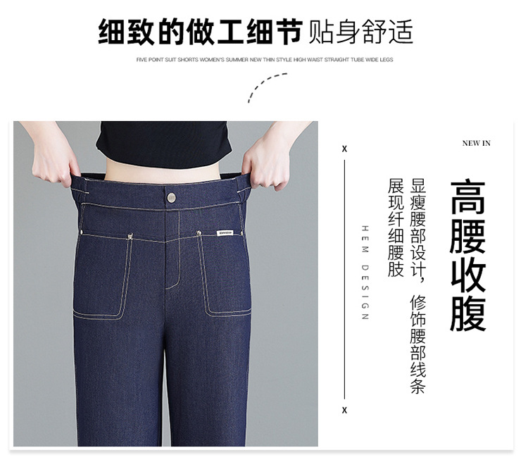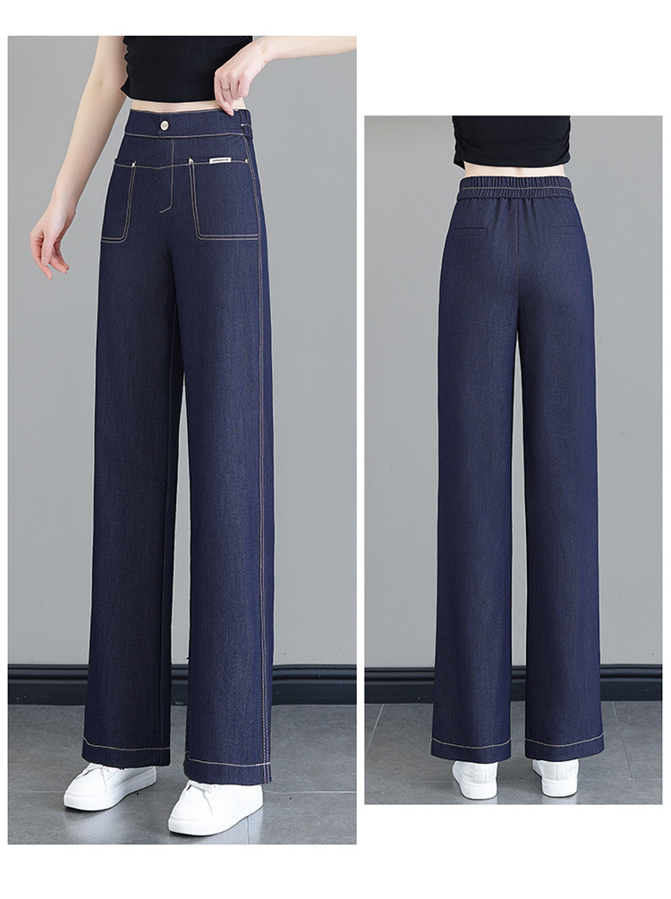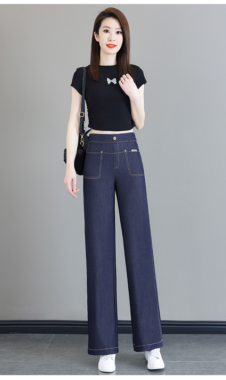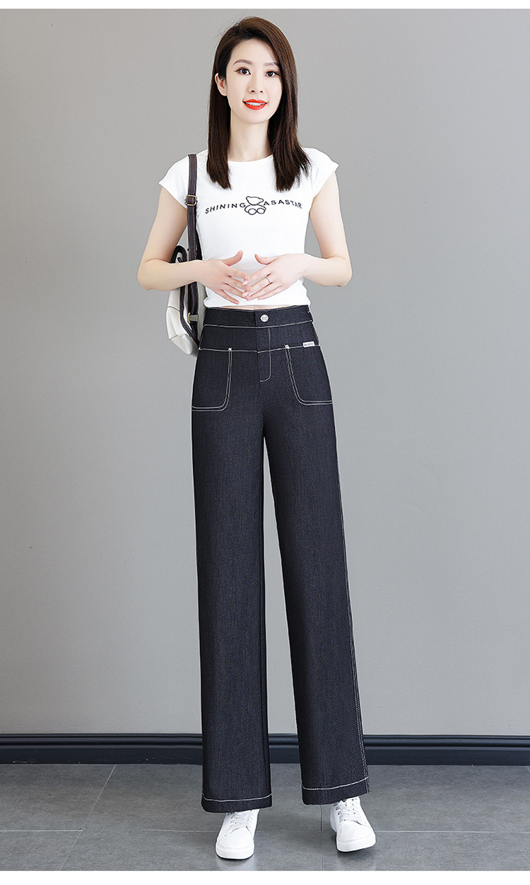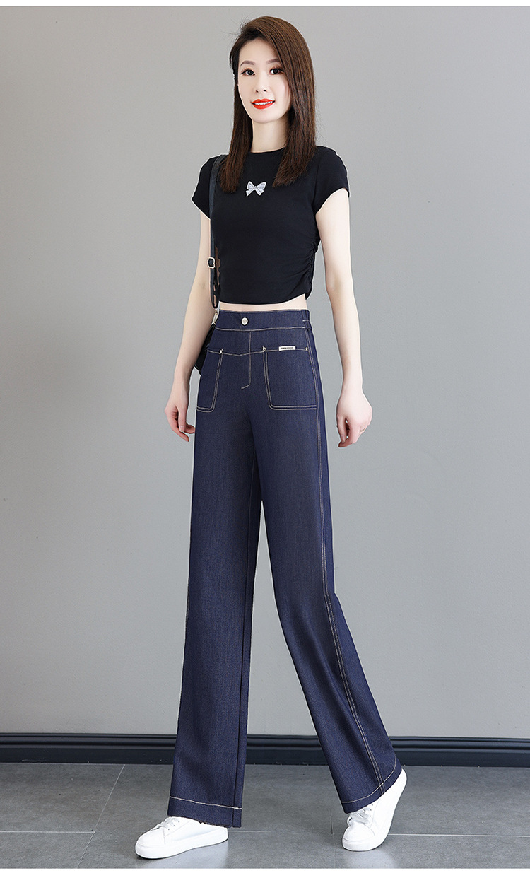雀说天丝薄款直筒牛仔裤新款窄版冰丝阔腿裤高腰宽松休闲裤AL6092