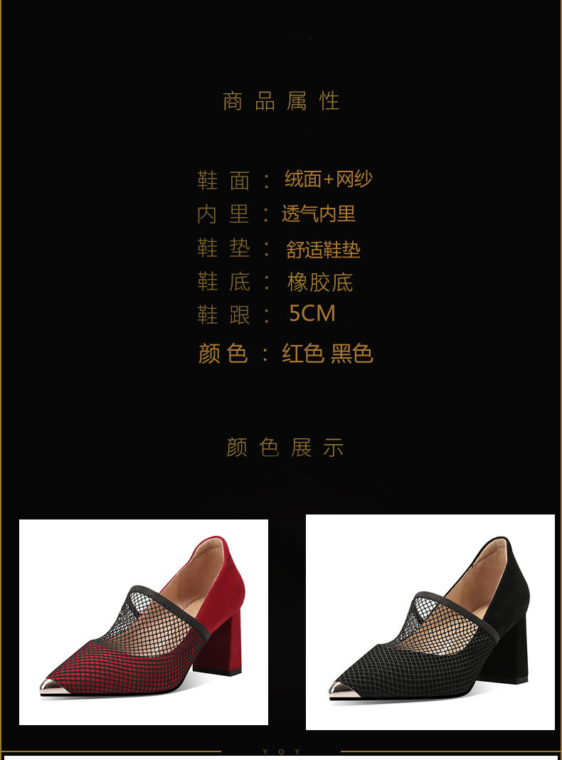 LN-1991新款粗跟尖头单鞋透气网面性感百搭单鞋