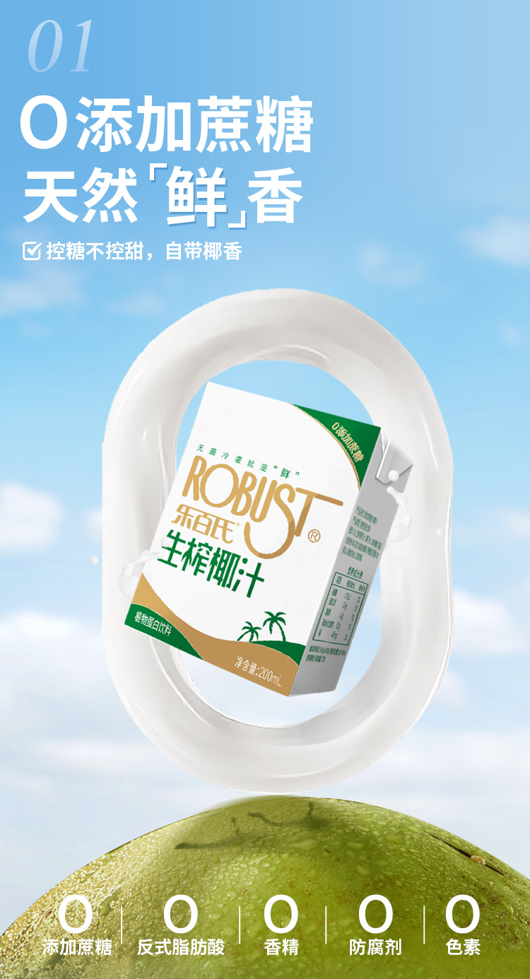 乐百氏生榨椰汁 200ml/盒(10盒装/20盒装)