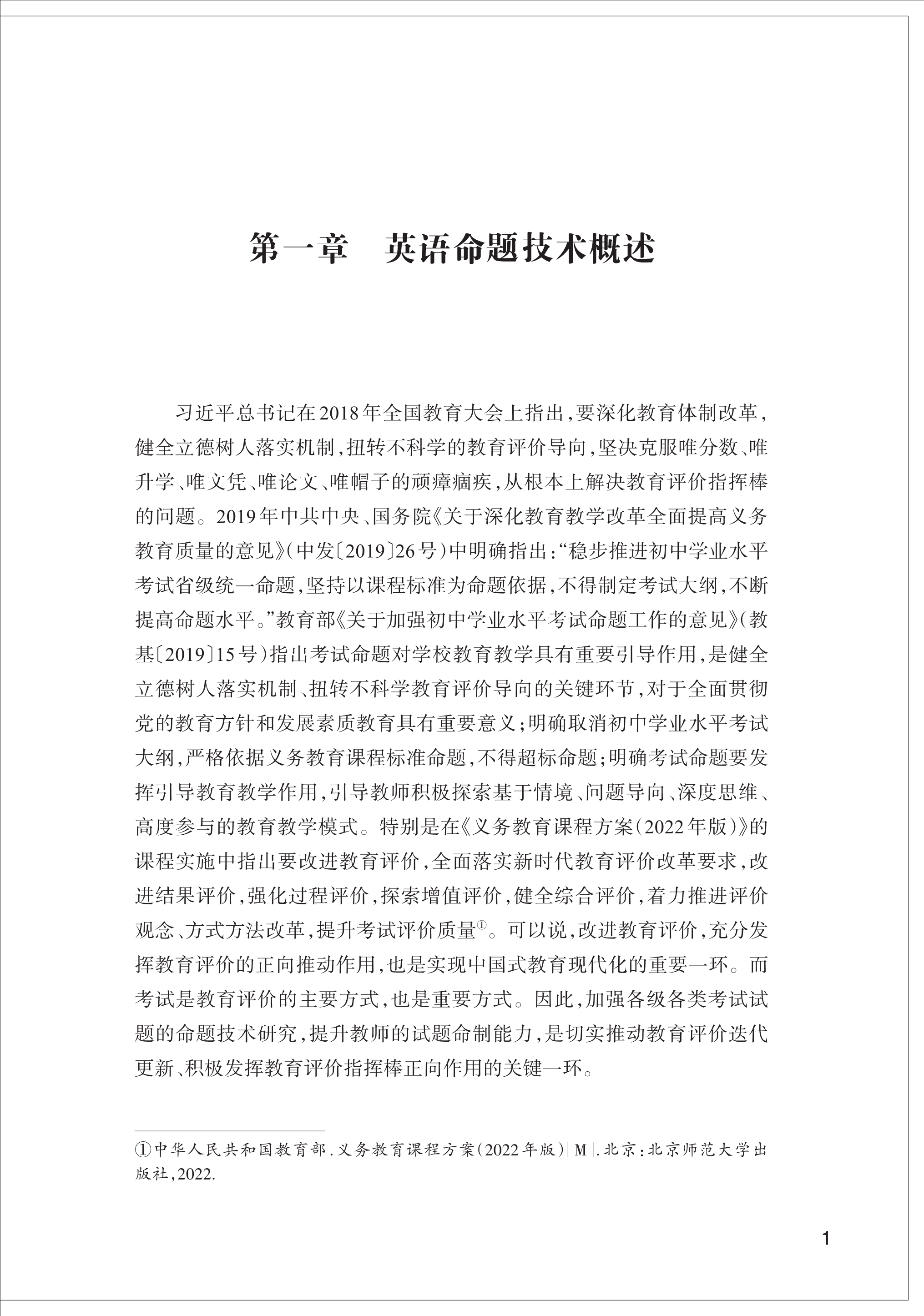 第二,专业性。本套丛书分学科编写,力求体现学科特性。同时,丛书编写立足于2022年版义务教育课程标准,严格按照学业质量标准的相关要求,在阐述命题理论和进行命题实践时,努力指向中国学生发展核心素养和各学科核心素养的内容。