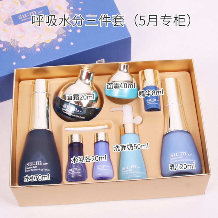 呼吸水份惊喜三件套👍呼吸惊喜水分系列是补水保湿双重滋养的产品。主打深层补水💦、调节肌肤水油平衡😆、镇定肌肤抗敏、细致毛孔。蕴含将竹子树液和三种花💐一起发酵的发酵原液和75种植物精华🌿。呼吸家天然发酵✅,非常安全自然无人工香精、人工色素等有害物质,孕妇和敏感肌可以放心使用👯。这款是缺水、外油内干及敏感肌肤的💧本命补水神器,非常适合夏天哦☀。 【套装包括】:水170ml+乳120ml+面霜20ml+水乳各20ml+洗面奶50ml+面霜10ml+精华8ml