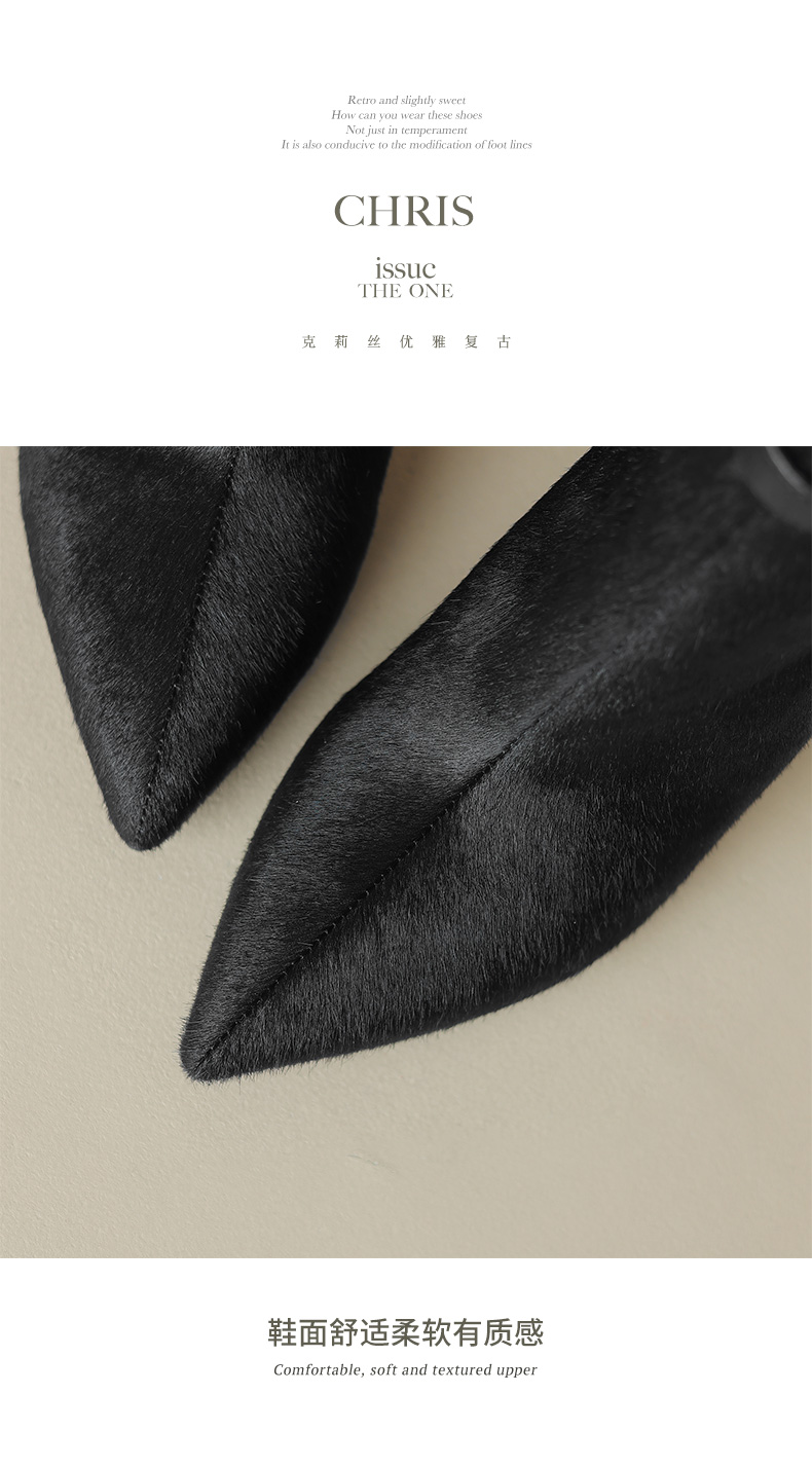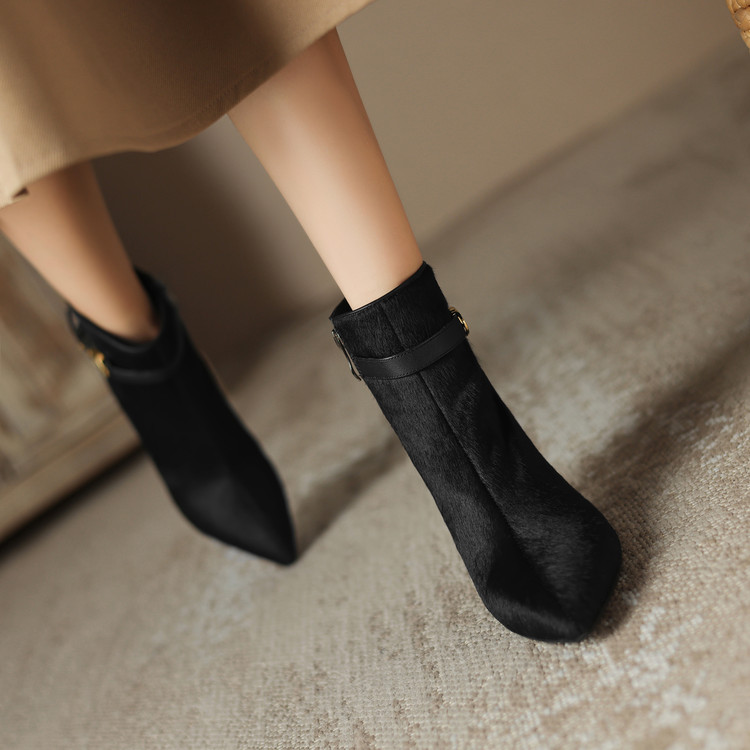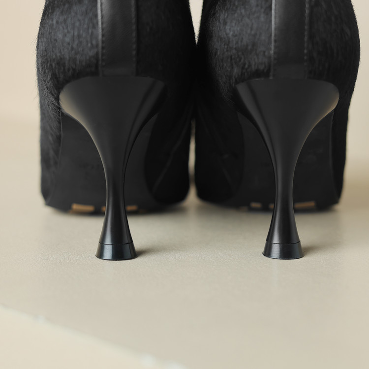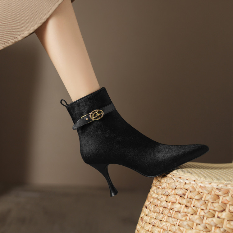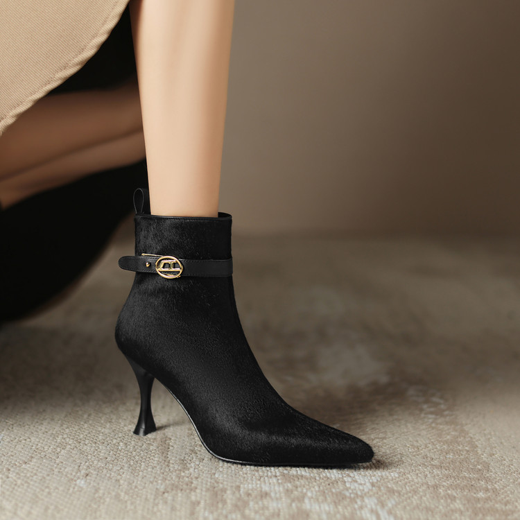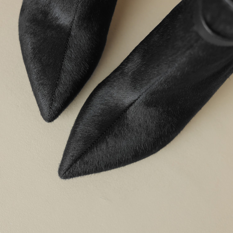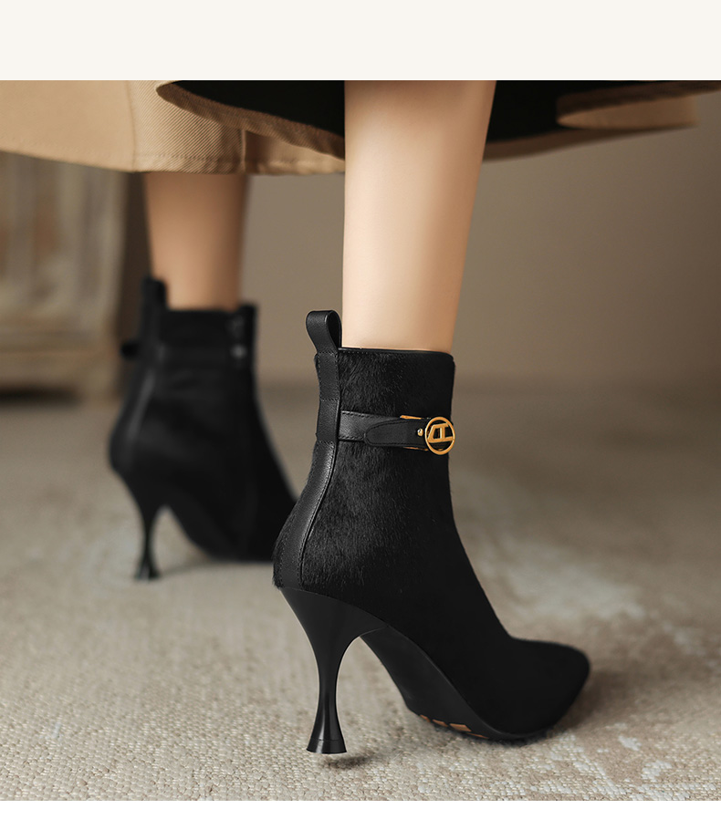 【预售5天】新款尖头细跟高跟短靴女时尚马毛百搭舒适瘦瘦靴侧拉链时装靴HP&A2565-1
