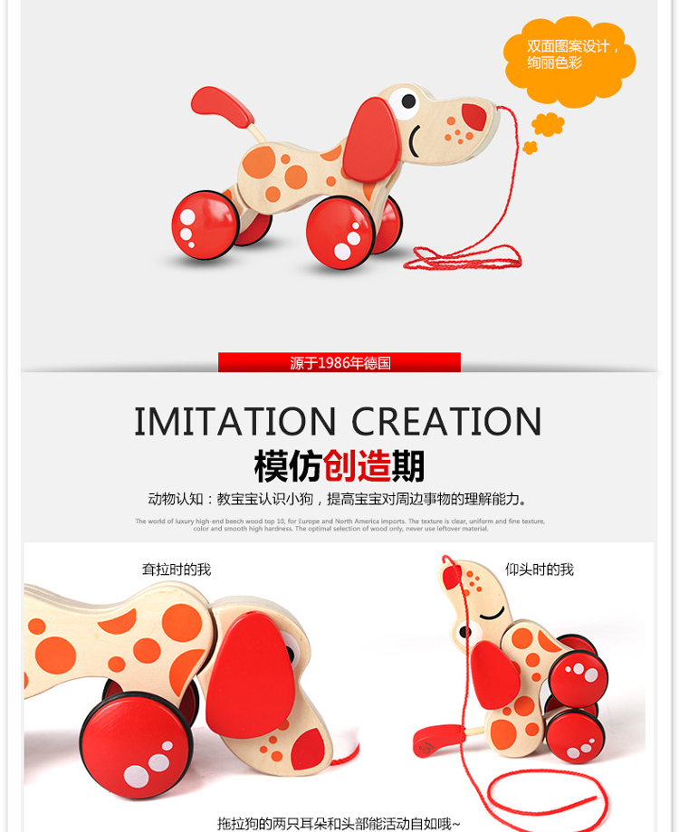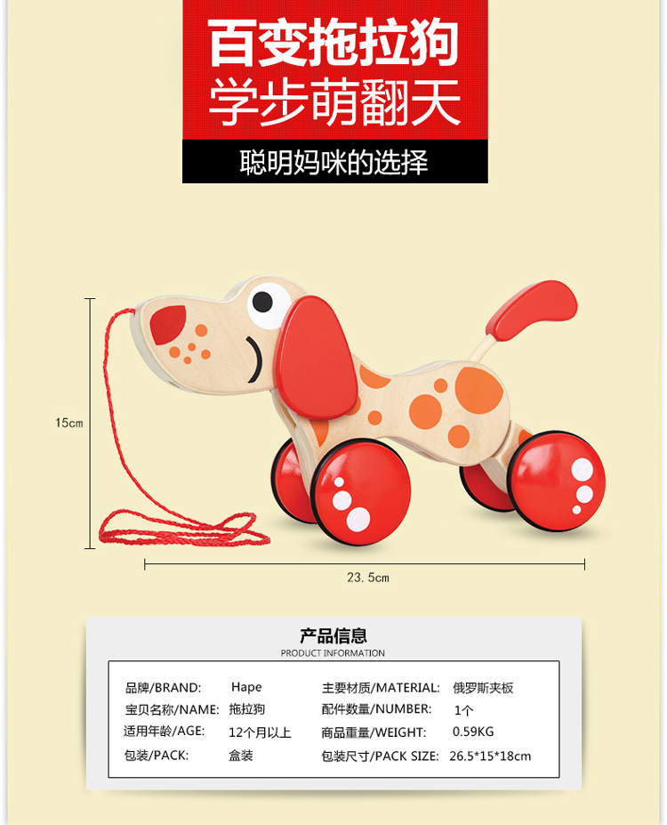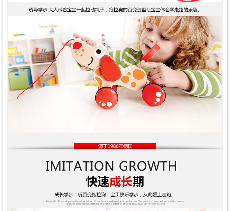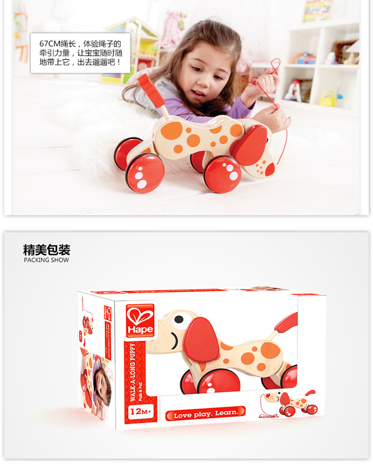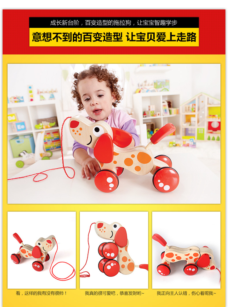 Hape拖拉玩具 木质学步手拉牵绳玩具会摇摆卡通动物字母 儿童节礼物 E0347 拖拉狗