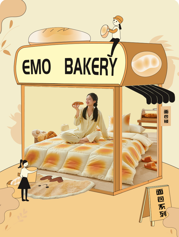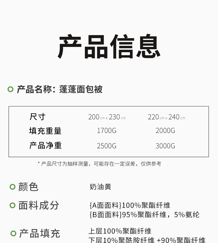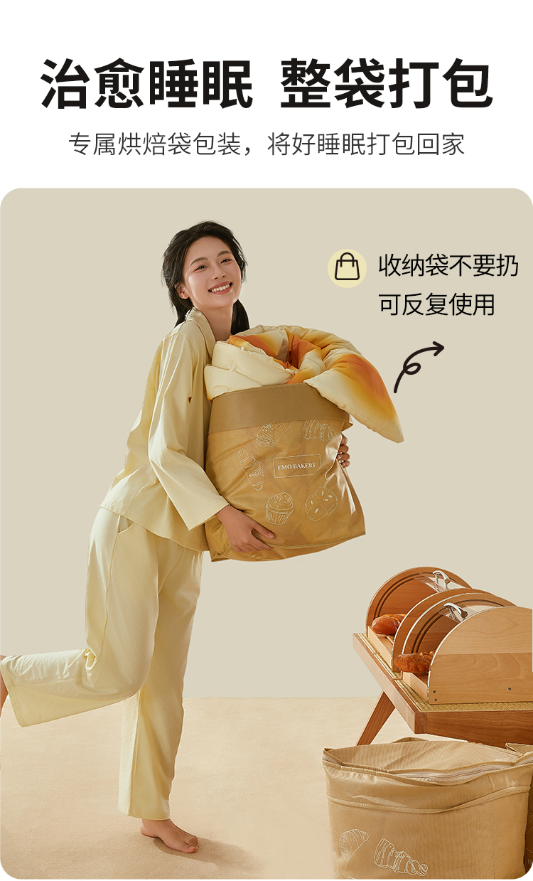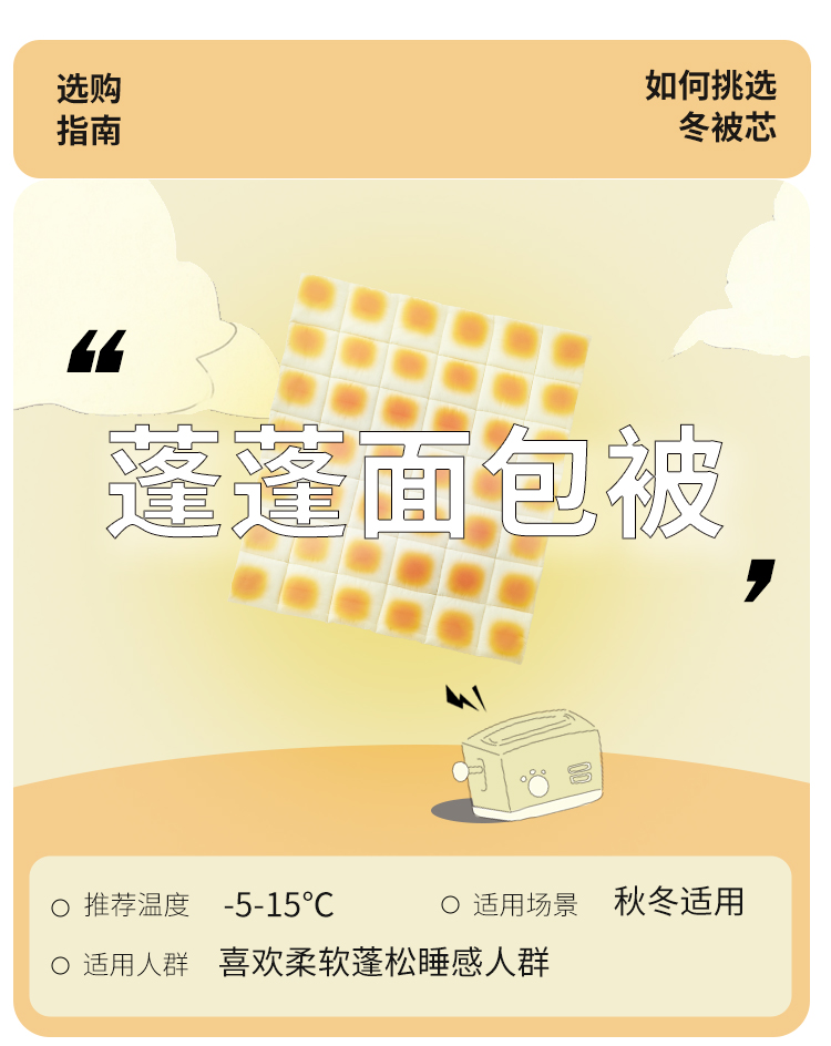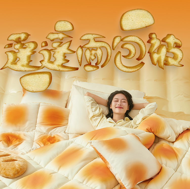 【像面包一样软糯】一默 蓬蓬面包被 面料触感柔软细腻,双层填充 蓄热排湿,免被套设计 A类标准 可机洗