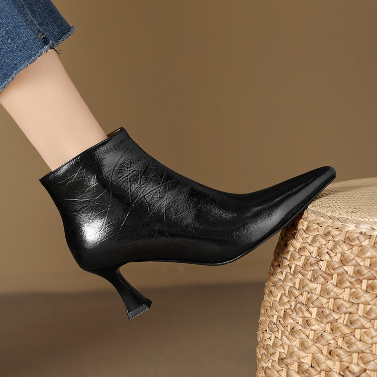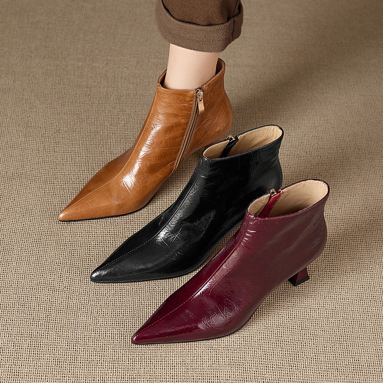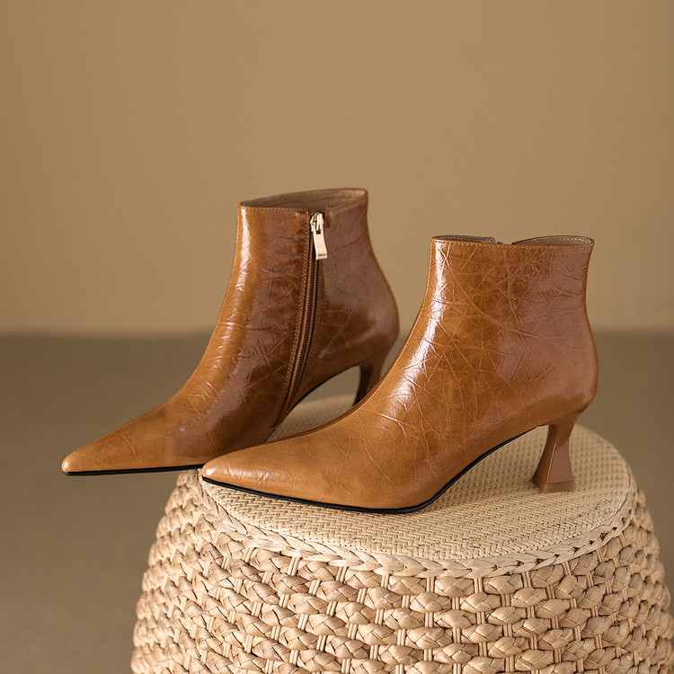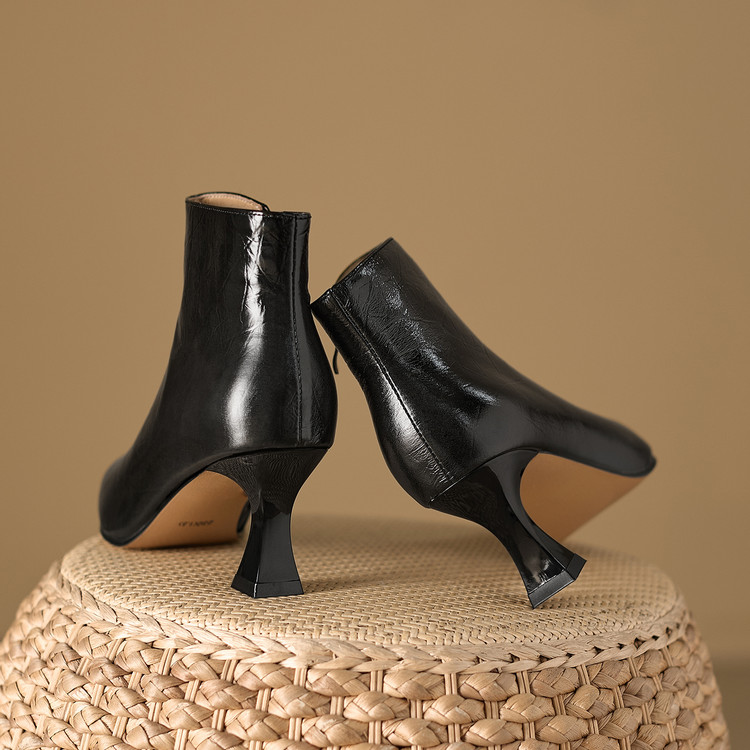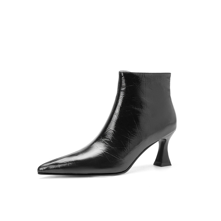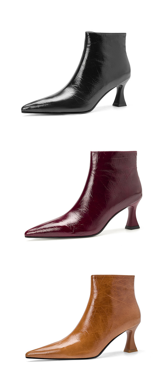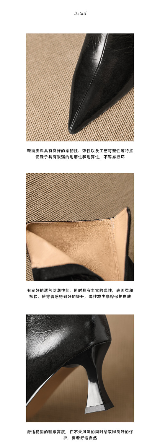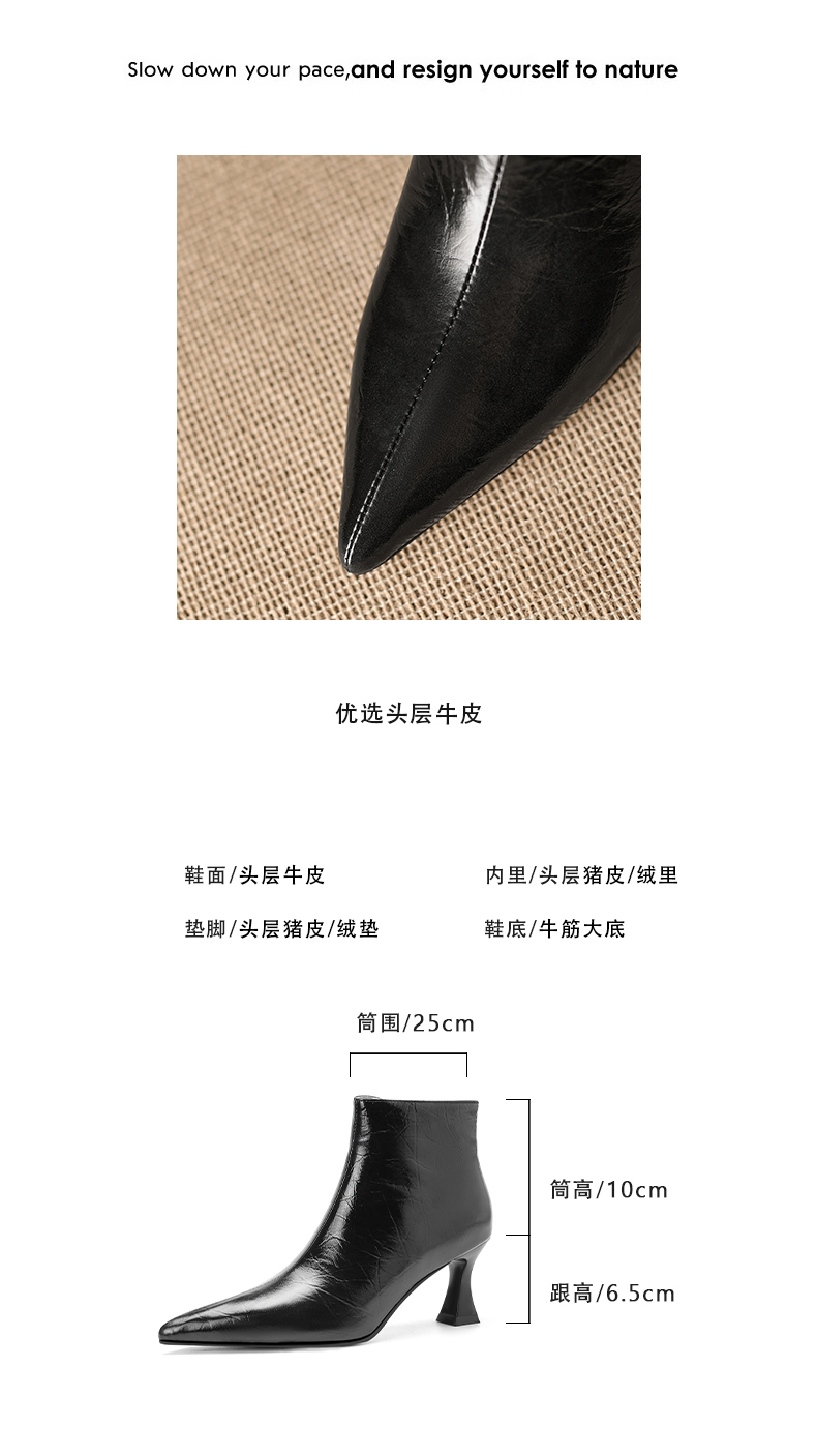 【预售5天】法式复古尖头中跟短靴女秋冬细高跟软牛皮小裸靴性感简约ol时装靴MBJR&5601