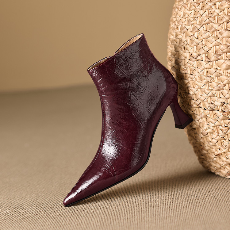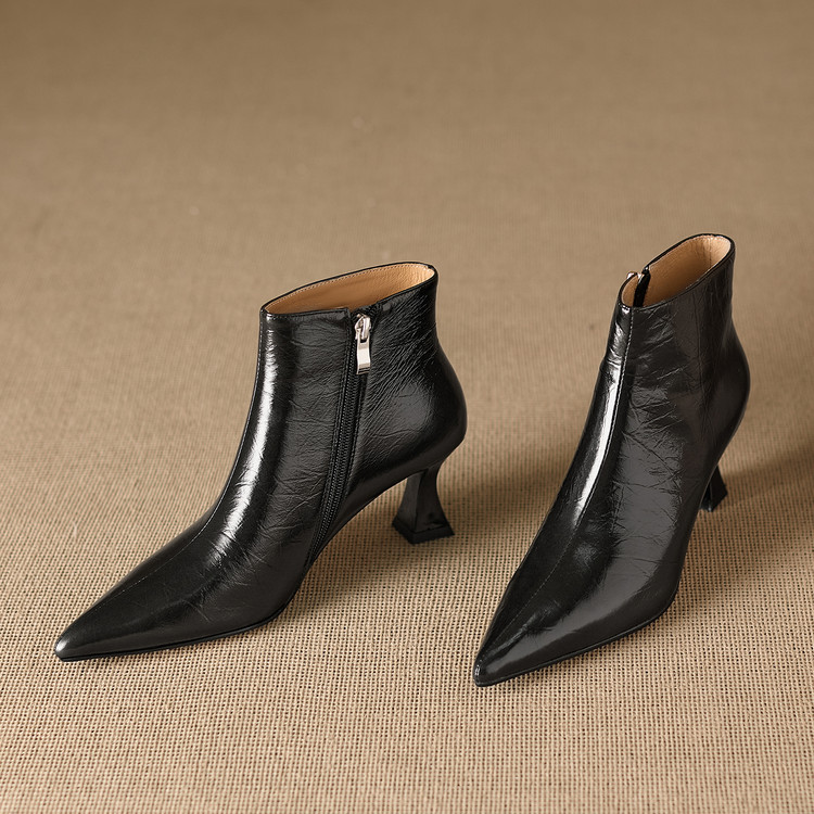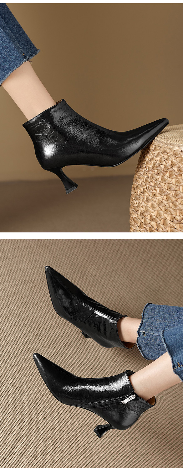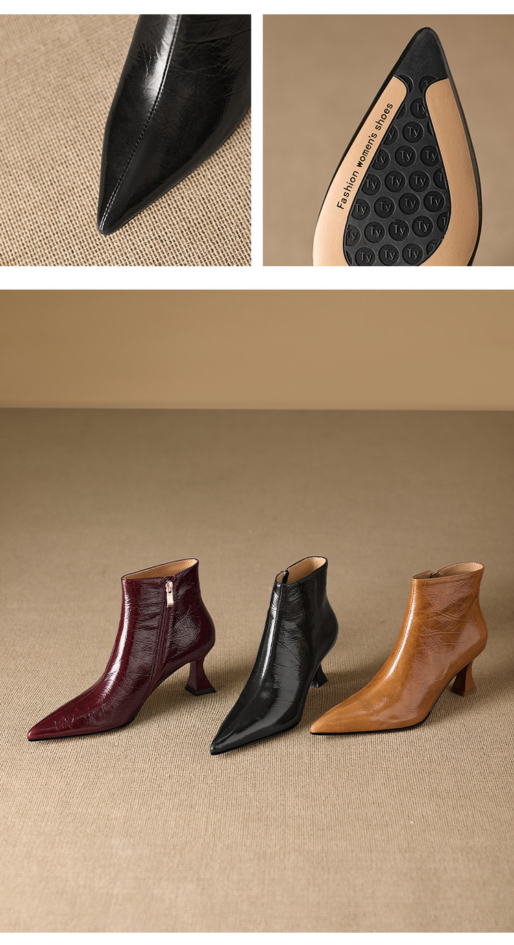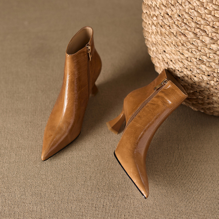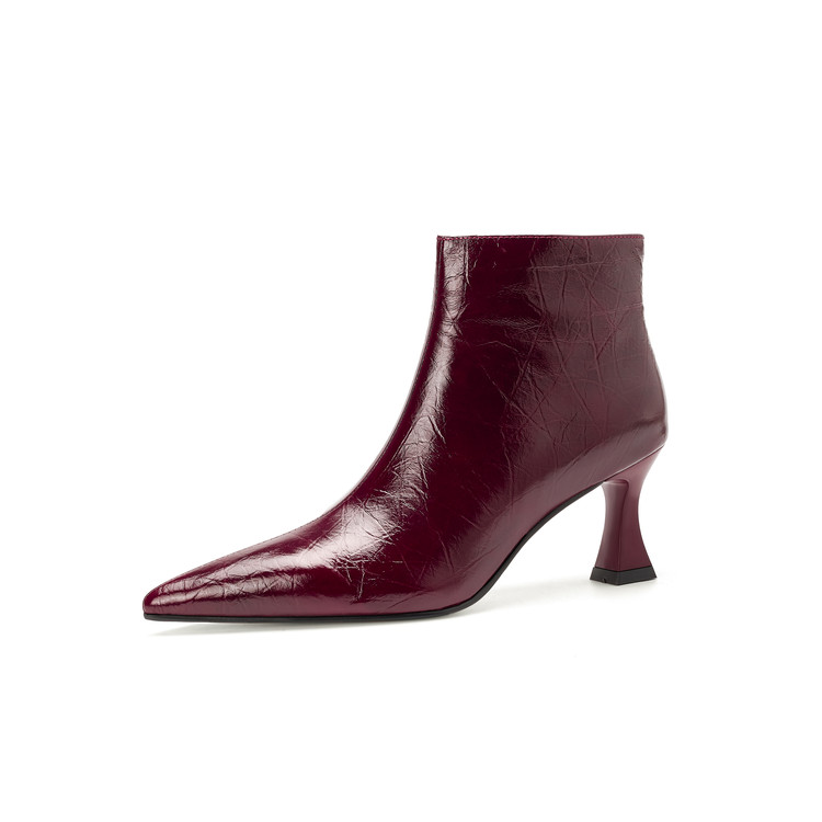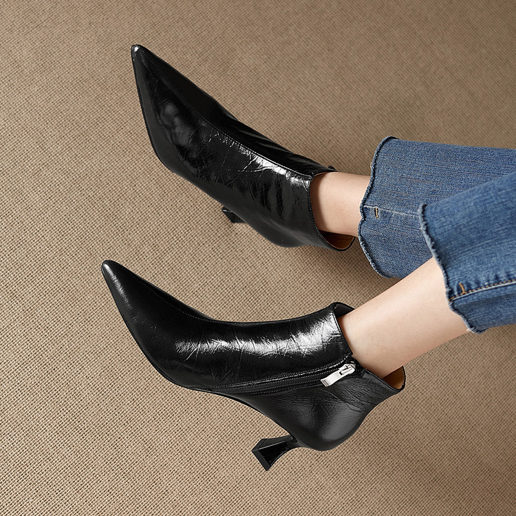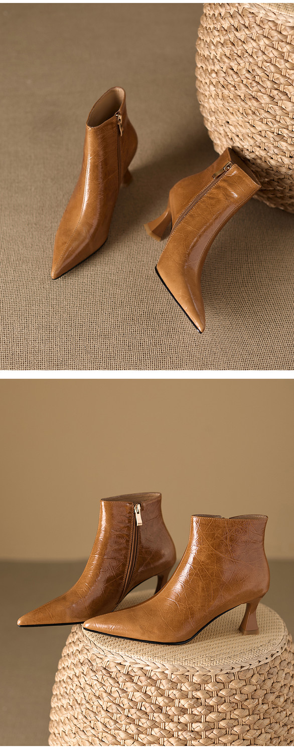 【预售5天】法式复古尖头中跟短靴女秋冬细高跟软牛皮小裸靴性感简约ol时装靴MBJR&5601