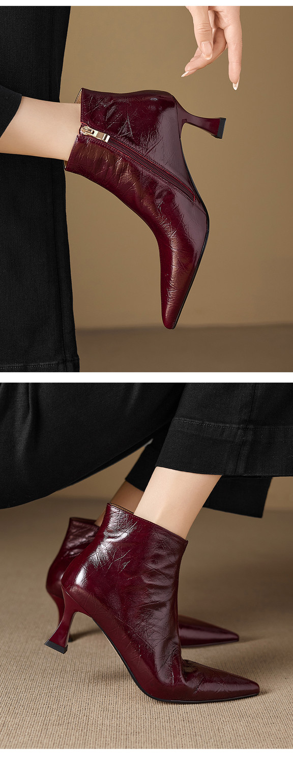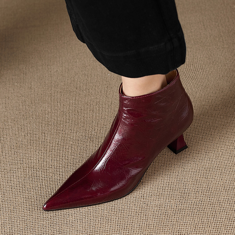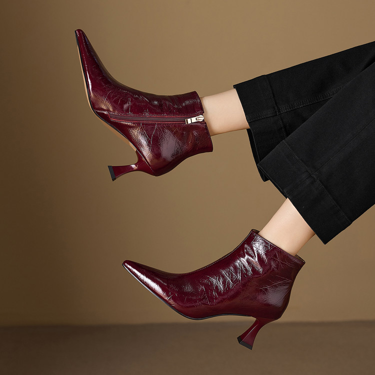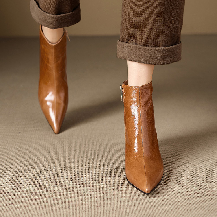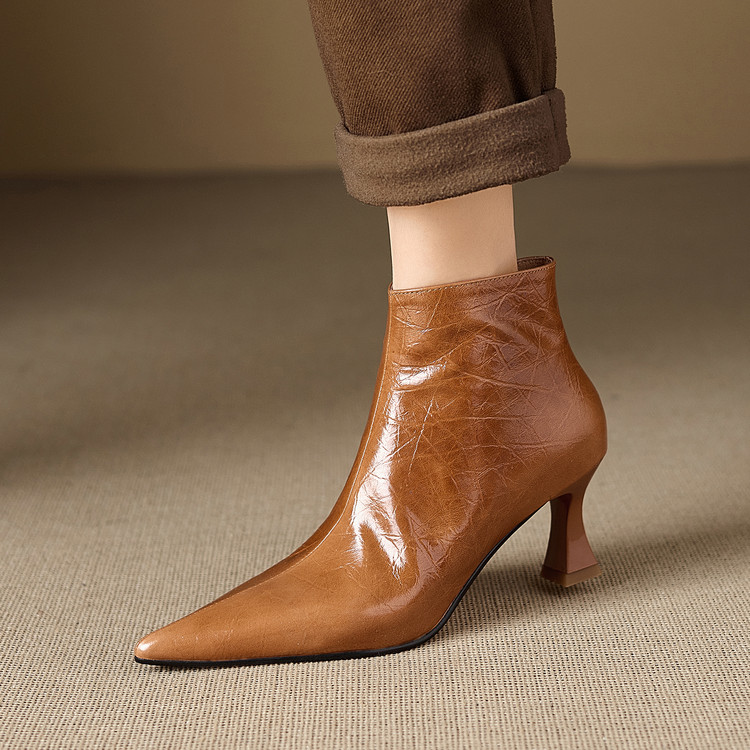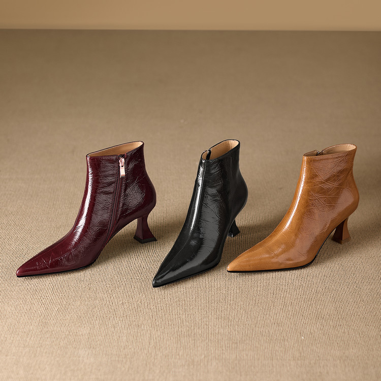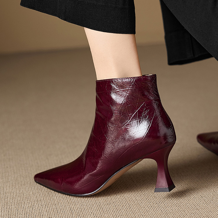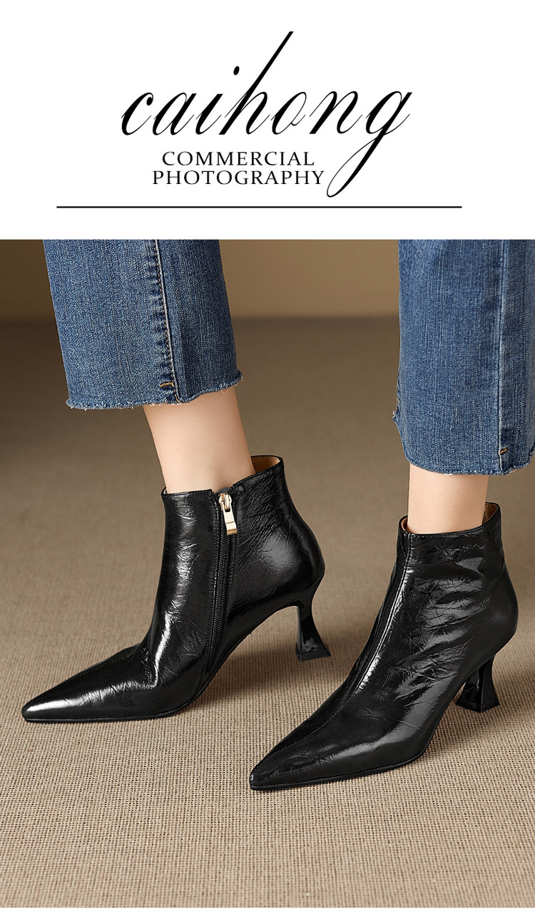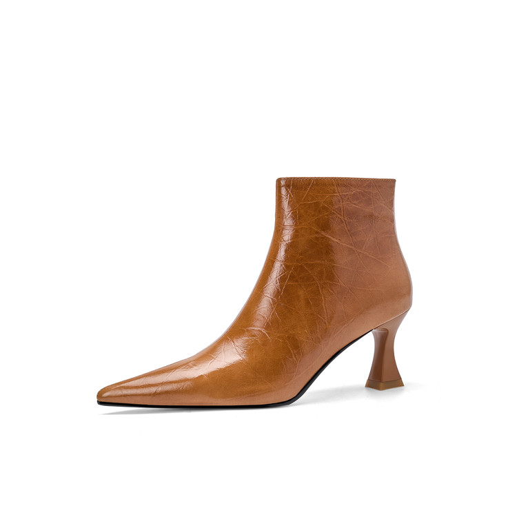 【预售5天】法式复古尖头中跟短靴女秋冬细高跟软牛皮小裸靴性感简约ol时装靴MBJR&5601