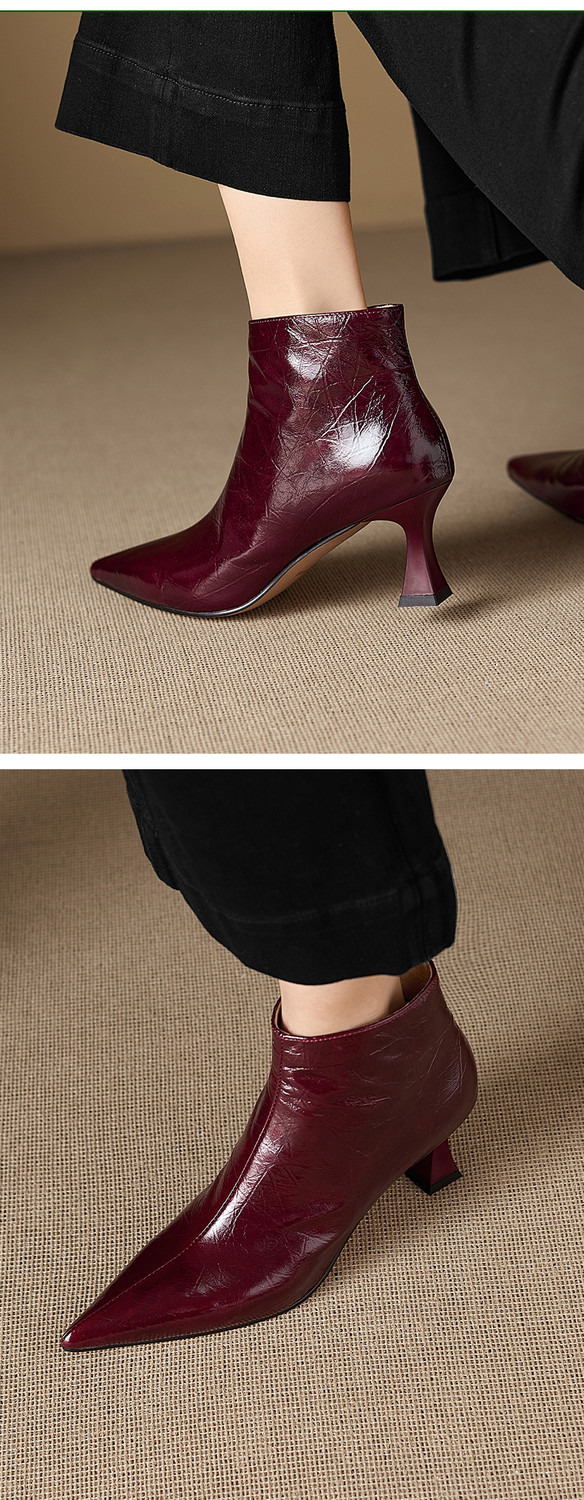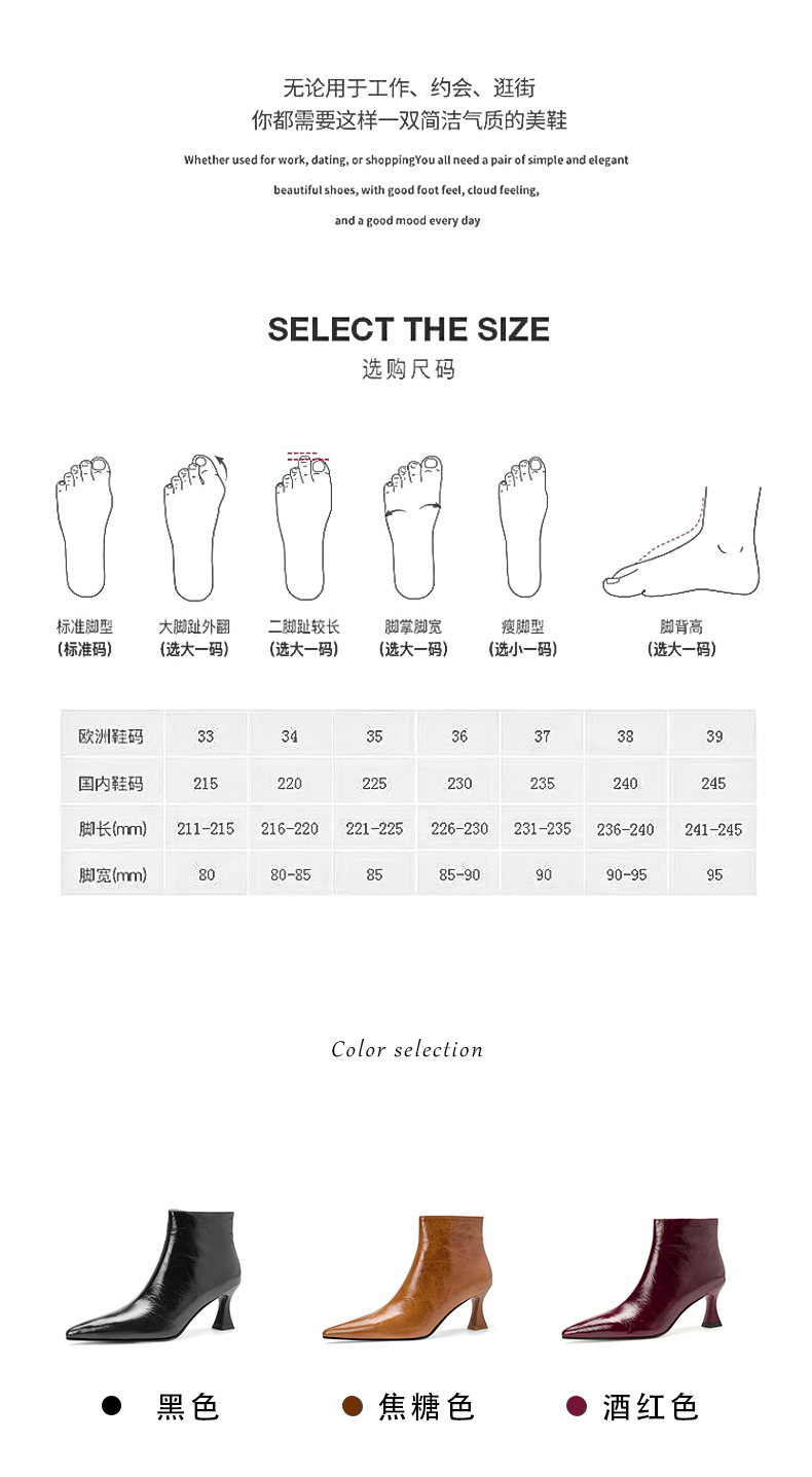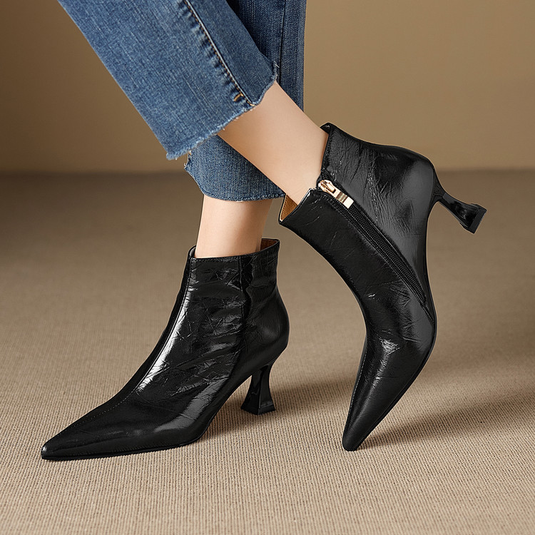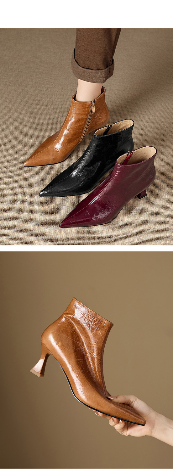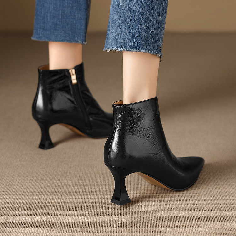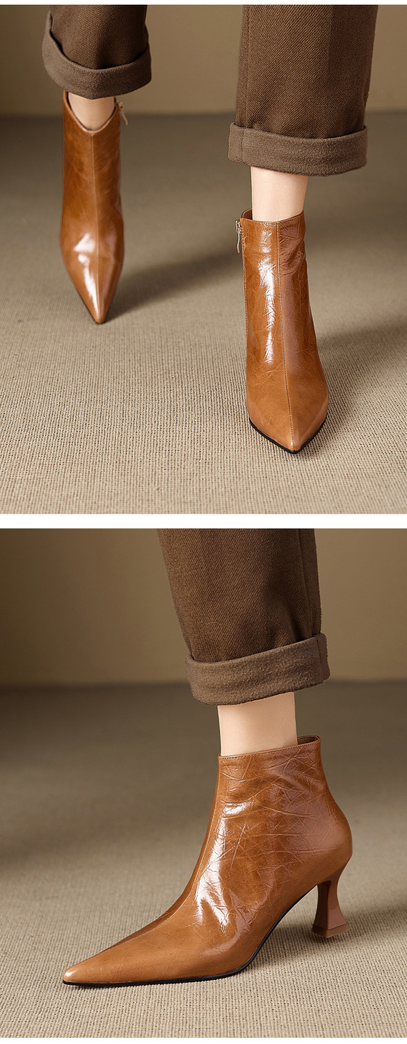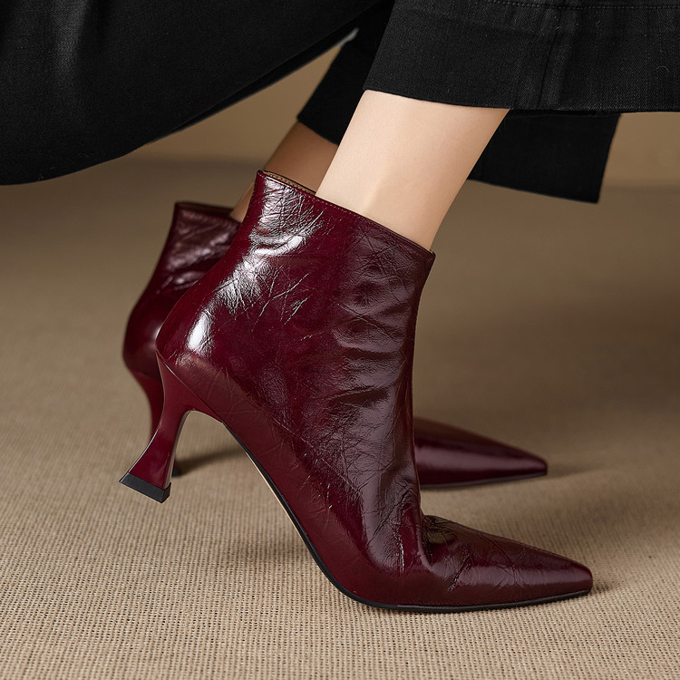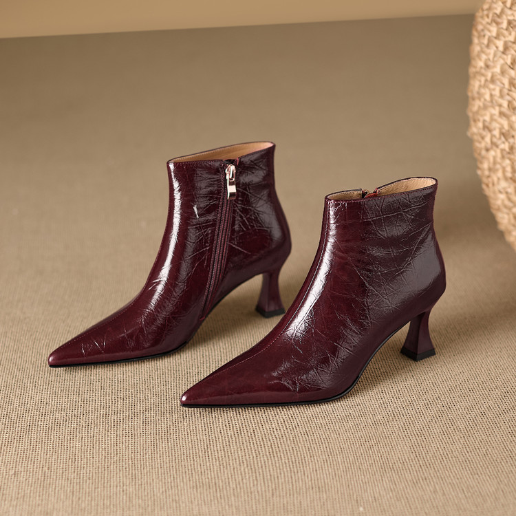 【预售5天】法式复古尖头中跟短靴女秋冬细高跟软牛皮小裸靴性感简约ol时装靴MBJR&5601