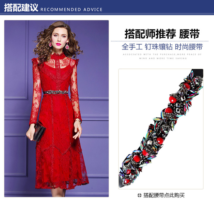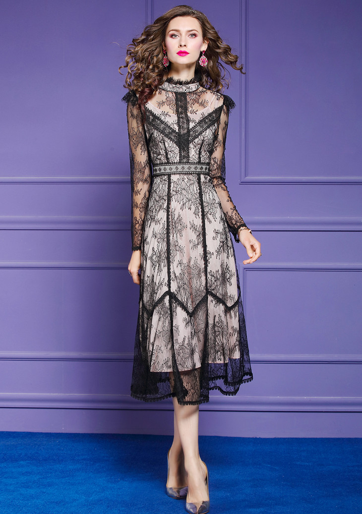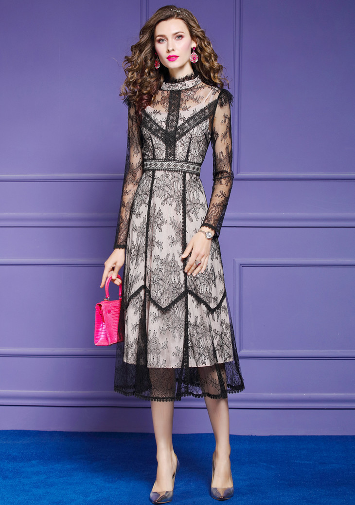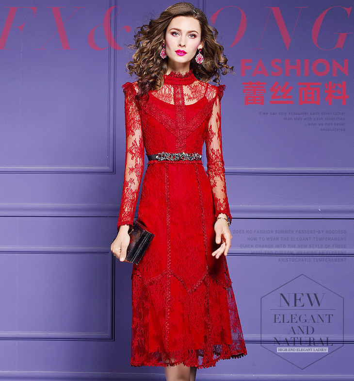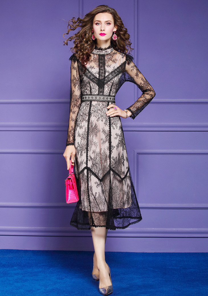 FMY-F20CL30378夏新款轻熟气质显瘦修身超仙过膝蕾丝连衣裙