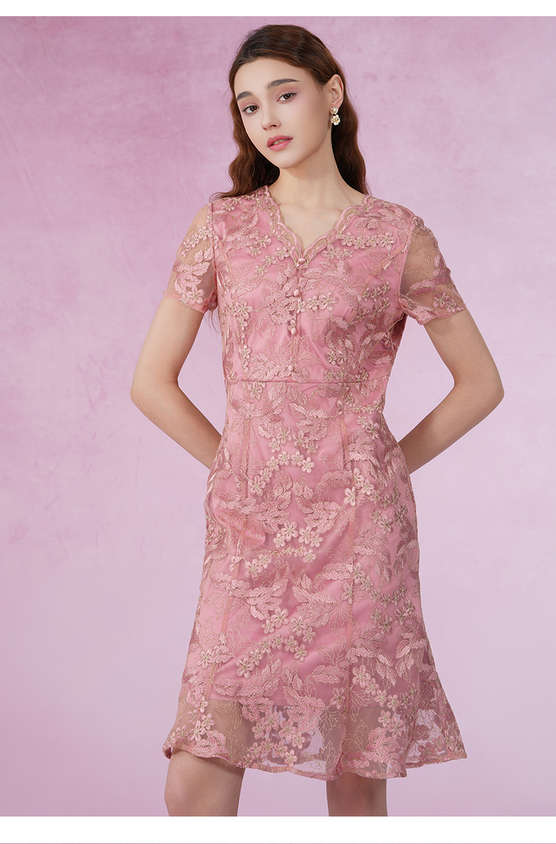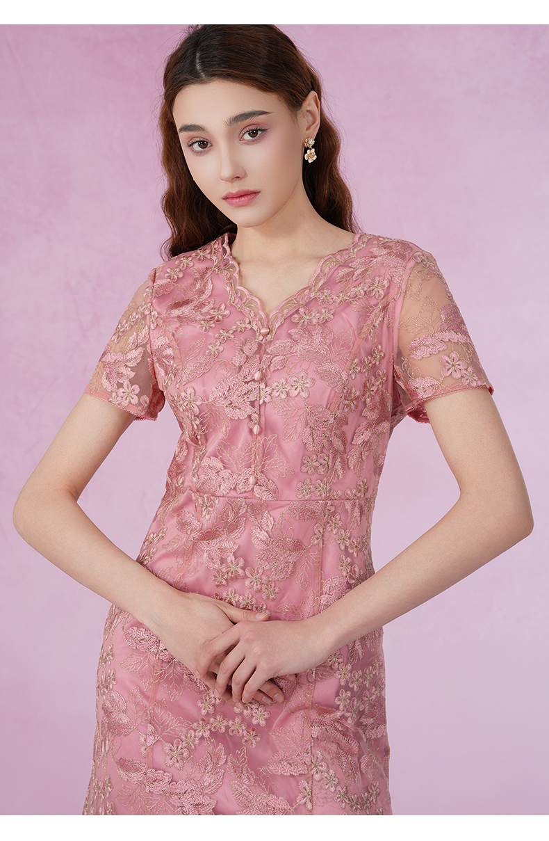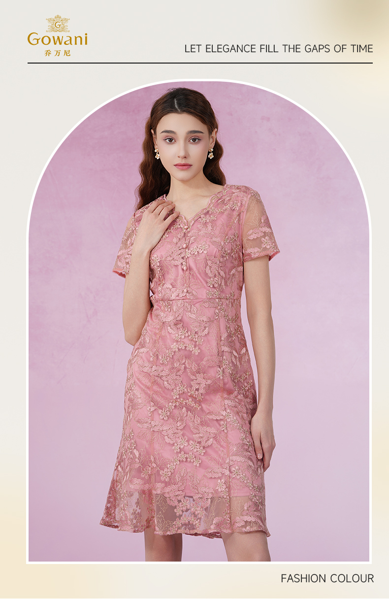 乔万尼蕾丝刺绣收腰连衣裙喜宴晚会EN2E503