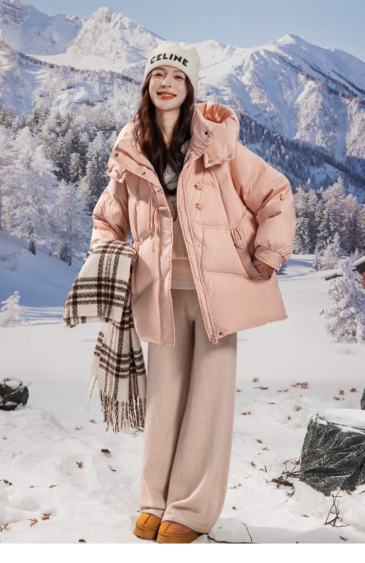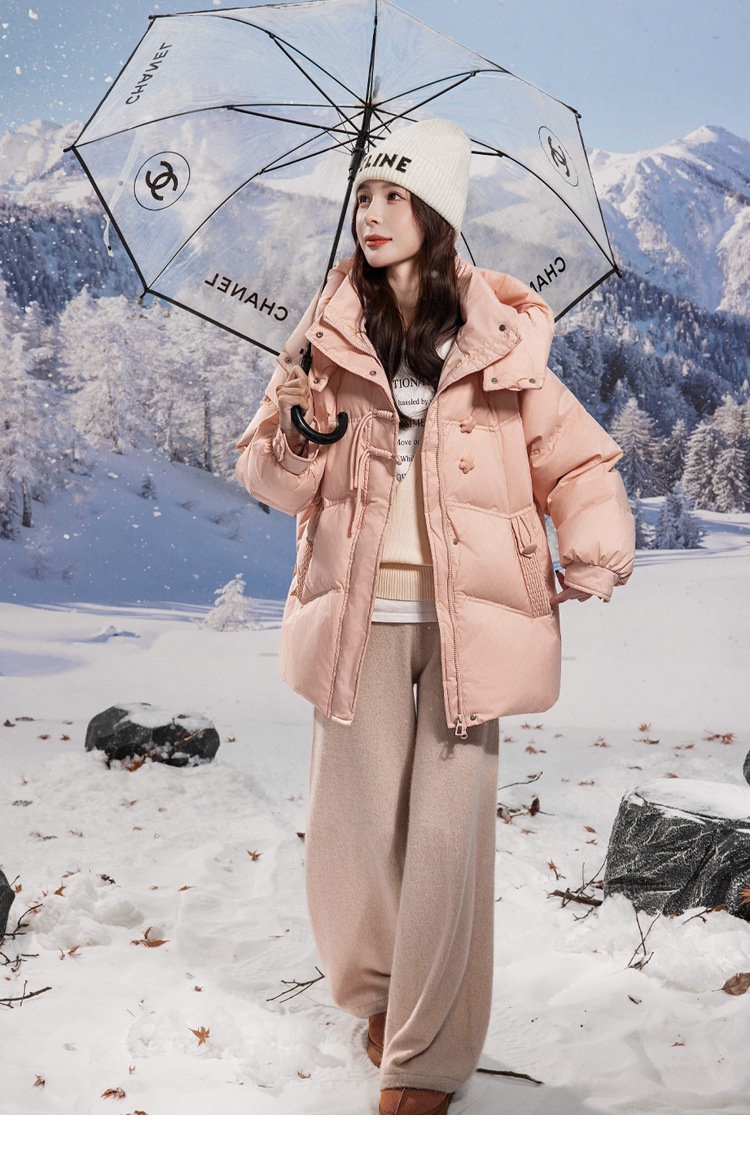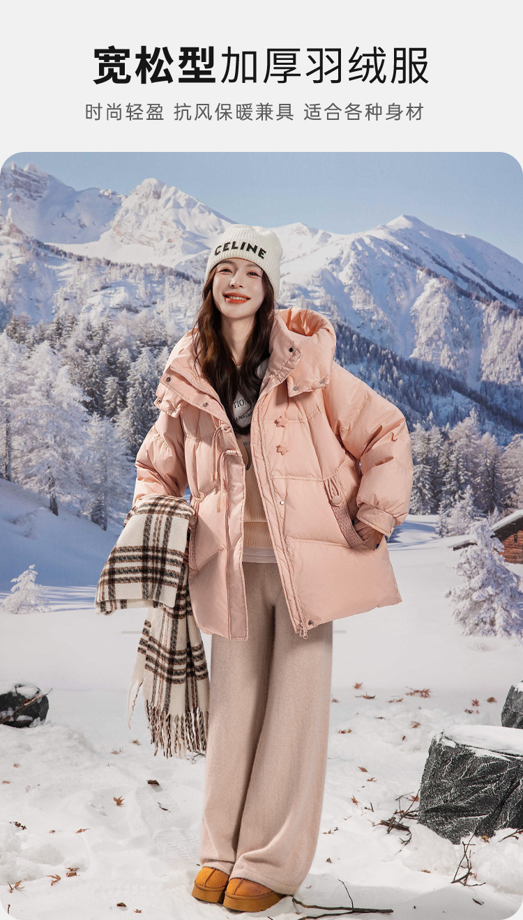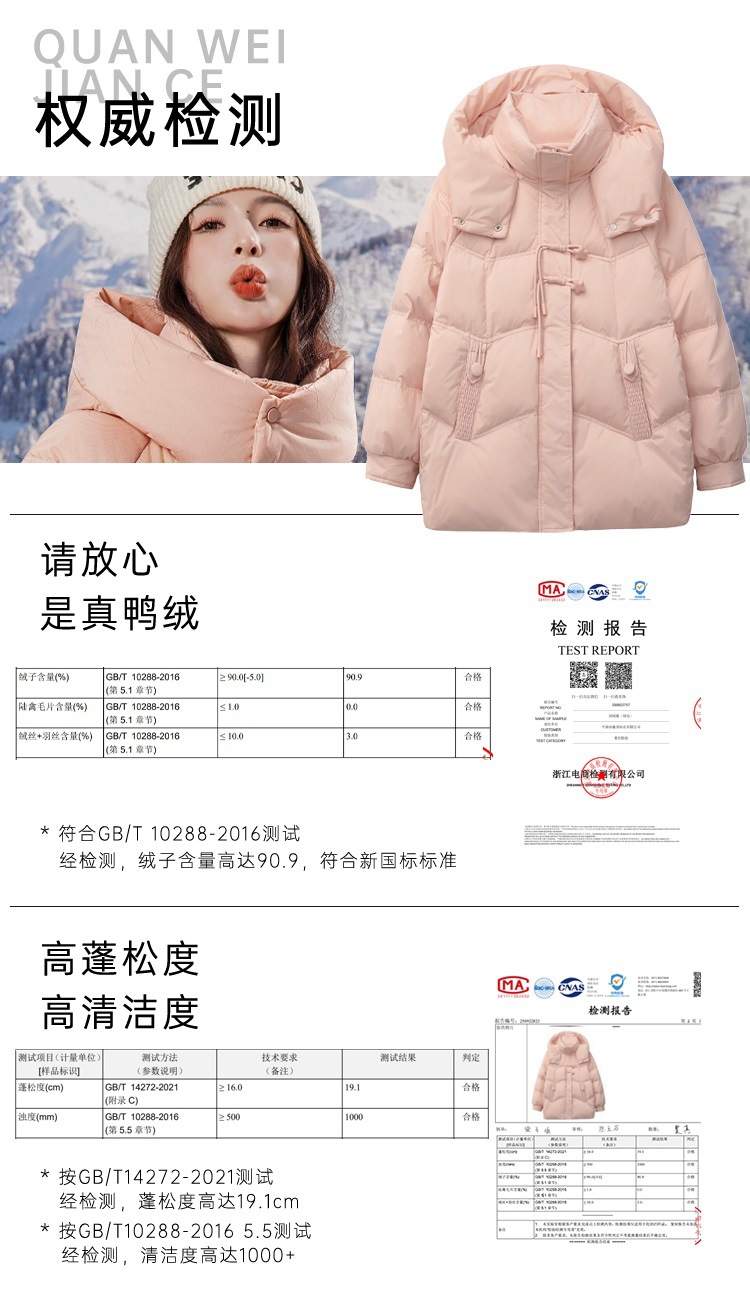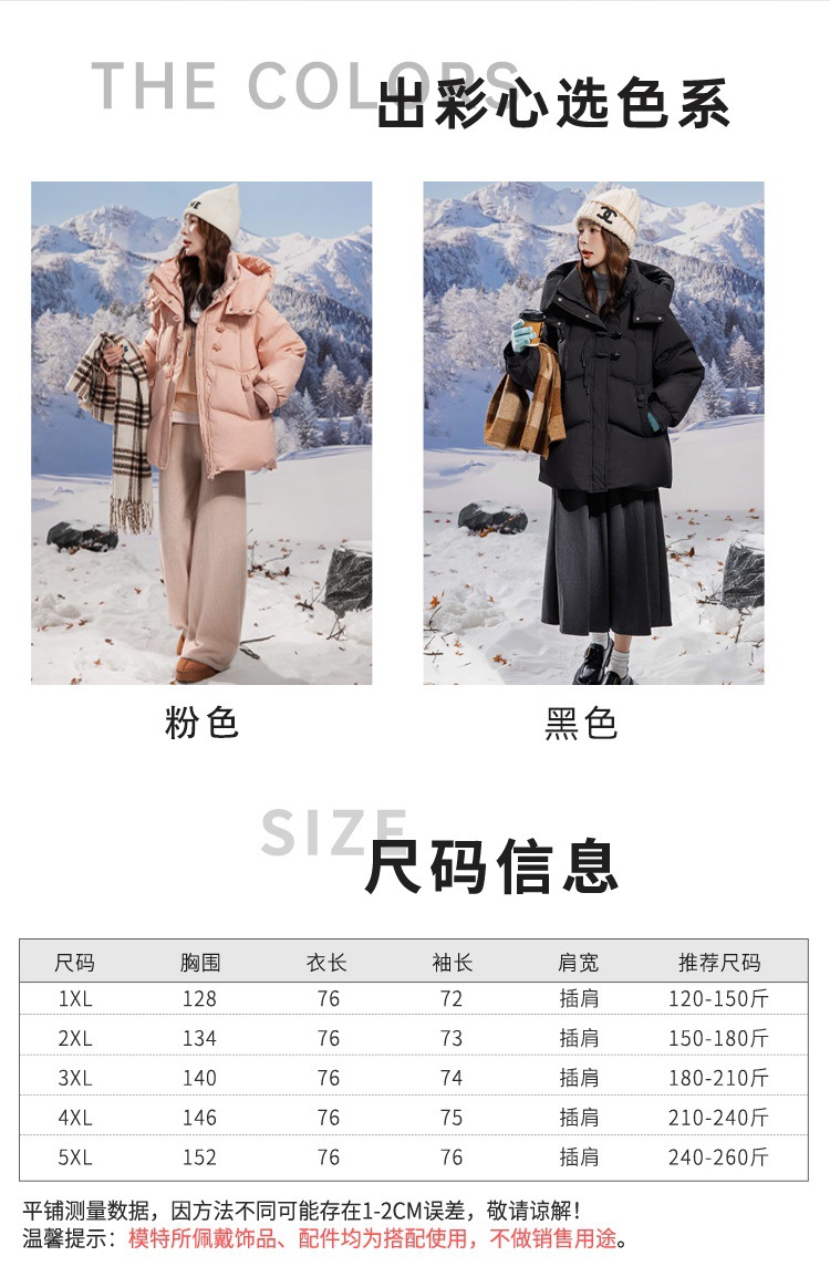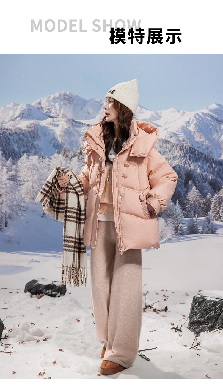 丁摩 时尚白鸭绒小个子加大码羽绒服女连帽外套2525 商品图4