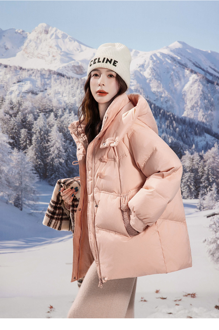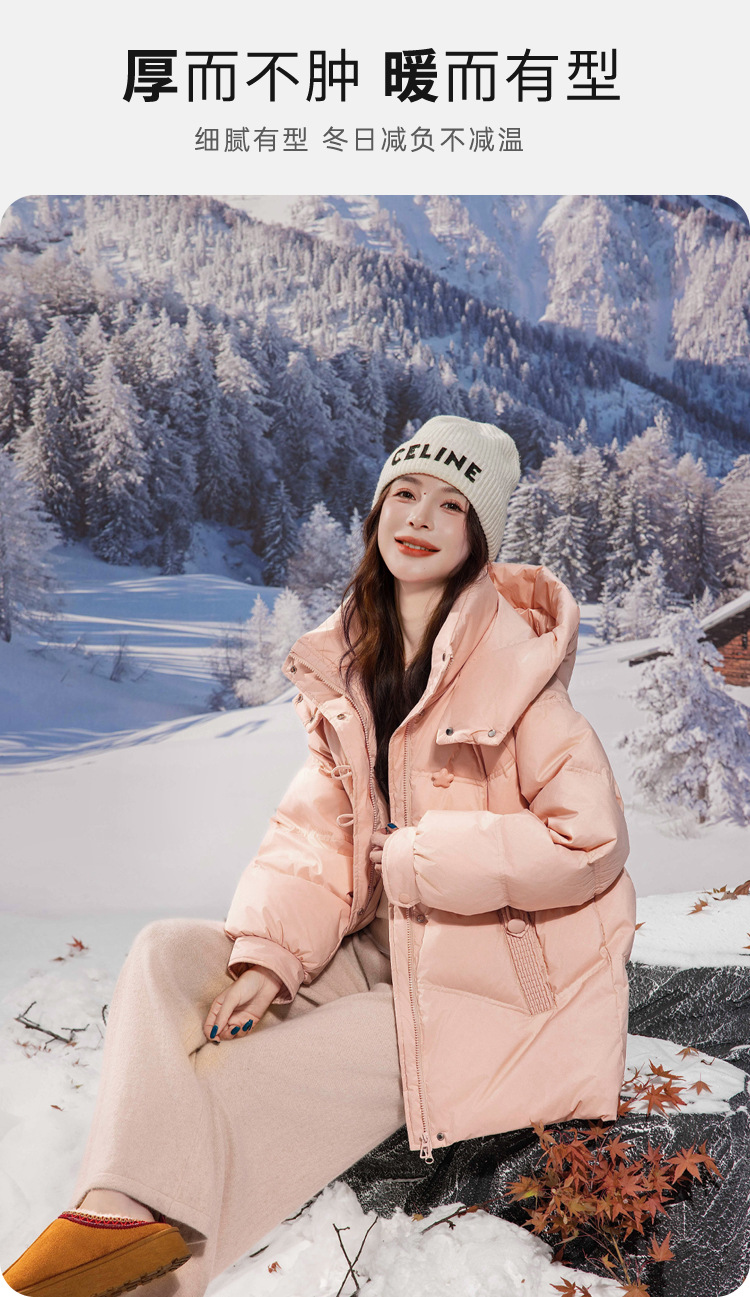丁摩 时尚白鸭绒小个子加大码羽绒服女连帽外套2525 商品图3