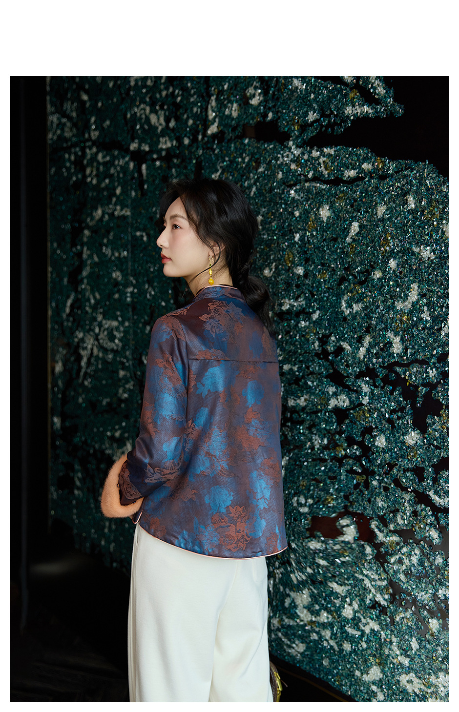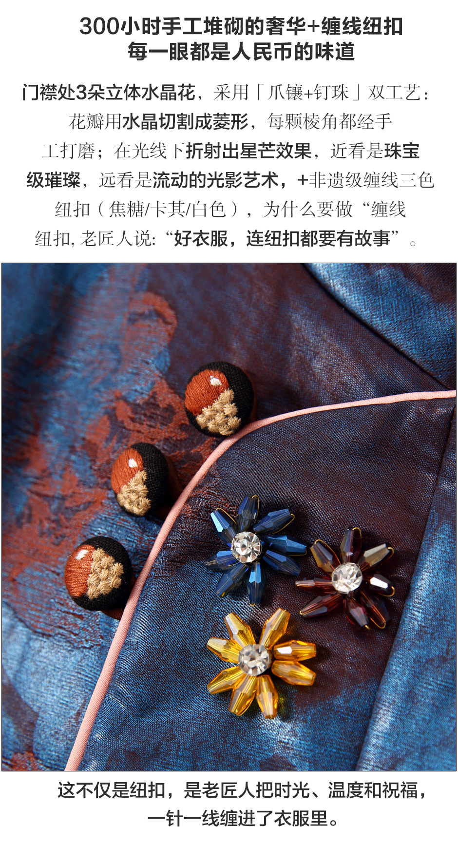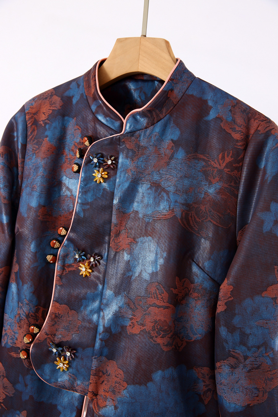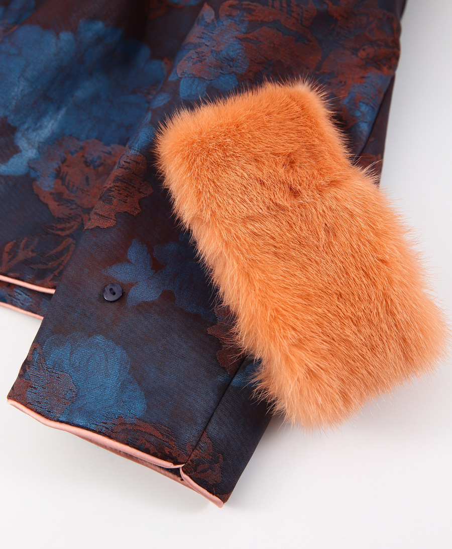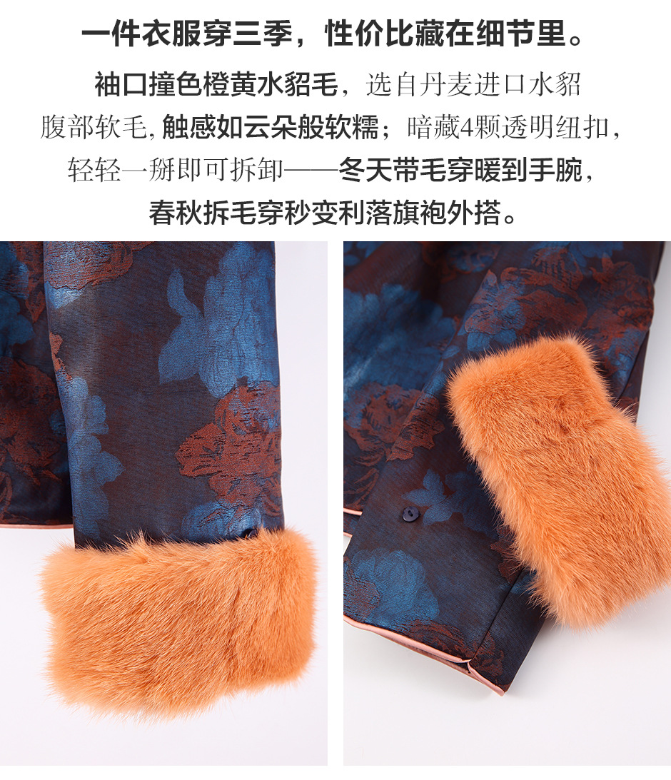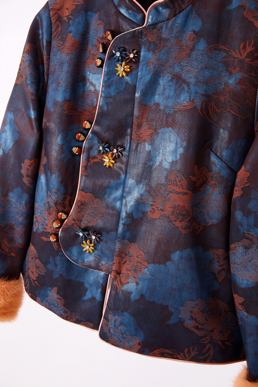 丁摩 水貂毛钉珠宋锦女秋冬新中式盘扣加厚保暖短款羊毛外套上衣5ZF-76051