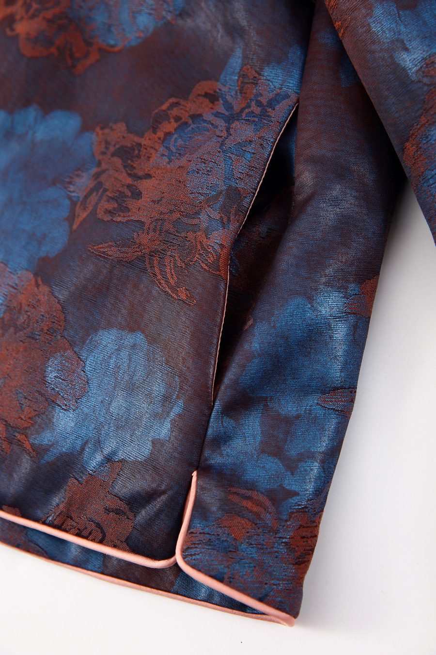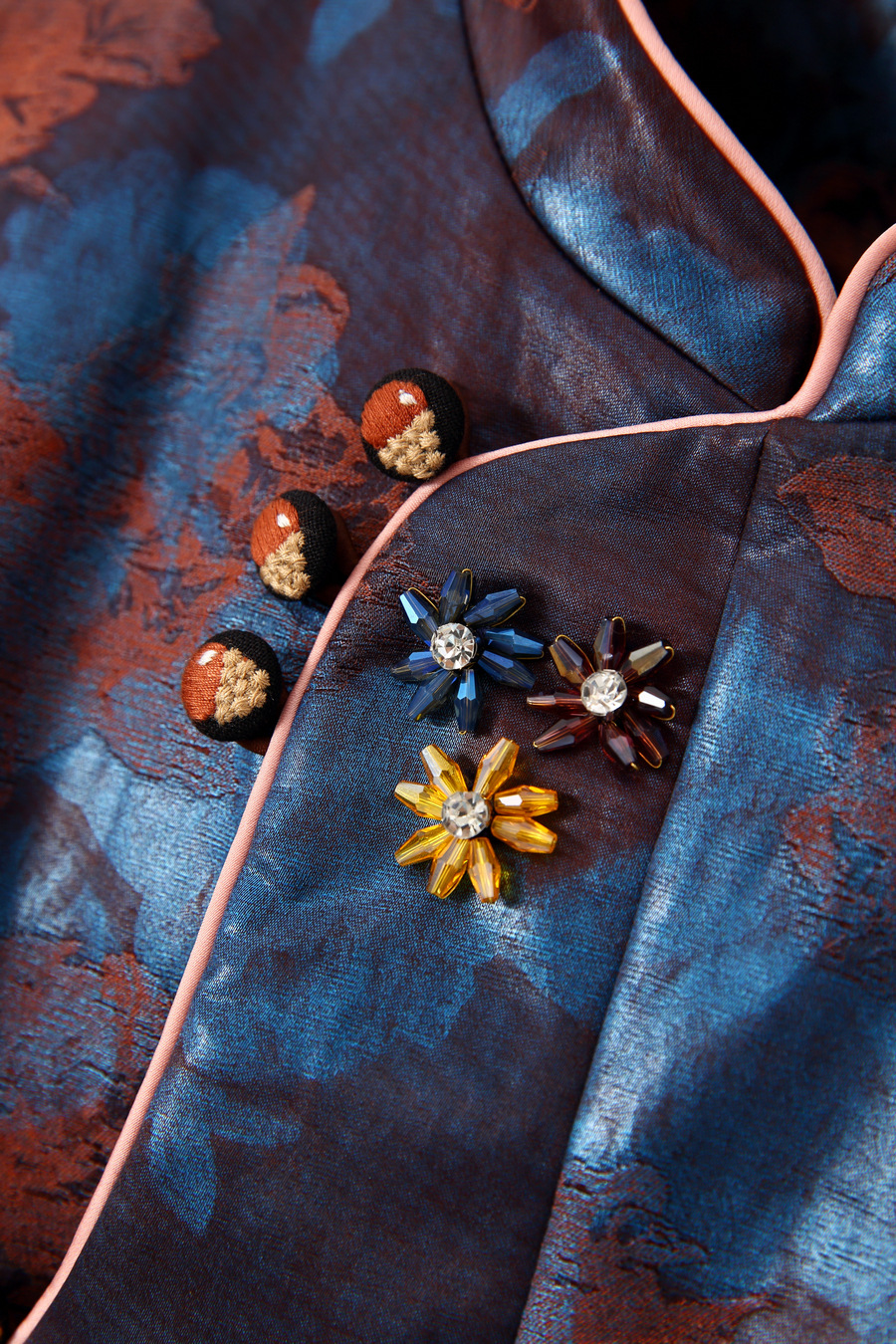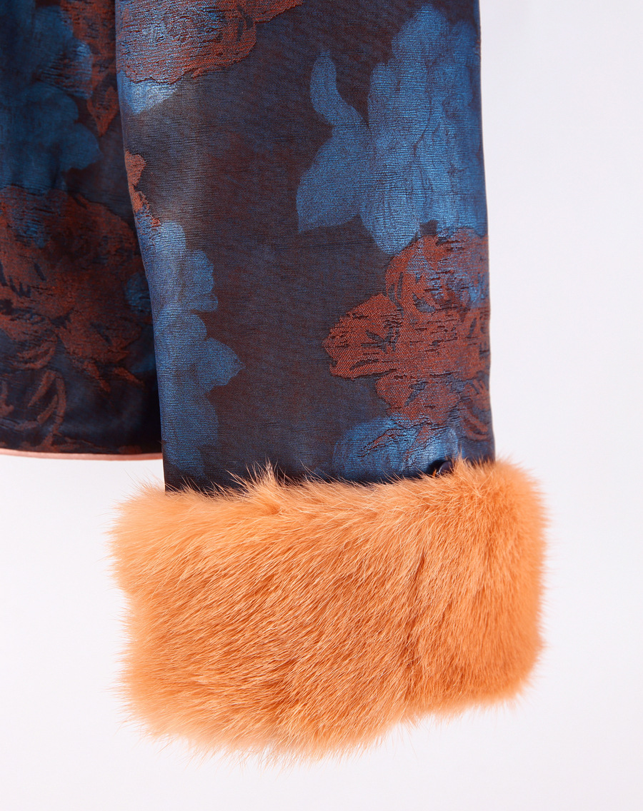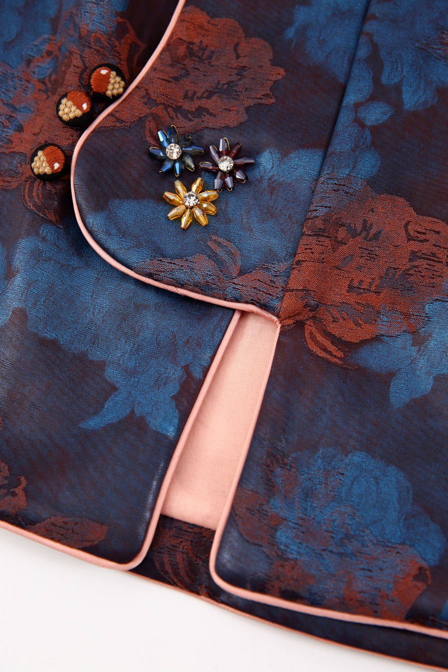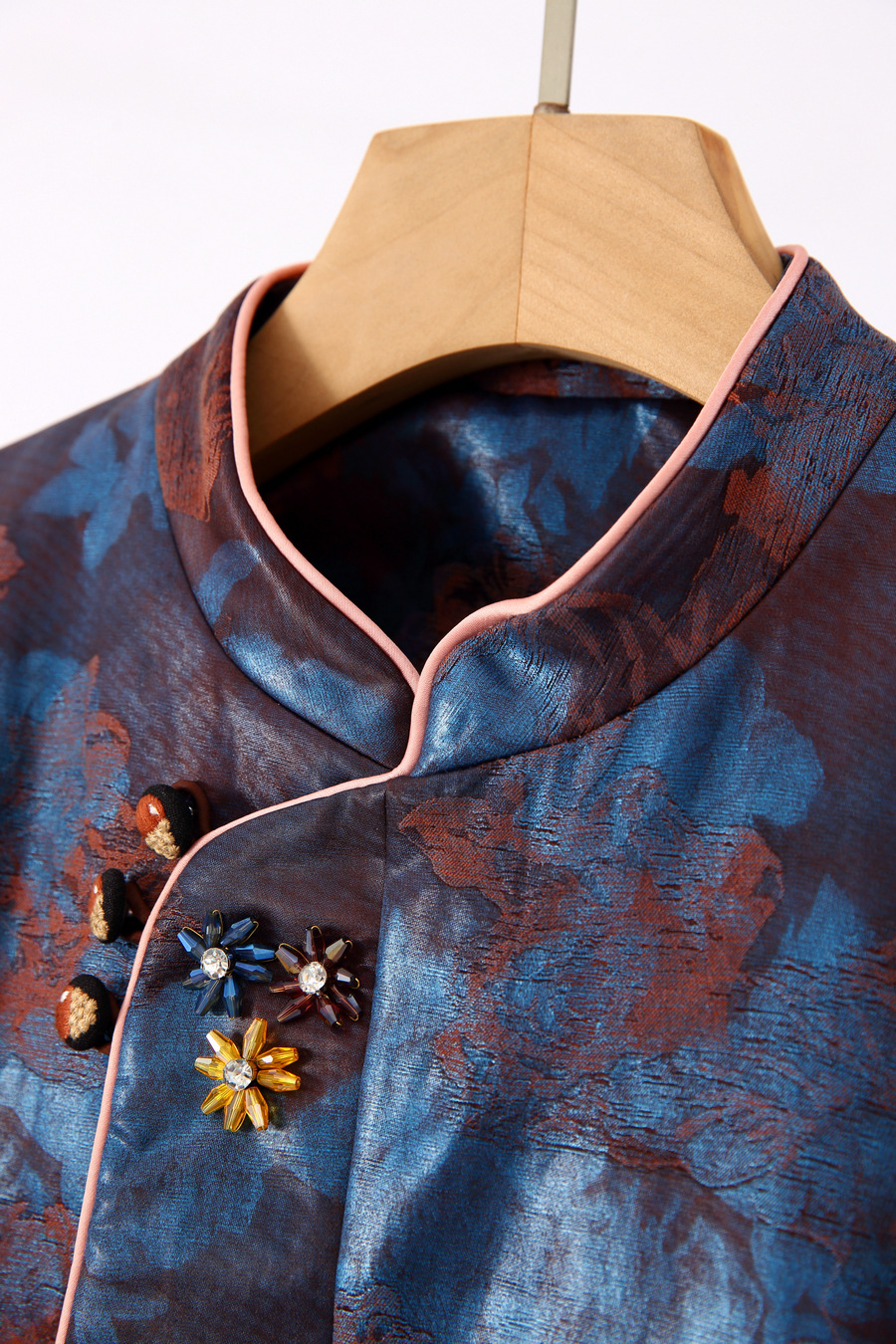 丁摩 水貂毛钉珠宋锦女秋冬新中式盘扣加厚保暖短款羊毛外套上衣5ZF-76051