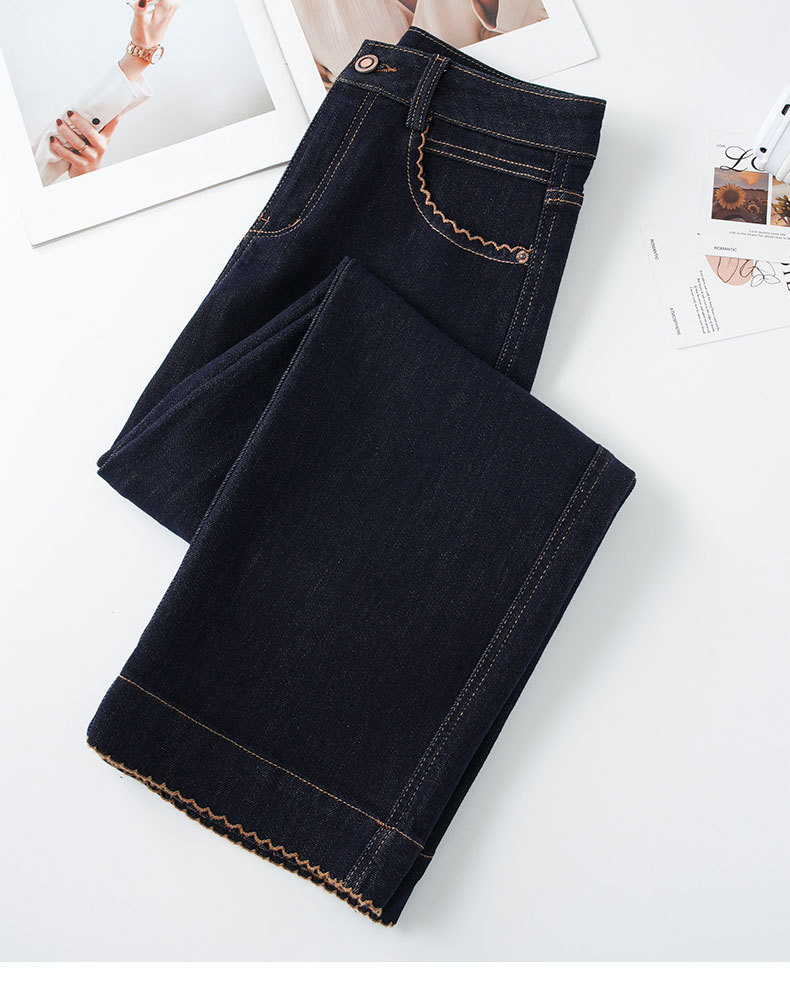 QYM F2128-Y牛仔直筒裤高腰阔腿裤时尚宽松休闲裤 商品图4