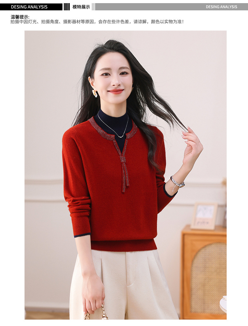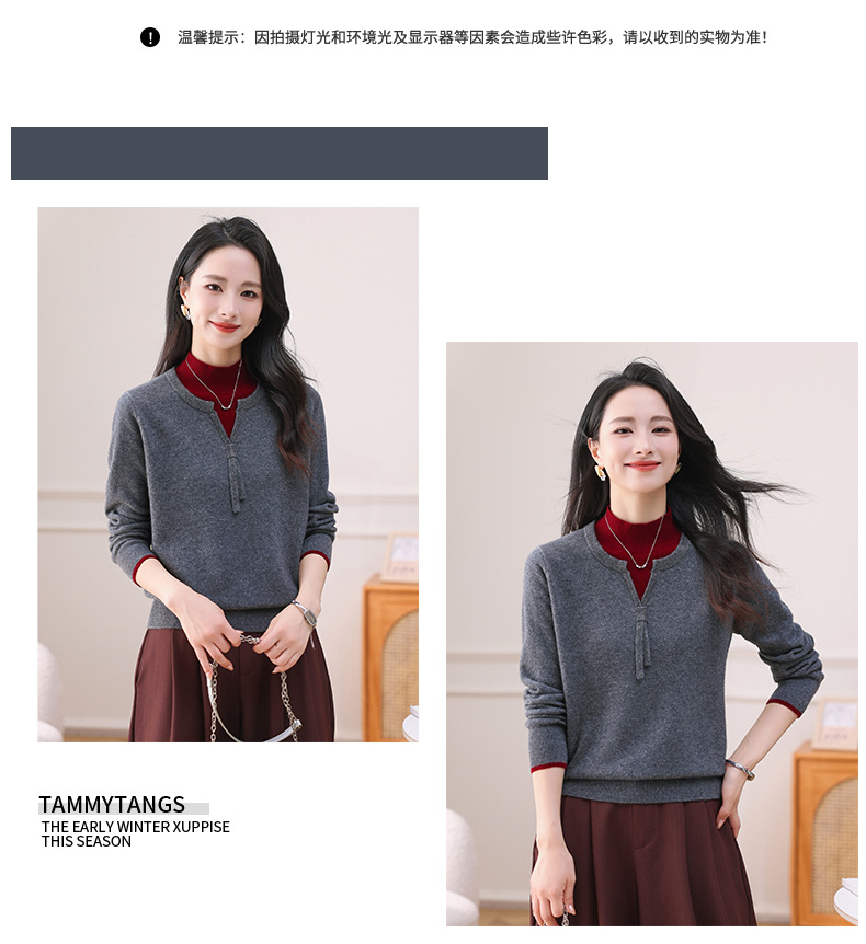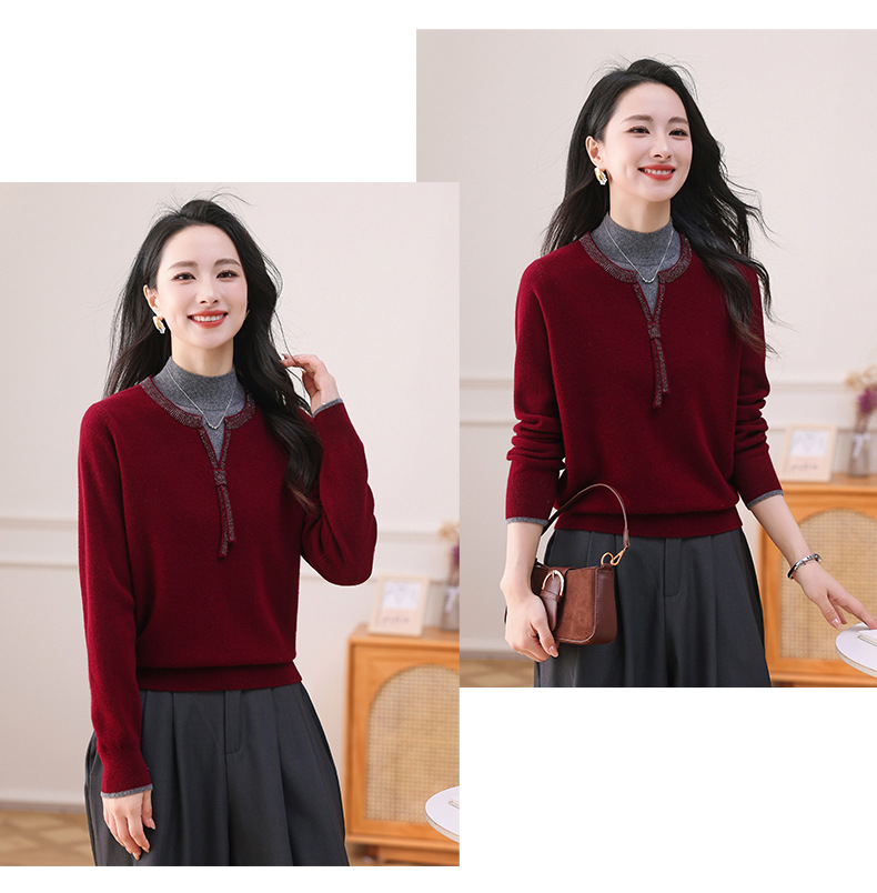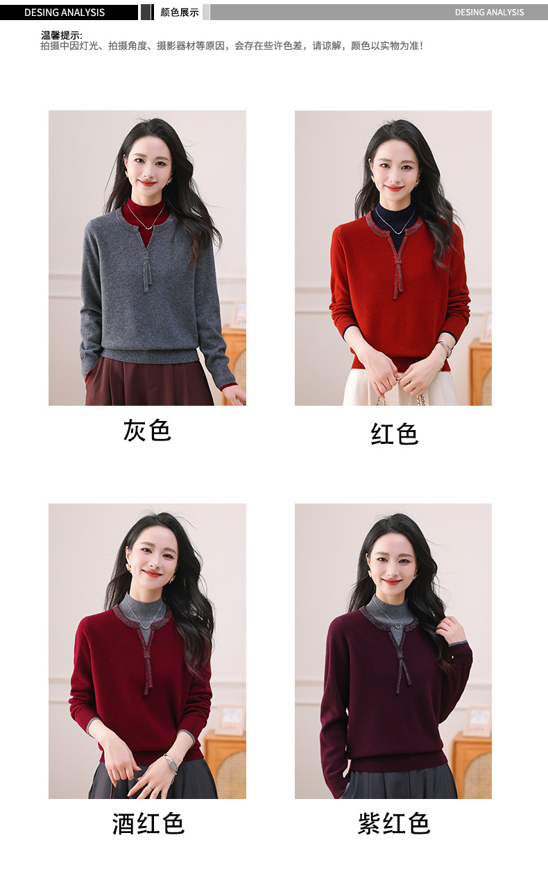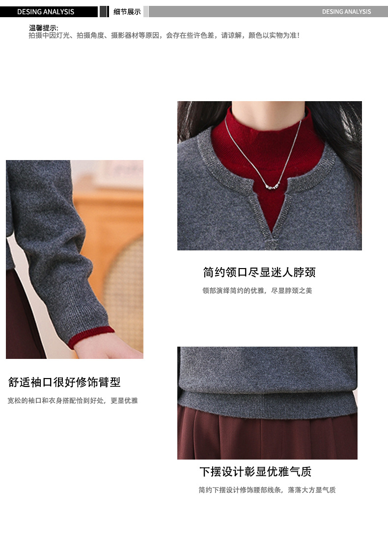 QF 62-741A优雅半高领纯羊毛衫时尚洋气撞色纯色毛衣
