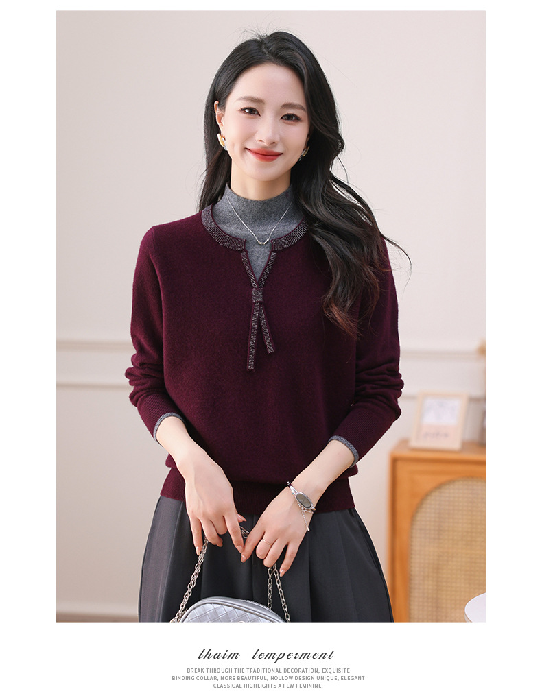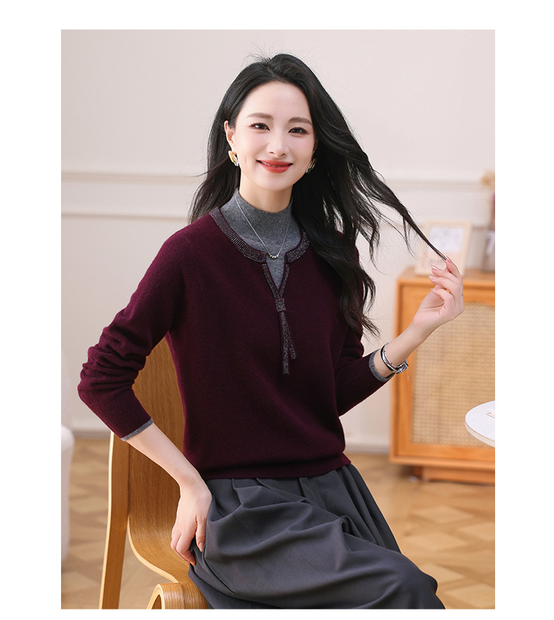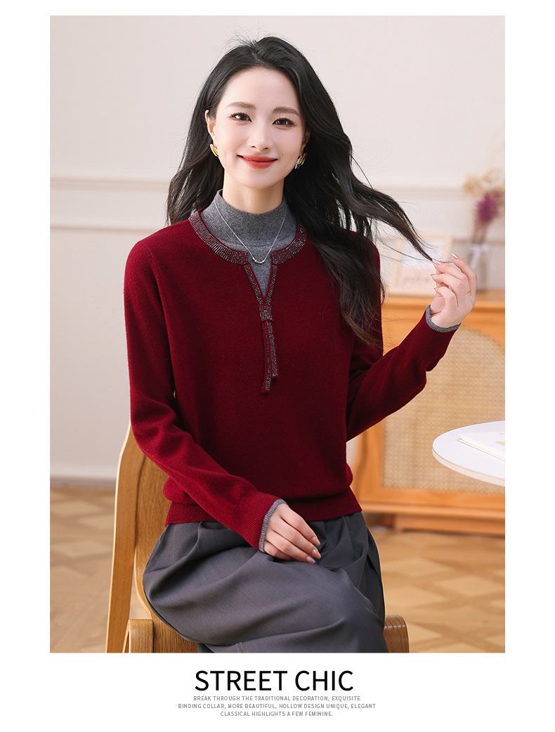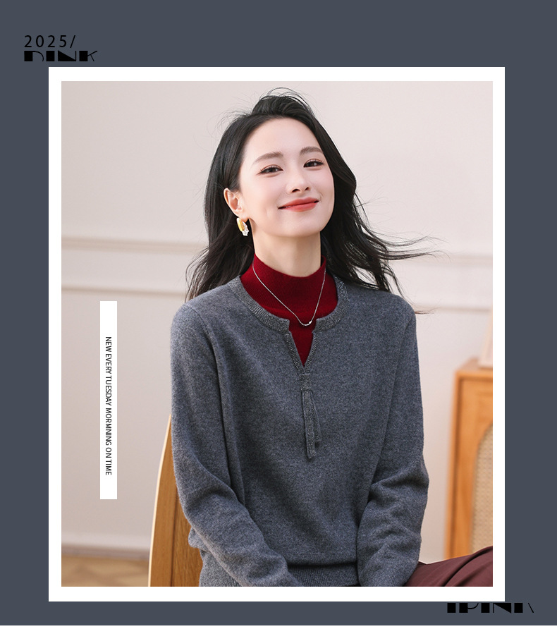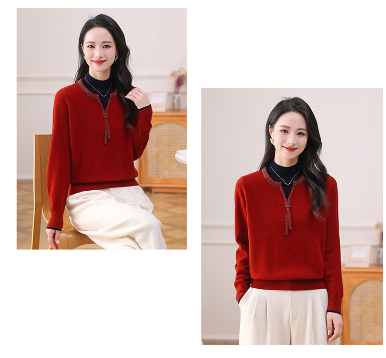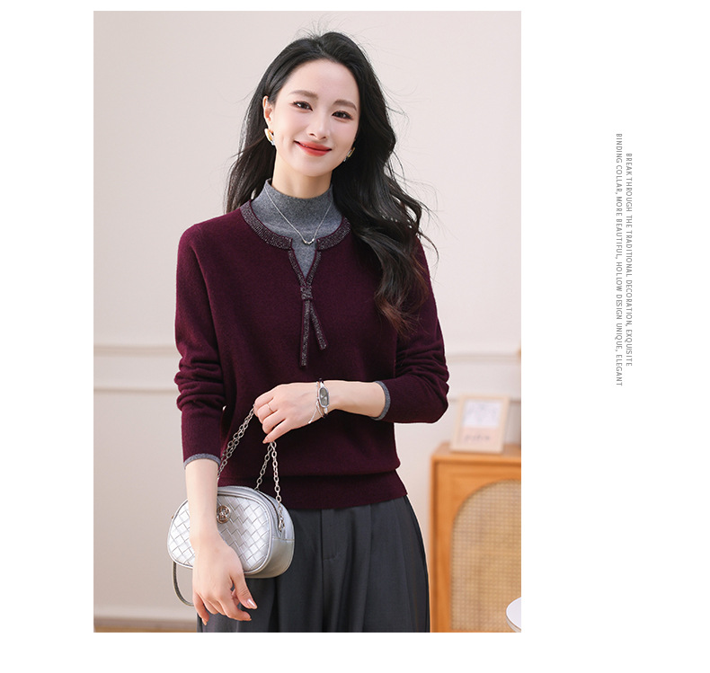 QF 62-741A优雅半高领纯羊毛衫时尚洋气撞色纯色毛衣