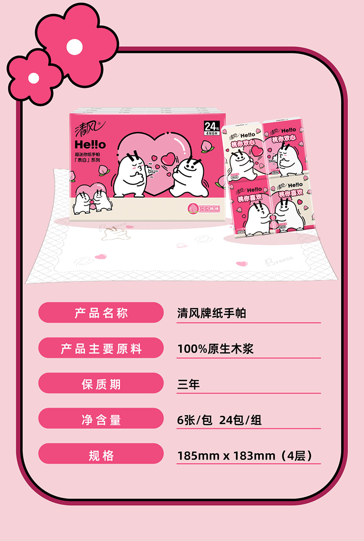 【官方自营】清风Hello超迷你4层6张24包有香印花纸手帕