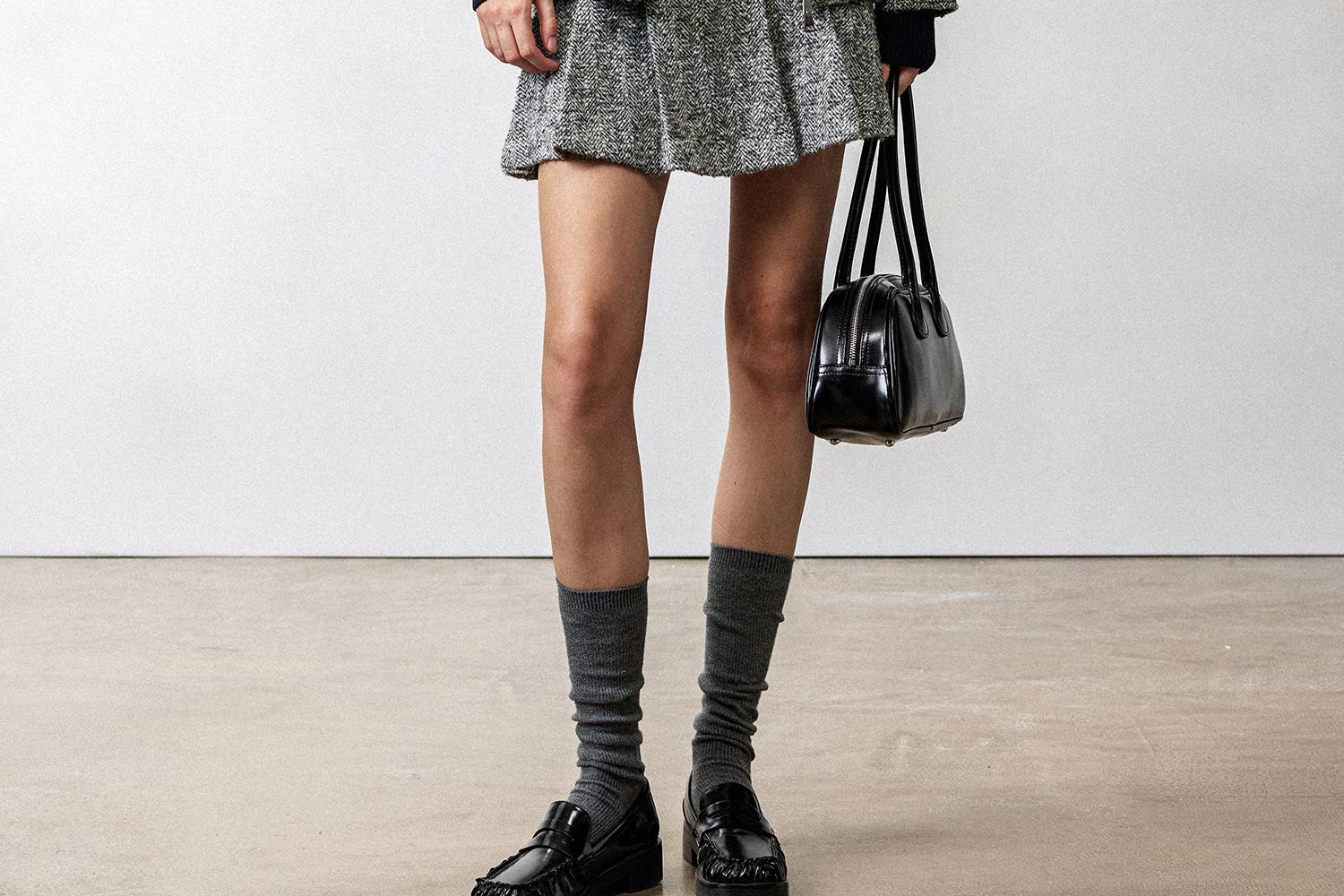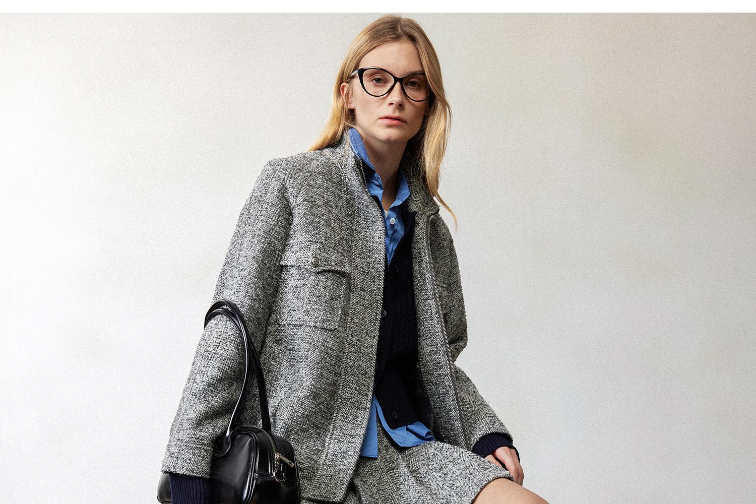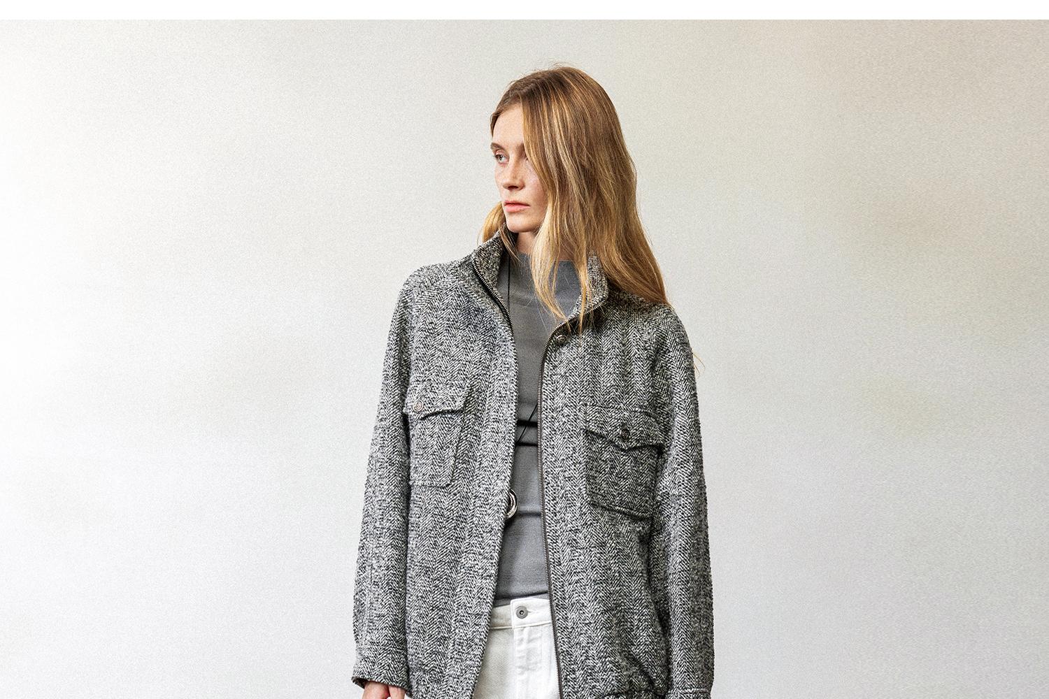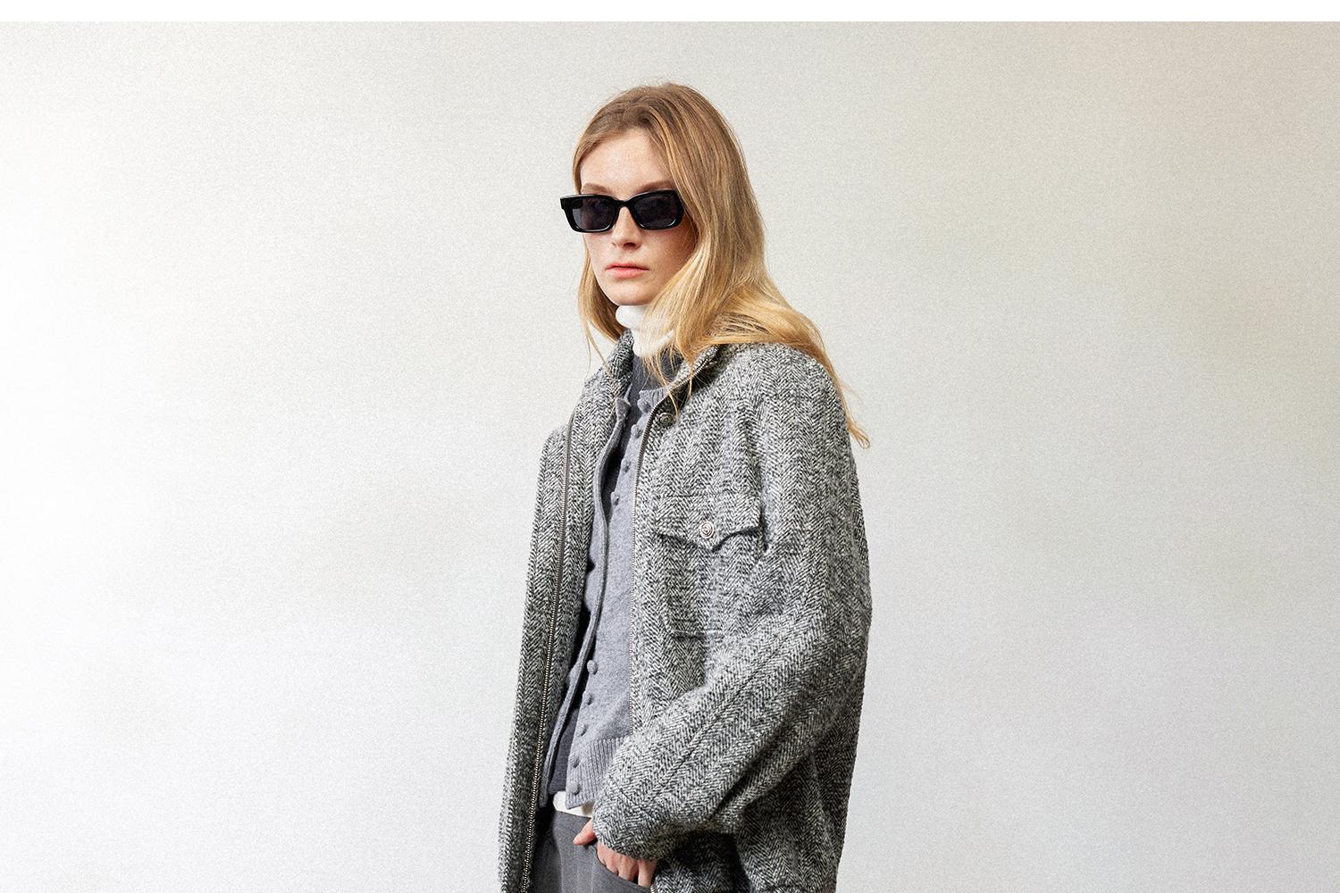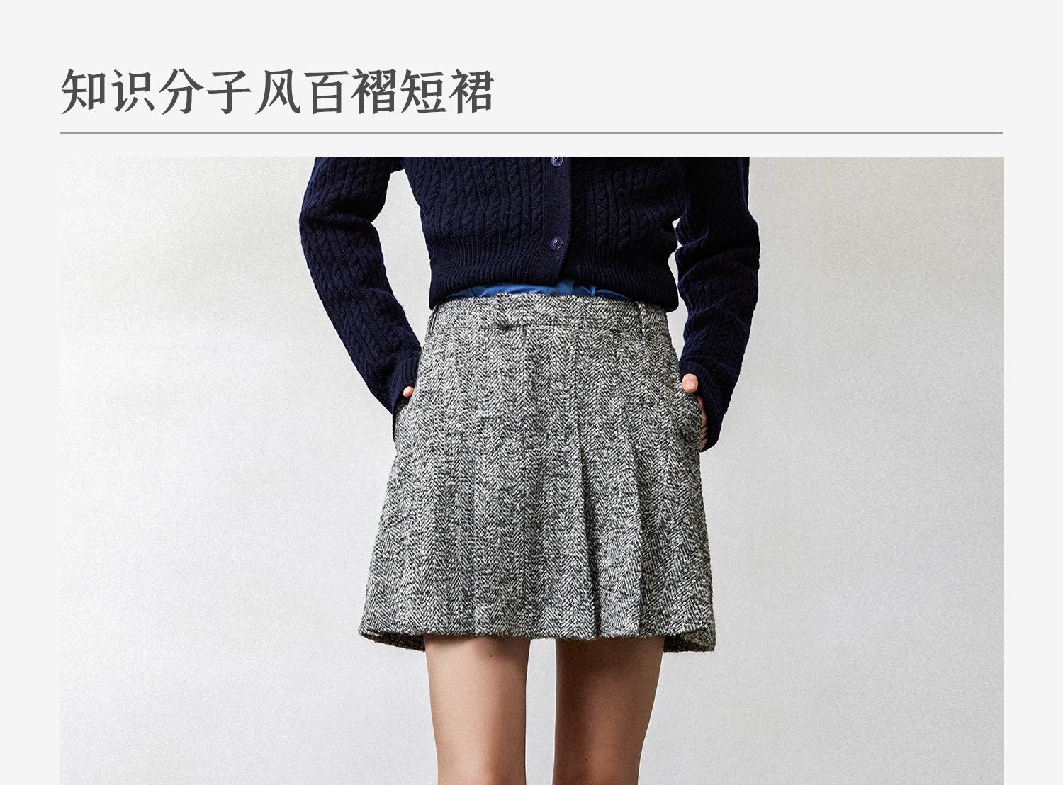 西嘉羊驼羊毛圈圈纱 粗纺呢人字纹MIU系夹克外套/百褶半裙女套装(货号:WT2404026)