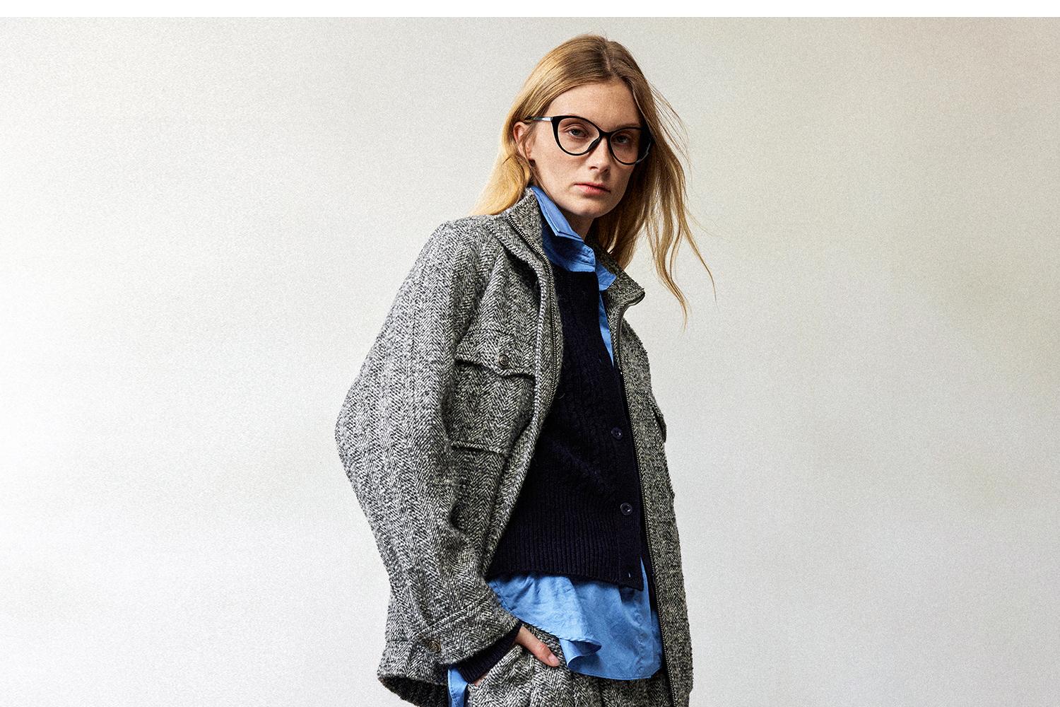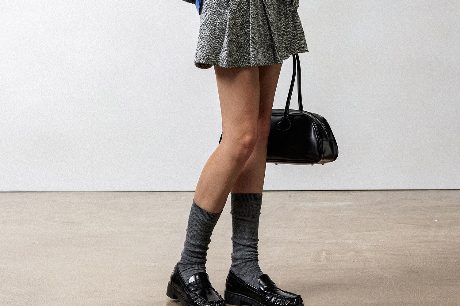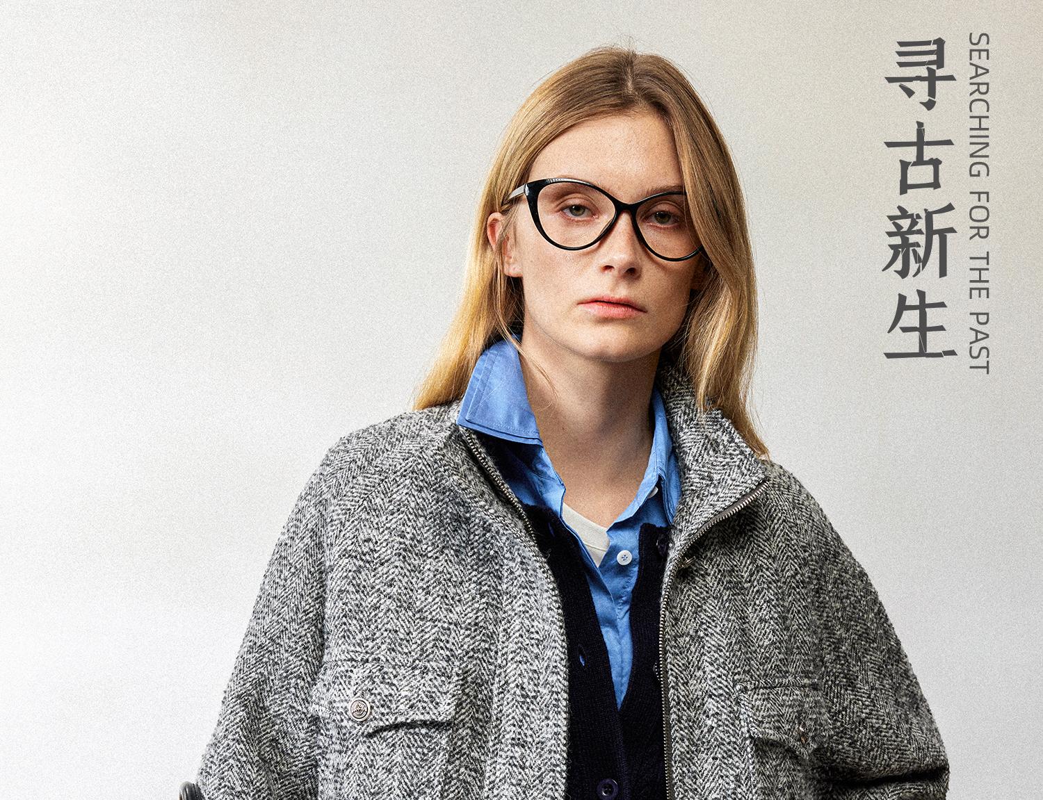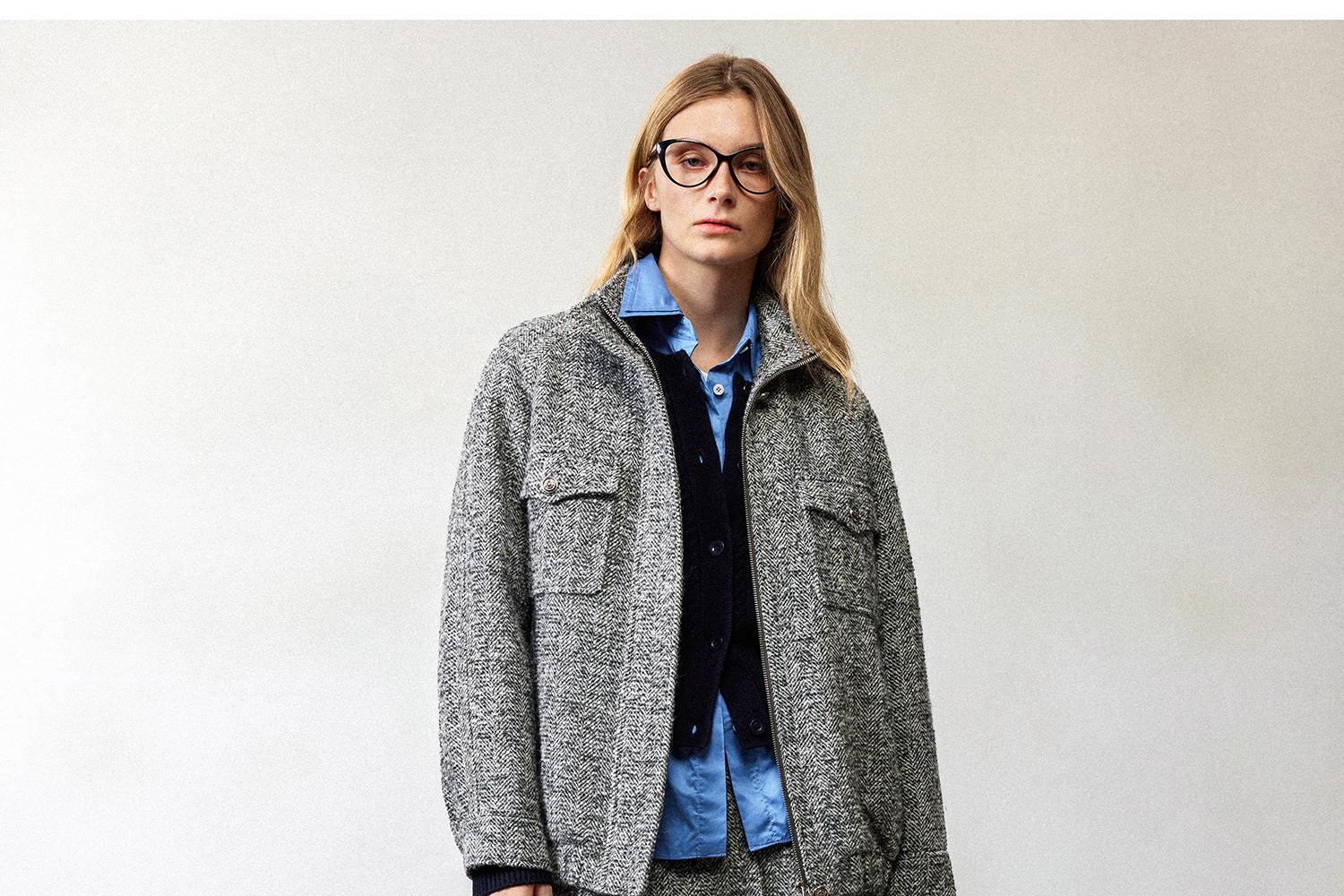 西嘉羊驼羊毛圈圈纱 粗纺呢人字纹MIU系夹克外套/百褶半裙女套装(货号:WT2404026)