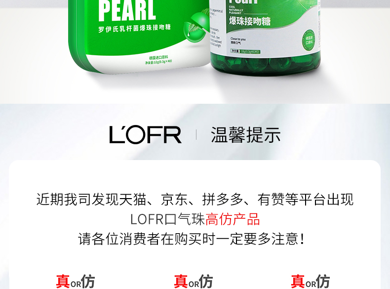 【德国进口原料LOFR口气珠抗幽率99.97%】L'OFR罗伊氏乳杆菌爆珠接吻糖3秒爆珠满嘴薄荷香从源头清新口气 【新款盒装】(赠防疫大礼包)