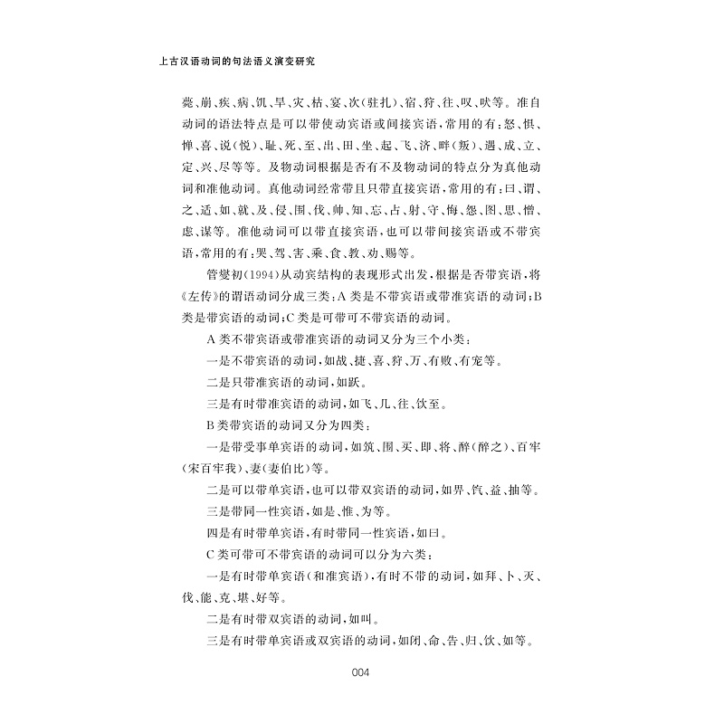 上古代汉语中,动词带不带宾语,宾语是否可以省略,动词和宾语的语义关系,这些基本情况与现代汉语是有很大区别的。上古汉语动词的句法语义表现如何,哪些动词不能省略宾语,哪些动词和宾语的关系比较松散,动词和宾语的语义关系,上古汉语动词和现代汉语动词有多大的区别,这些问题关系上古汉语动词的基本面貌。而上古汉语的动宾关系到中古时期就有了很大变化,这个变化过程是如何发生的,影响因素有哪些,这都是值得探讨的。