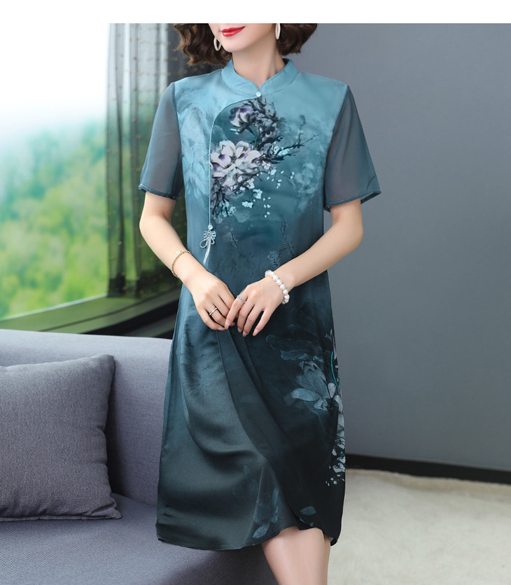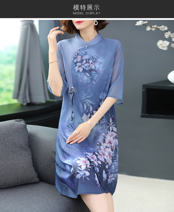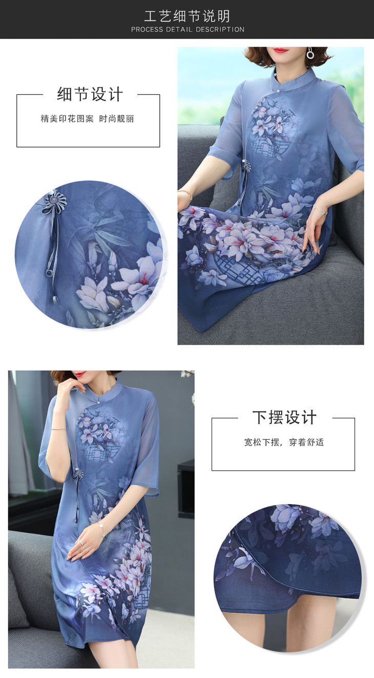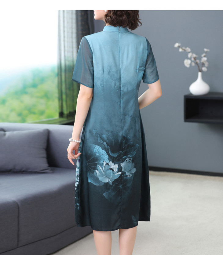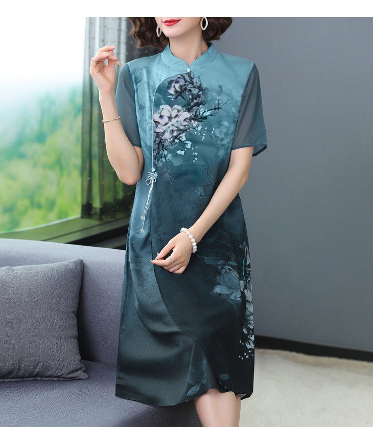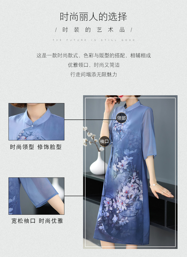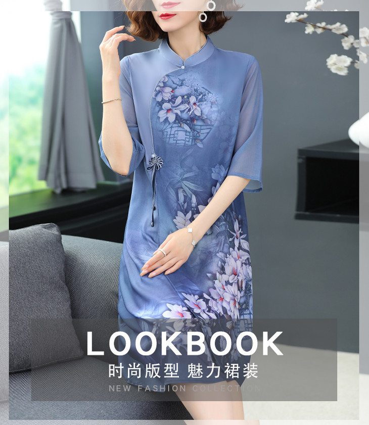 AHM-6558夏季新款印花改良款旗袍大码妈妈装修身气质连衣裙