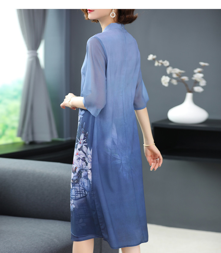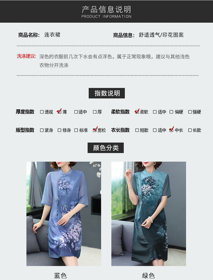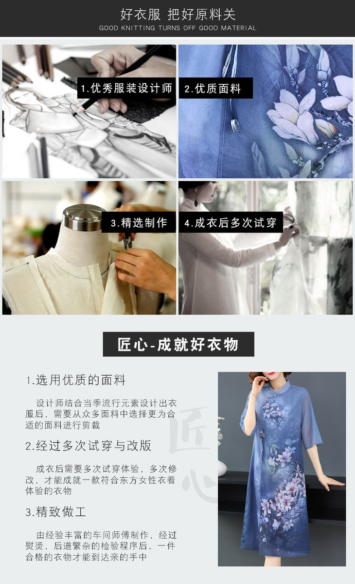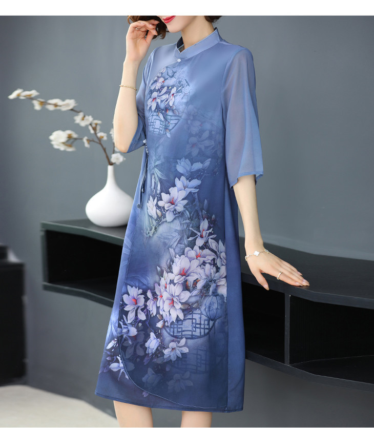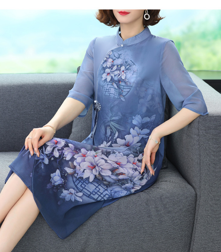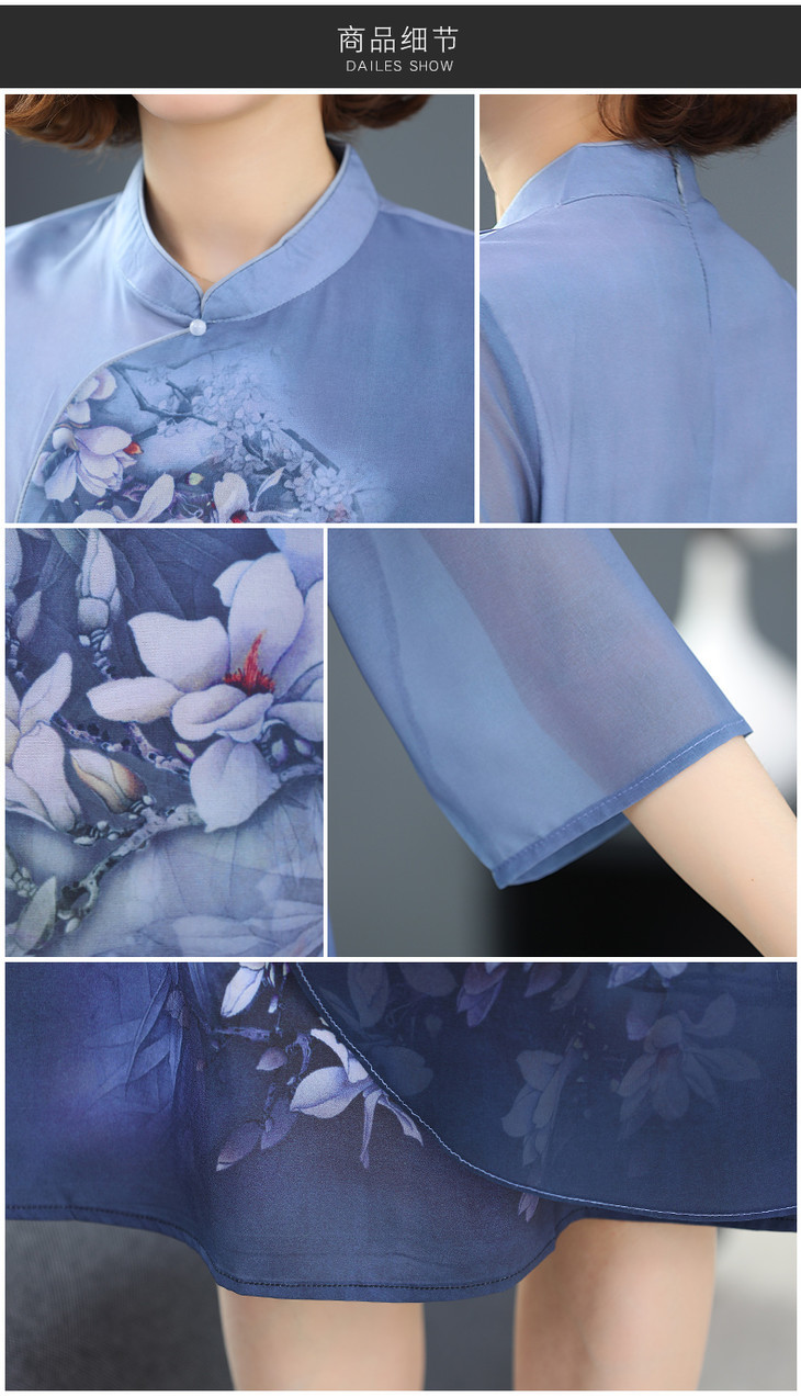 AHM-6558夏季新款印花改良款旗袍大码妈妈装修身气质连衣裙