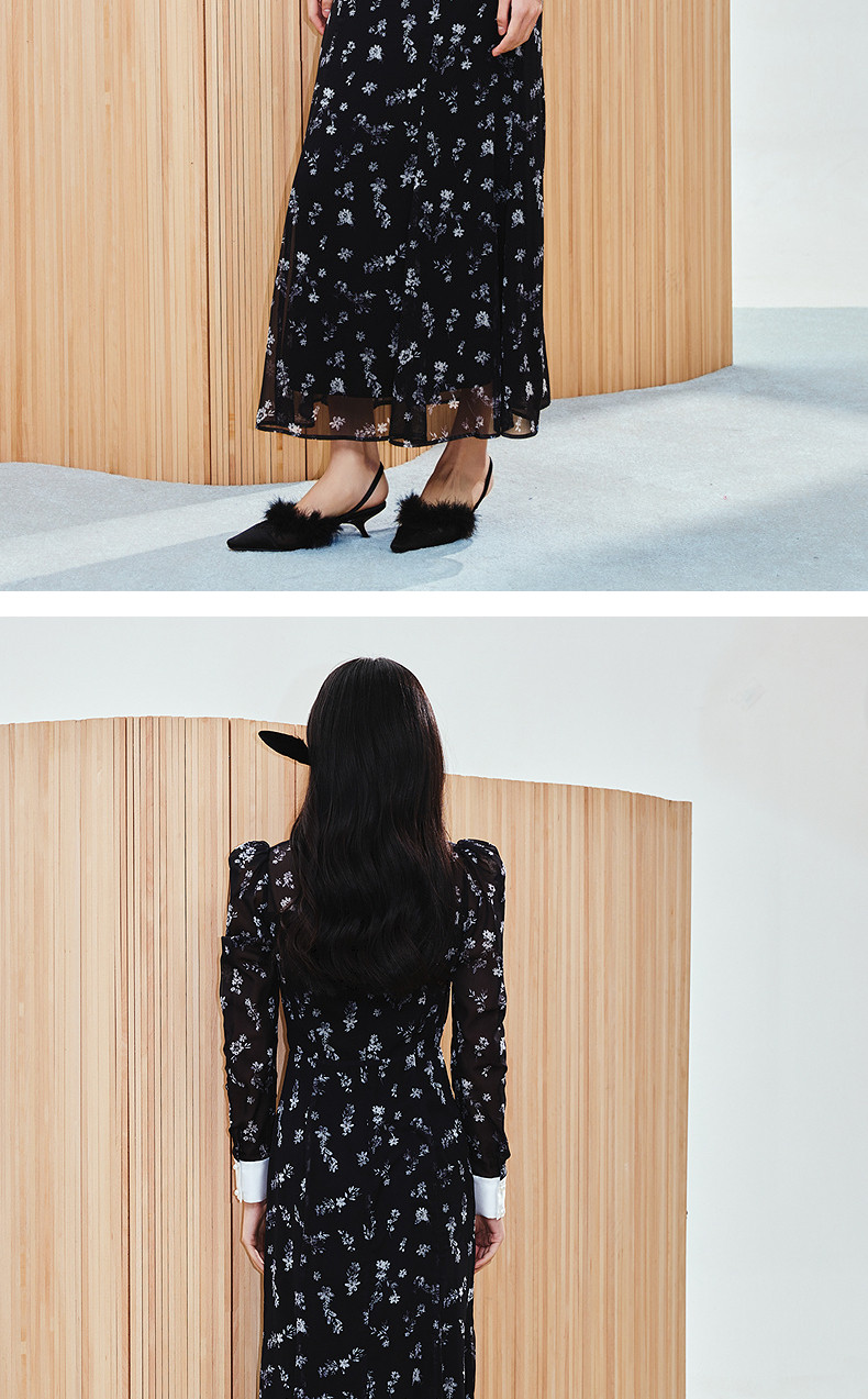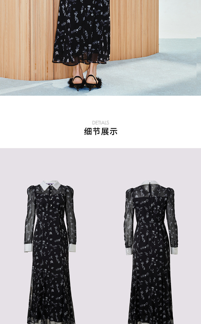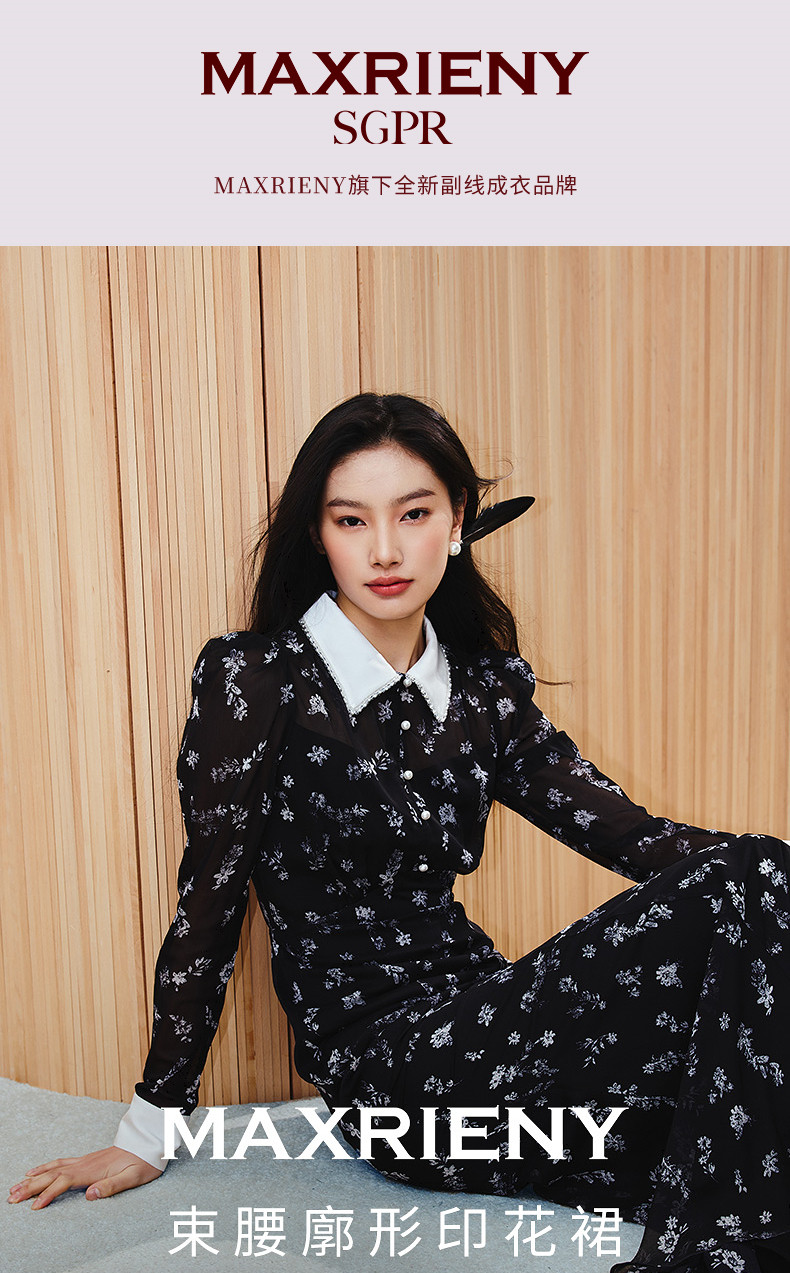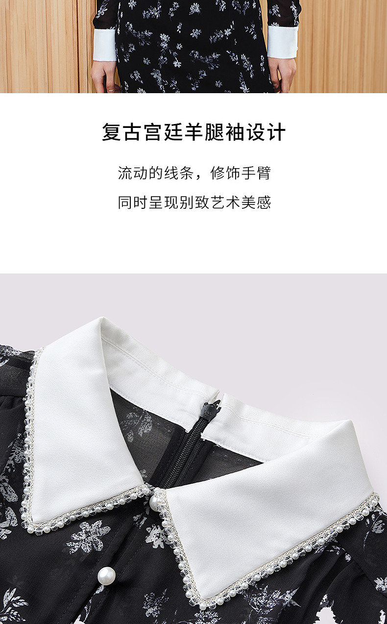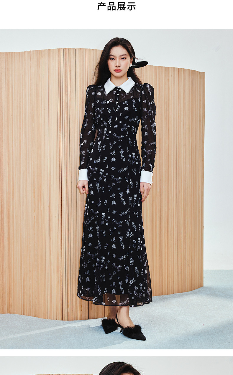 【SGPR】精致法式印花连衣裙文艺复古感钉珠收腰长裙(货号:MU86DR009)