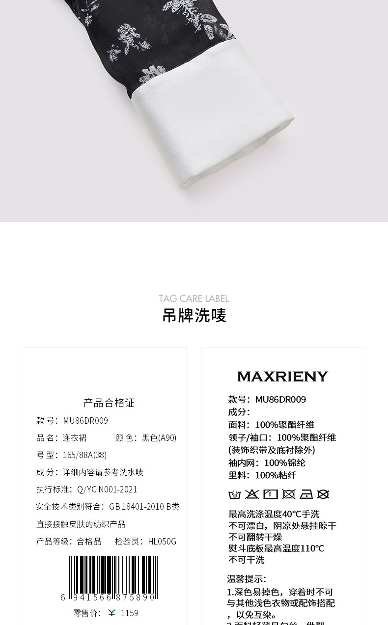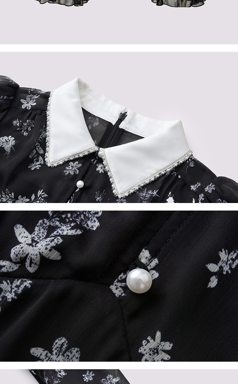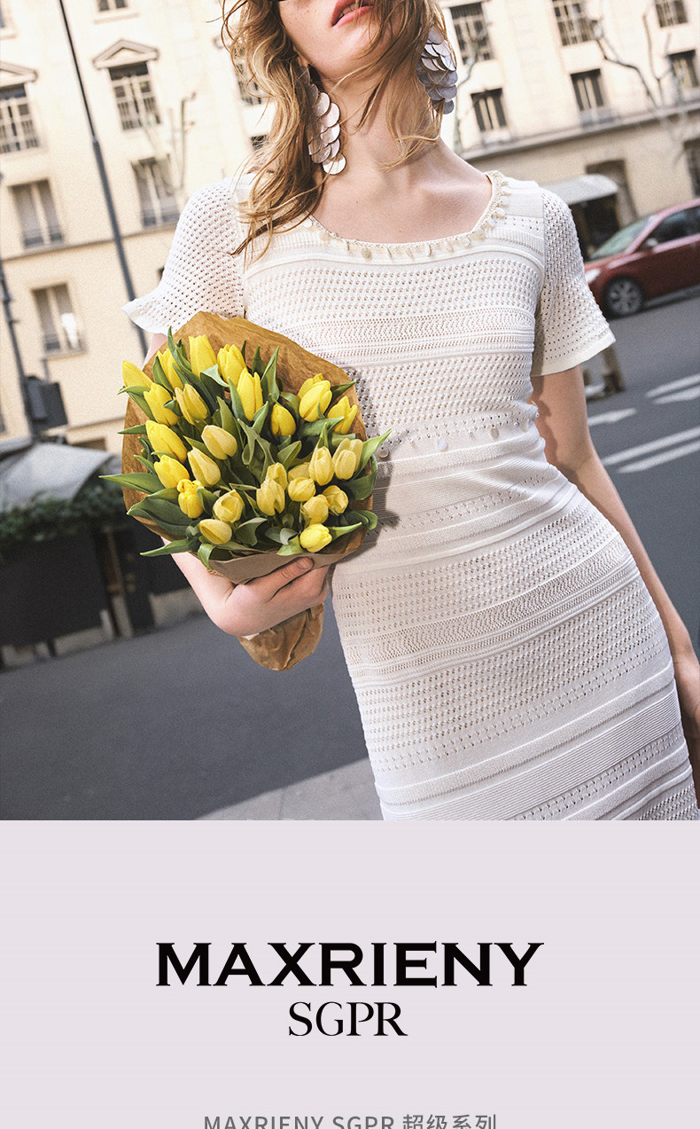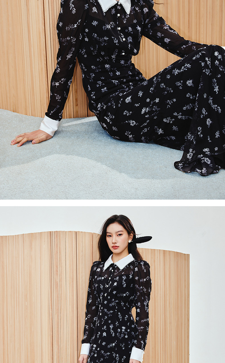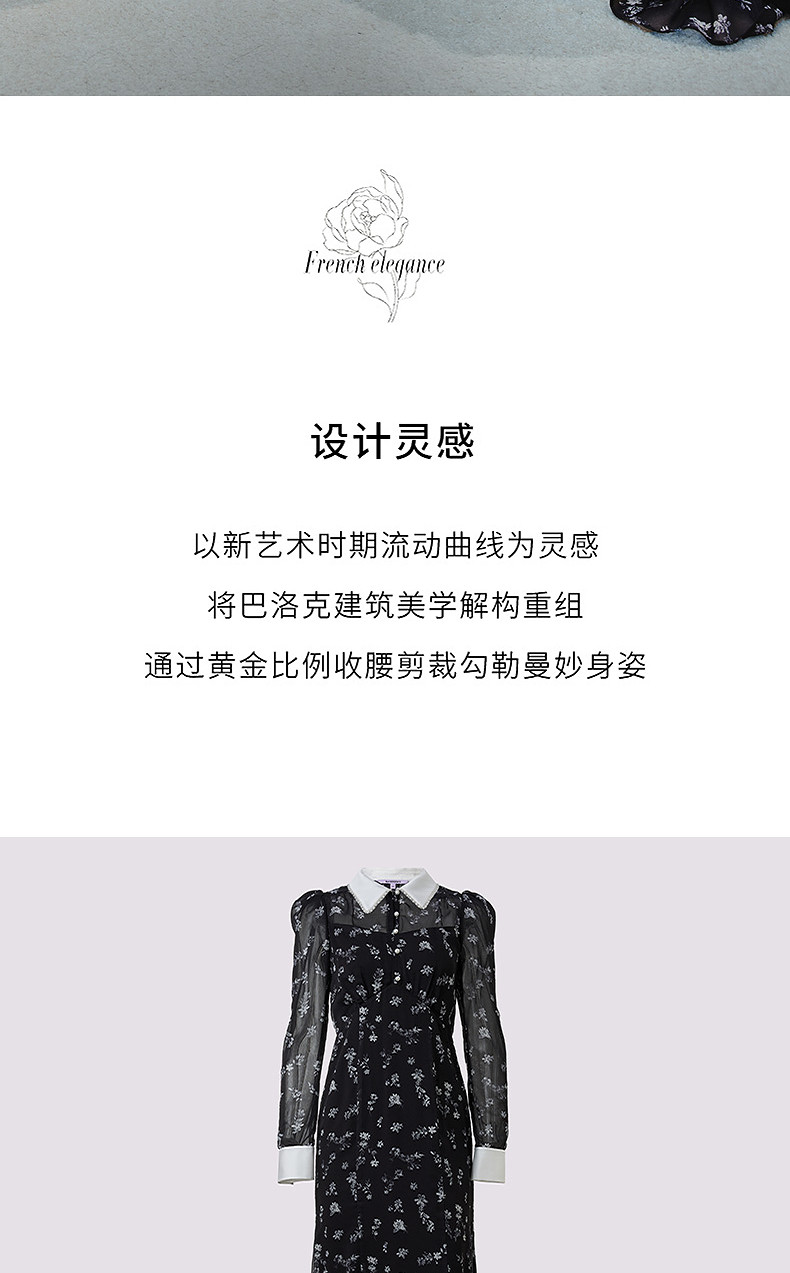 【SGPR】精致法式印花连衣裙文艺复古感钉珠收腰长裙(货号:MU86DR009)