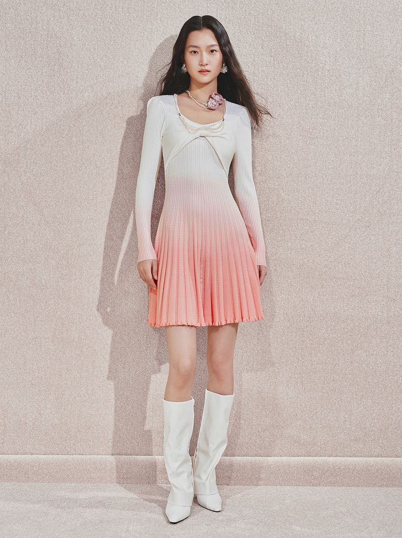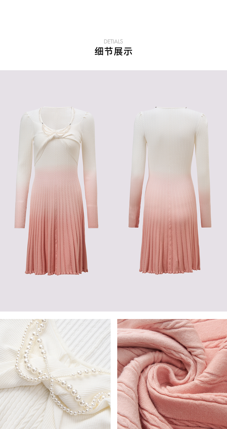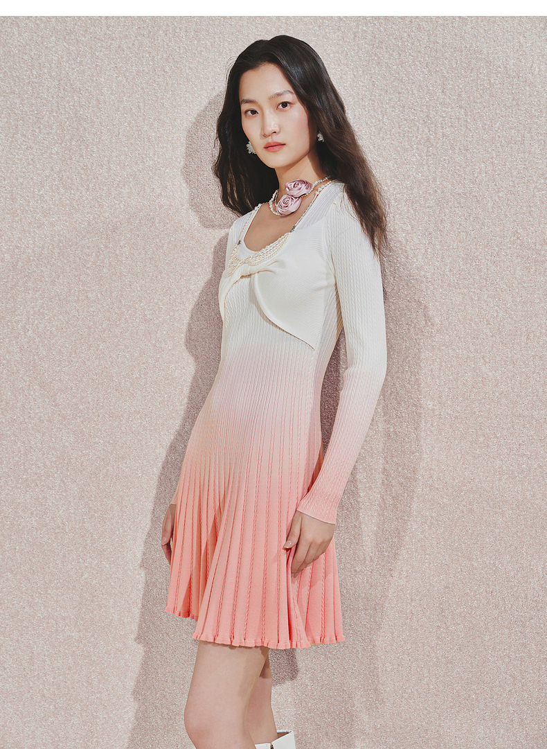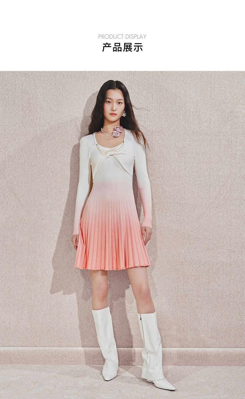 【贵雅日常-商场同款】MAXRIENY浪漫少女感扭结钉珠渐变连衣裙(货号:MC85DR545)