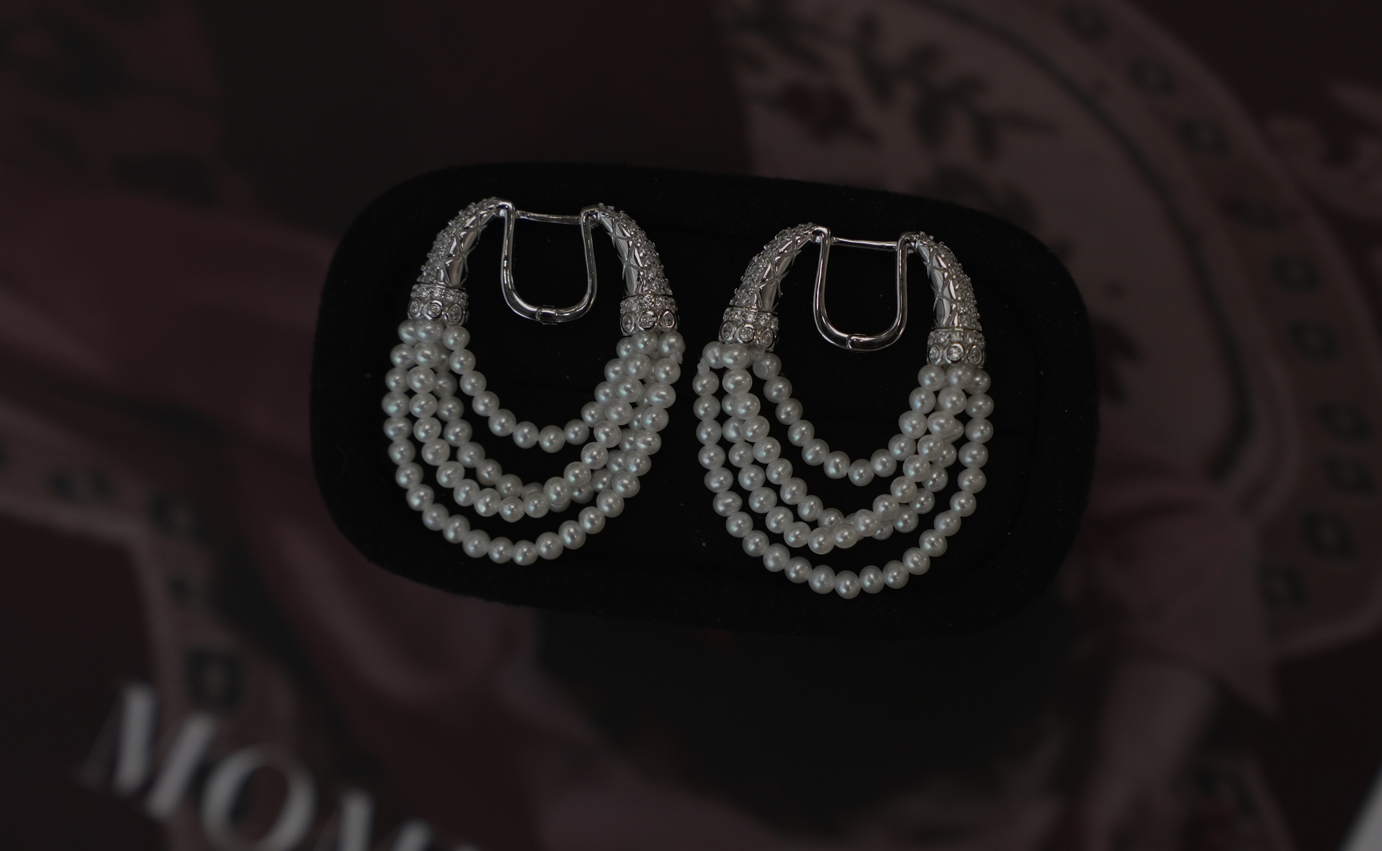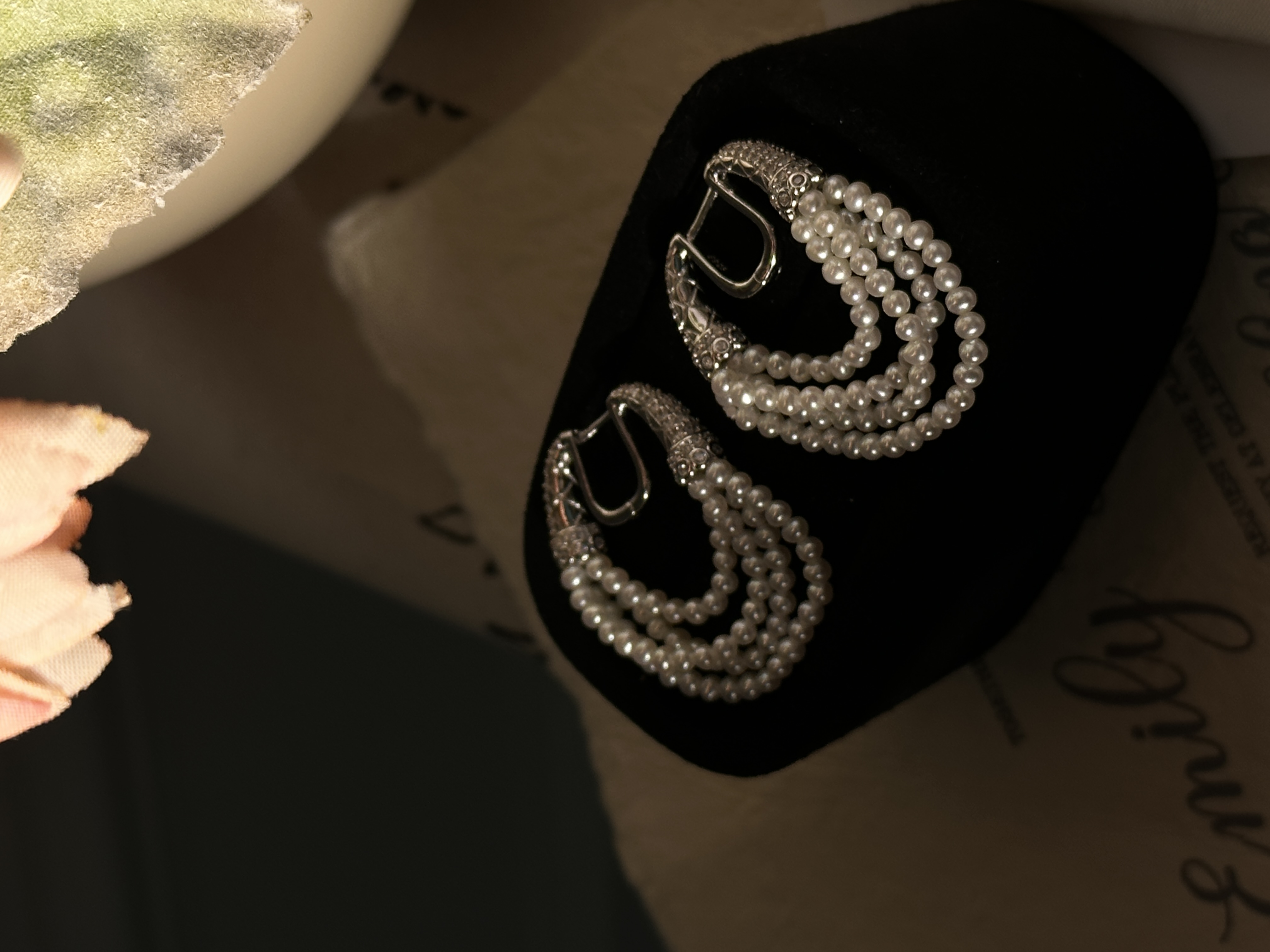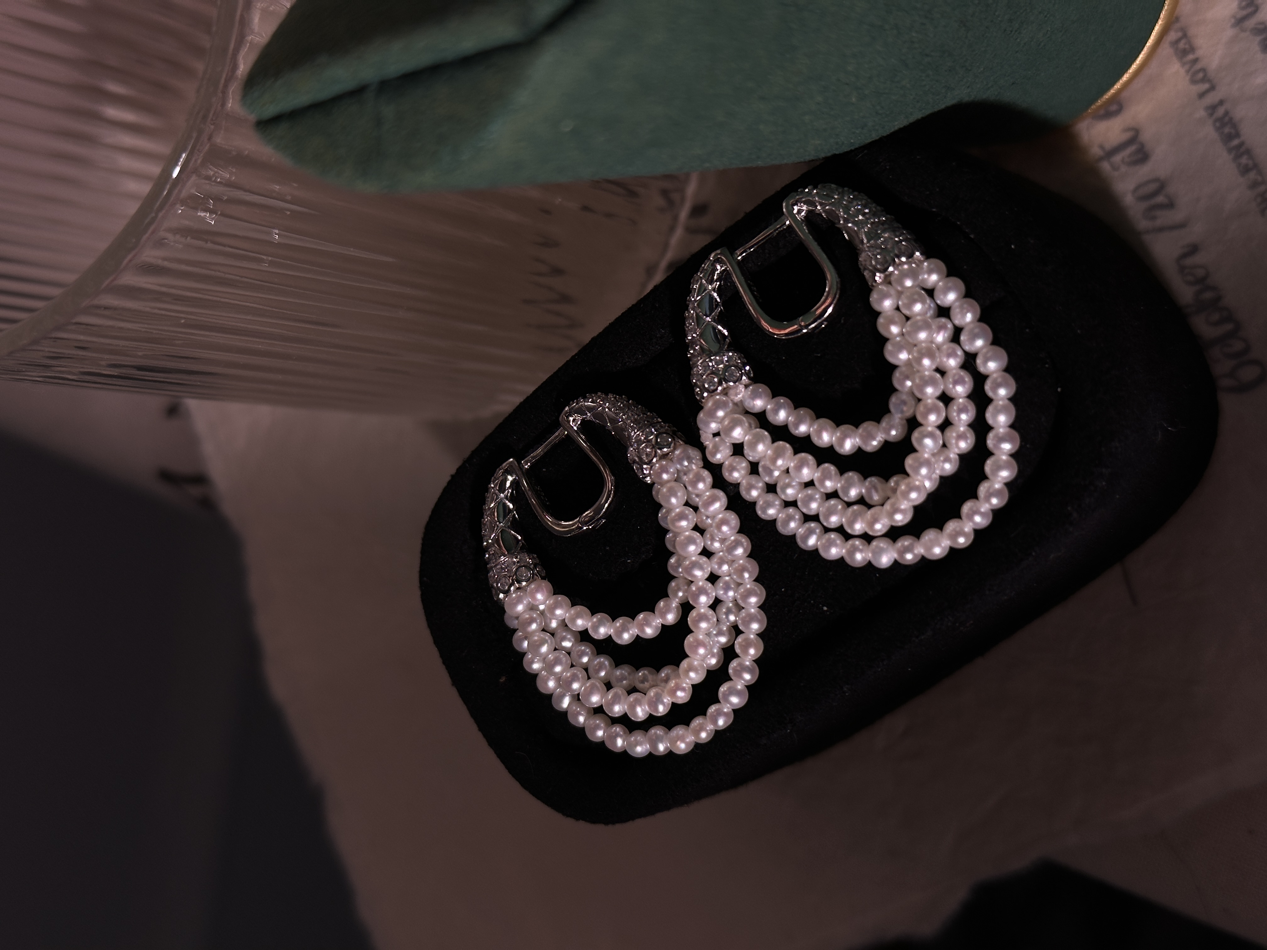 甄珠贝 复古&时髦设计款 朱珠同款 精工纯银耳圈 淡水ji光mini珠