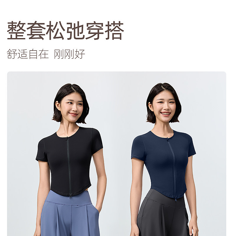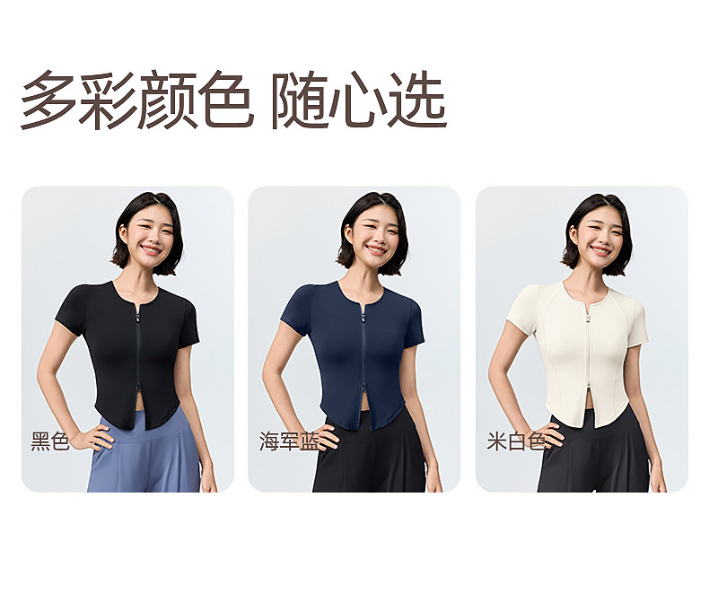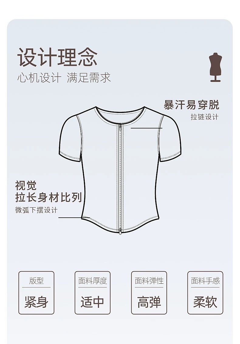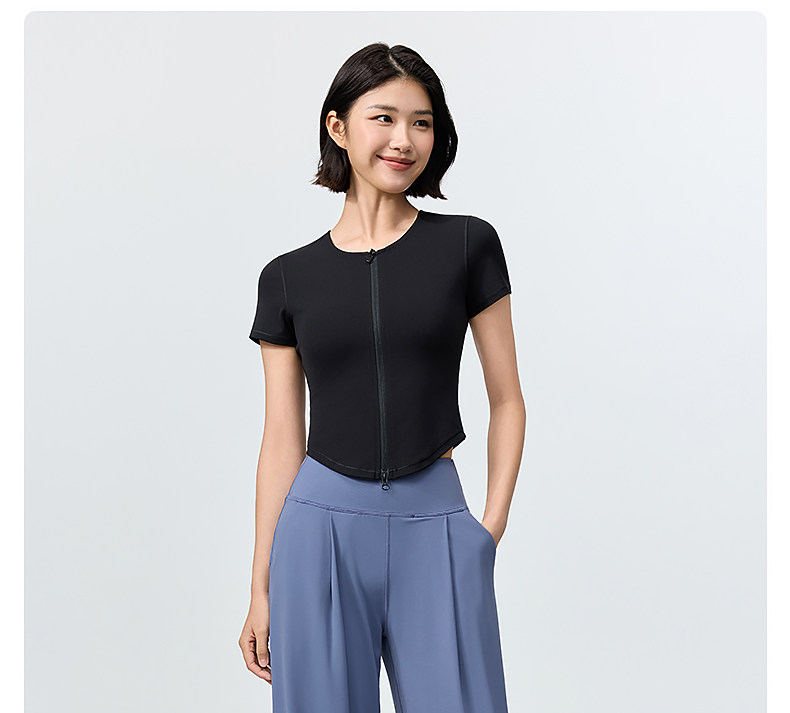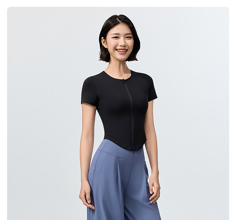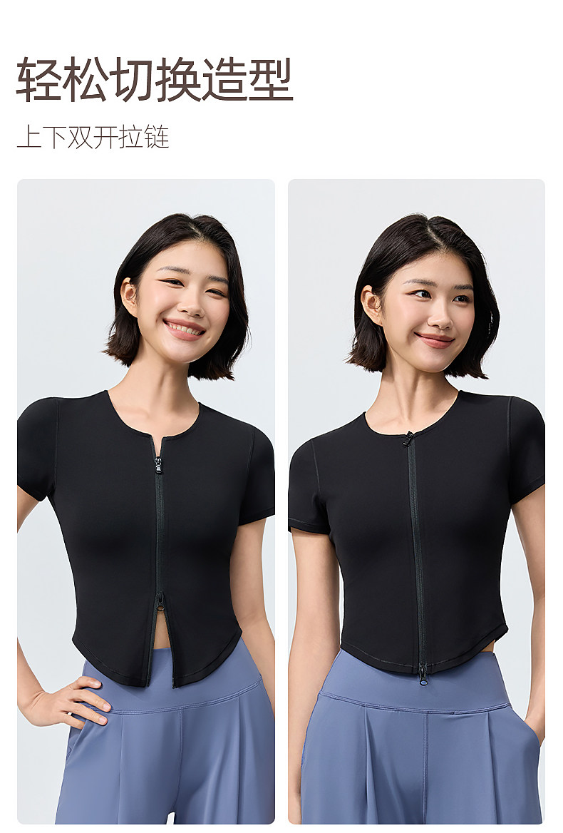 梵美人 F1507 瑜伽拉链短袖外套 无胸垫 莱卡云柔