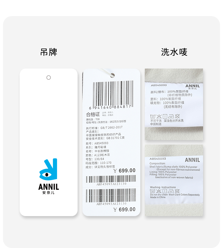 【实体店同款】男童中长款棉服冬季新款安奈儿童装AB545093