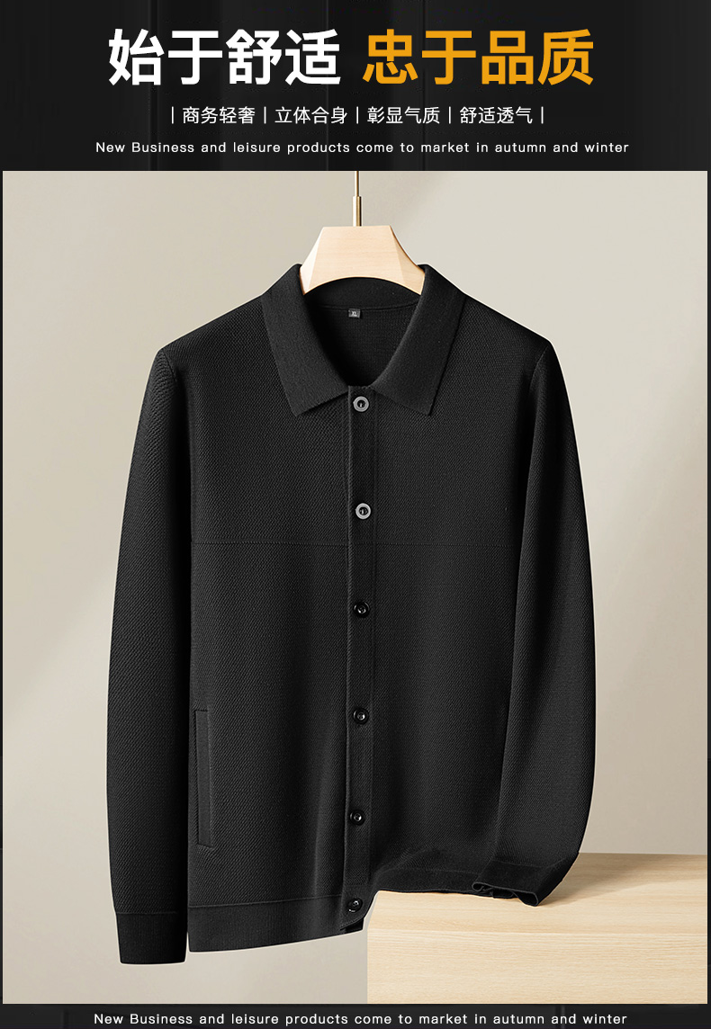 【新款DPF】大依优型大码男装翻领休闲开衫毛衣针织衫夹克外套舒适加肥加大男士上衣
