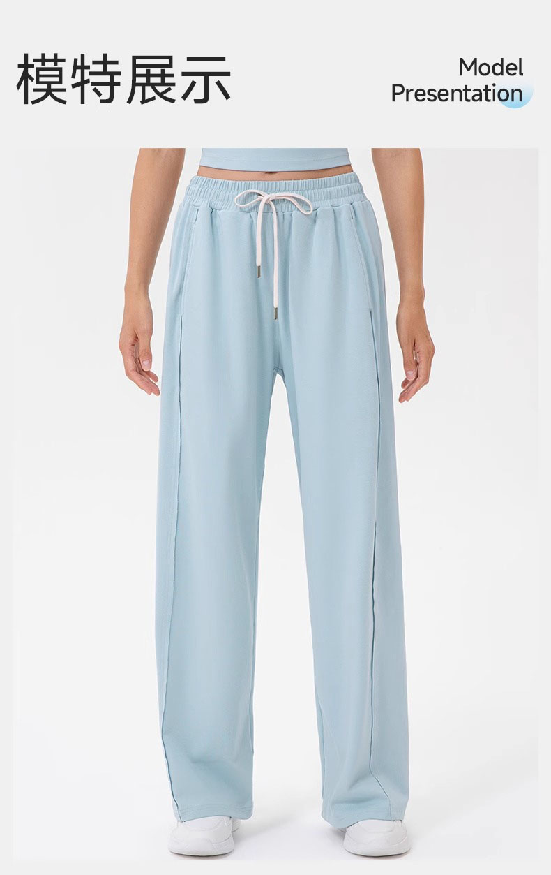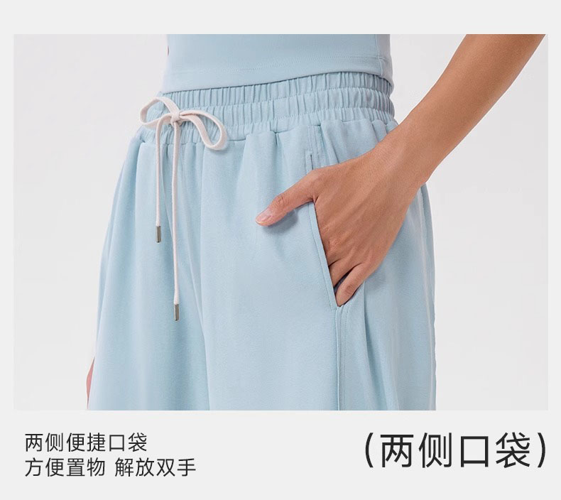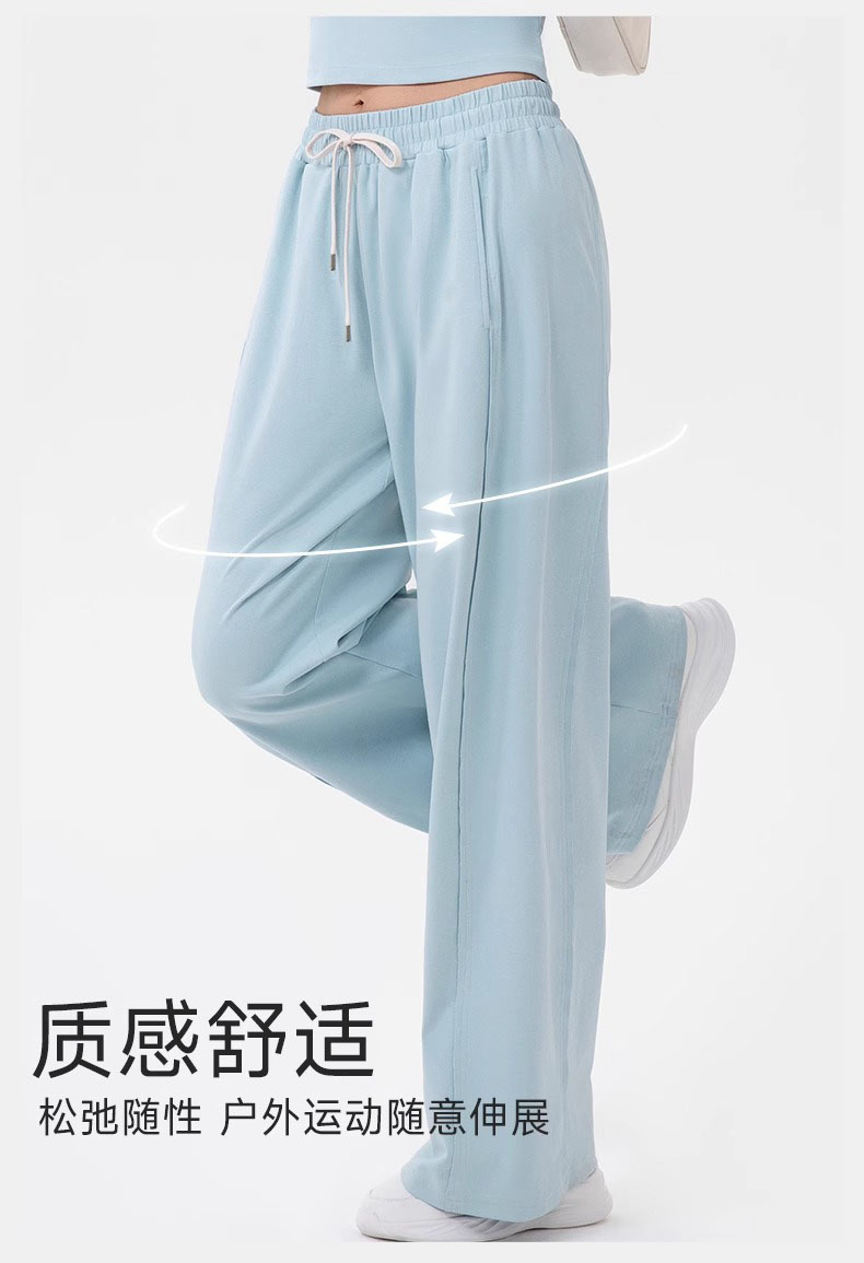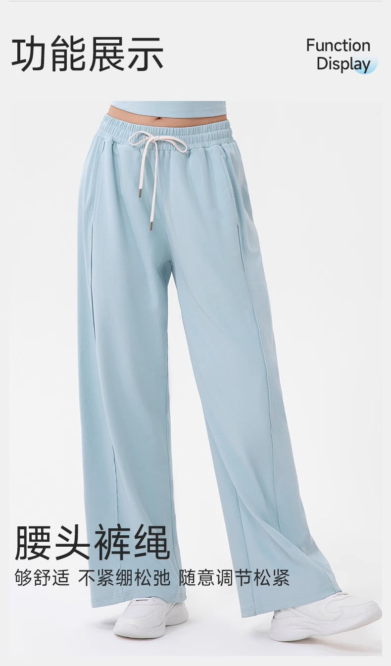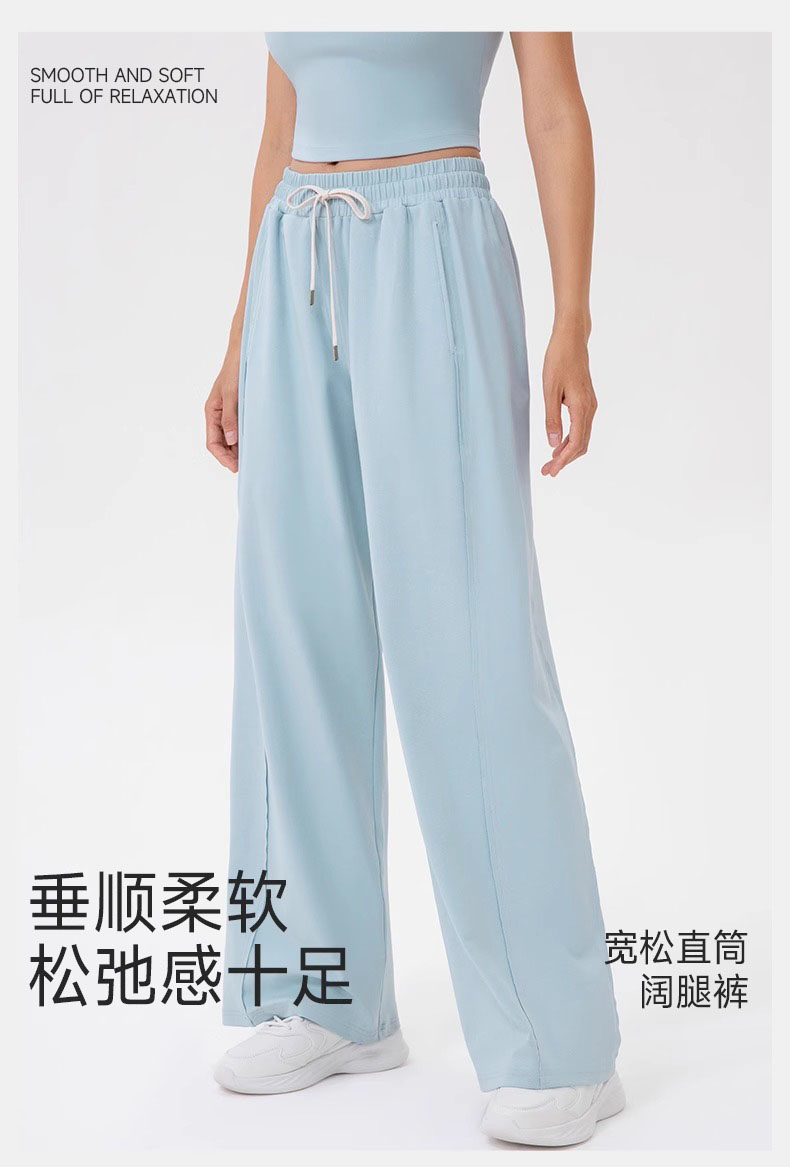 跃牌【欲动春风】系列 女阔腿瑜伽运动裤高腰抽绳宽松直筒休闲健身长裤52316