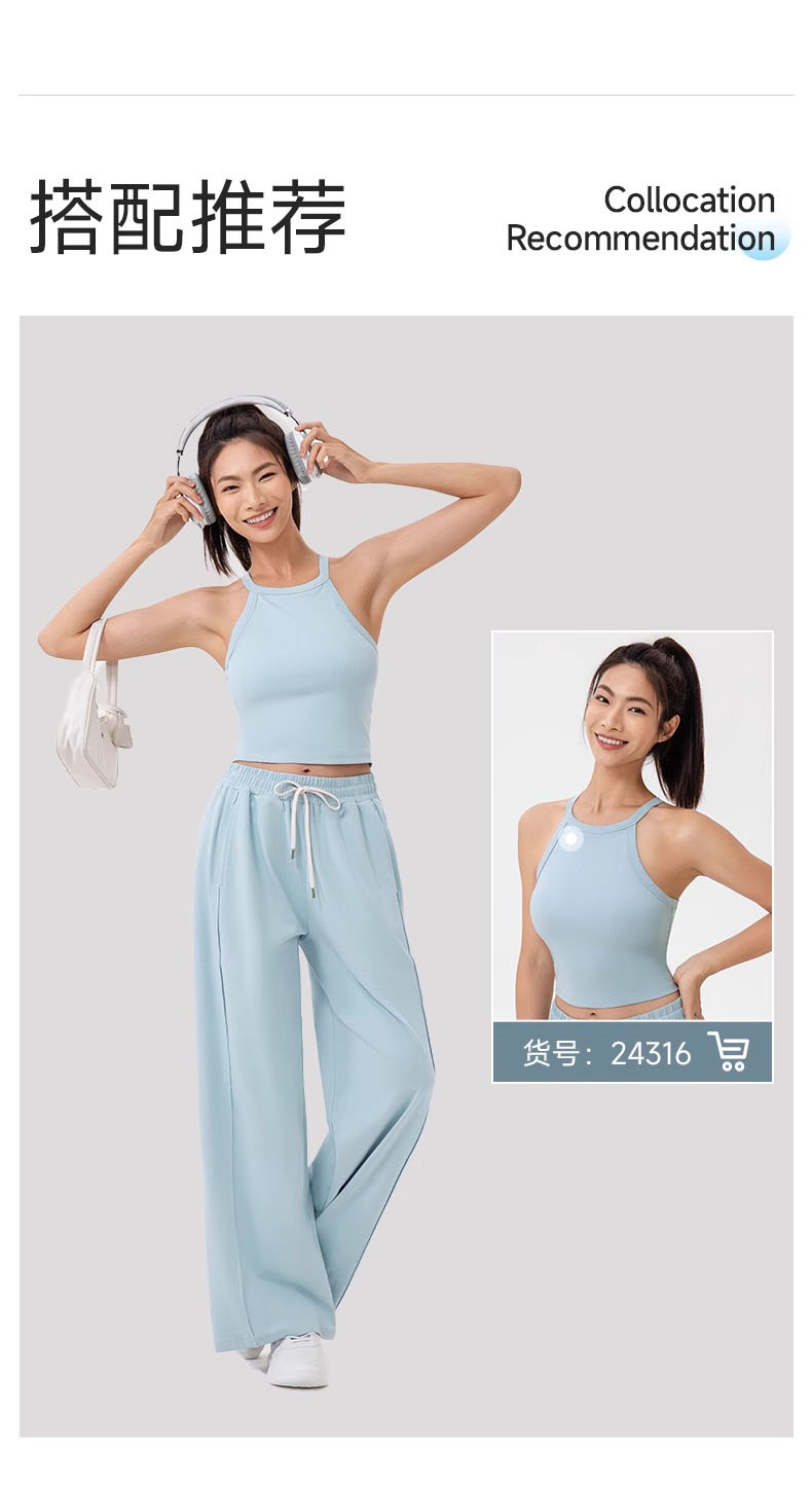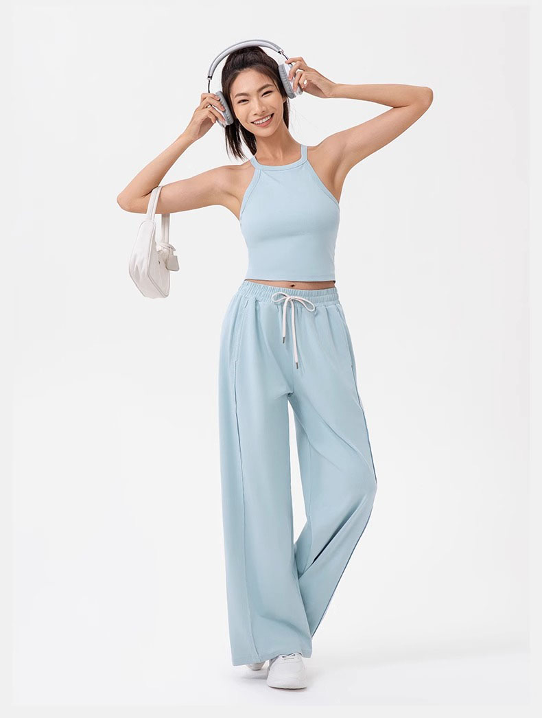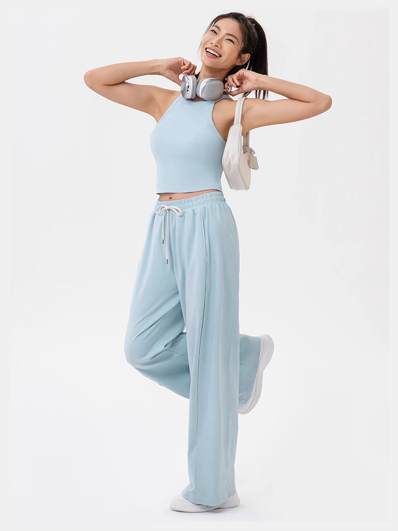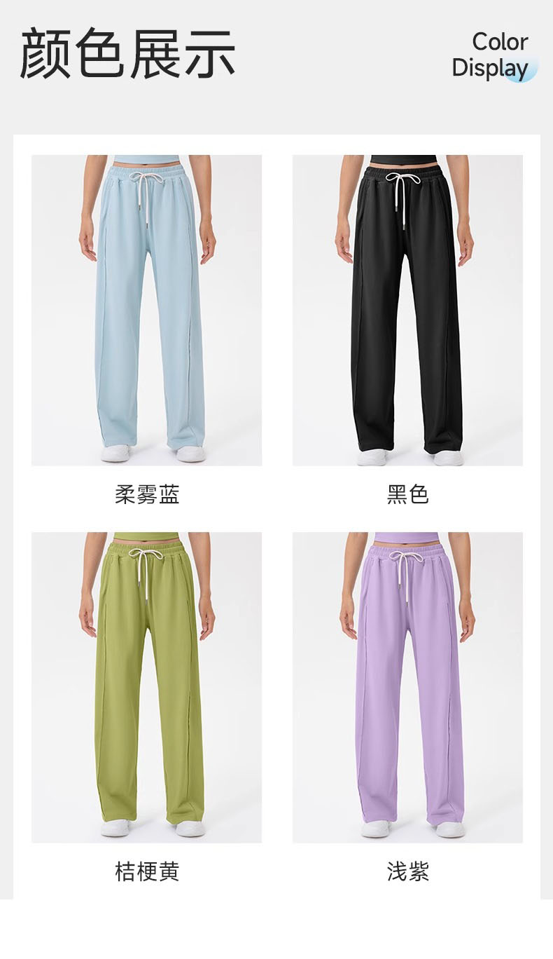 跃牌【欲动春风】系列 女阔腿瑜伽运动裤高腰抽绳宽松直筒休闲健身长裤52316