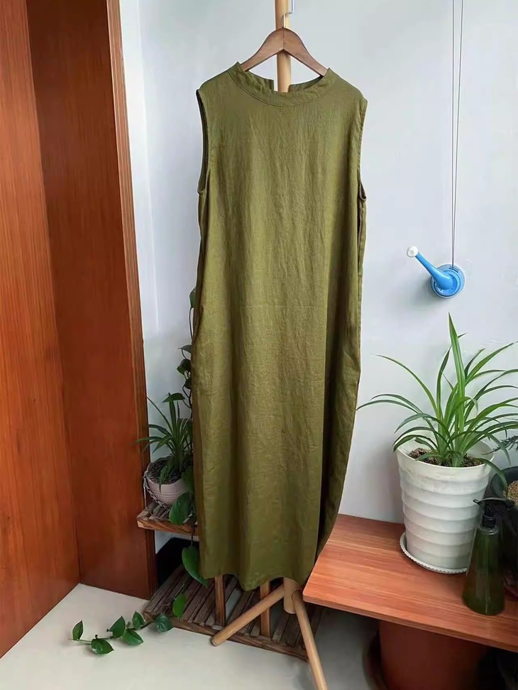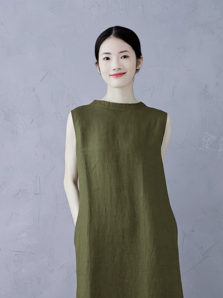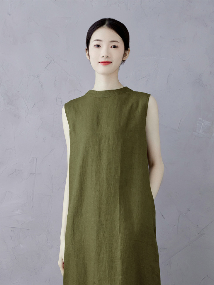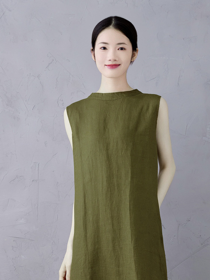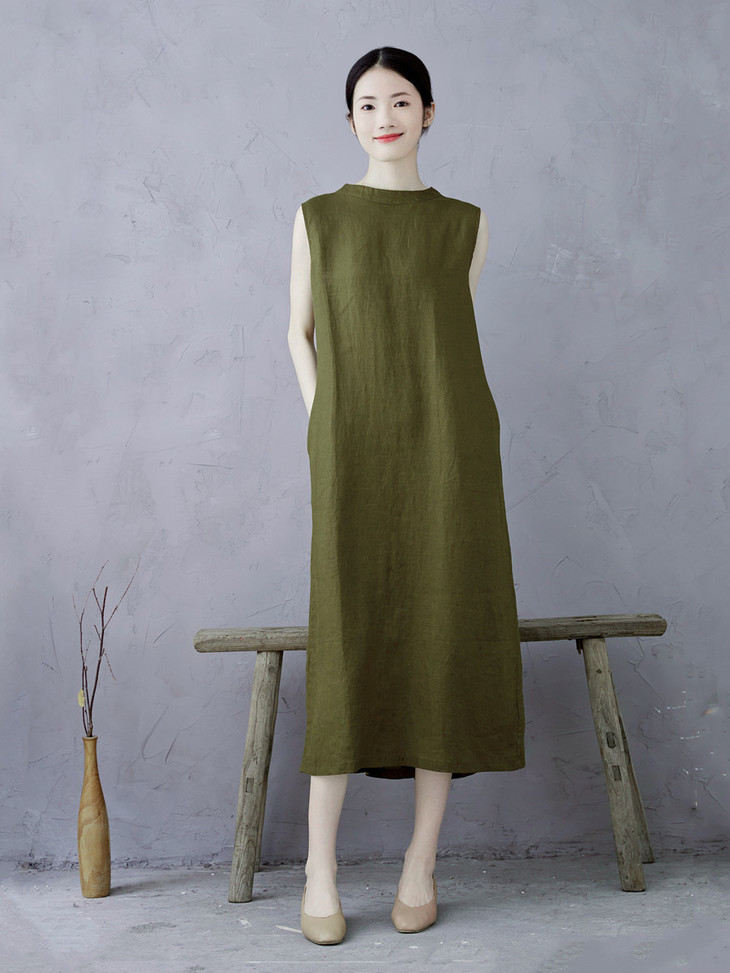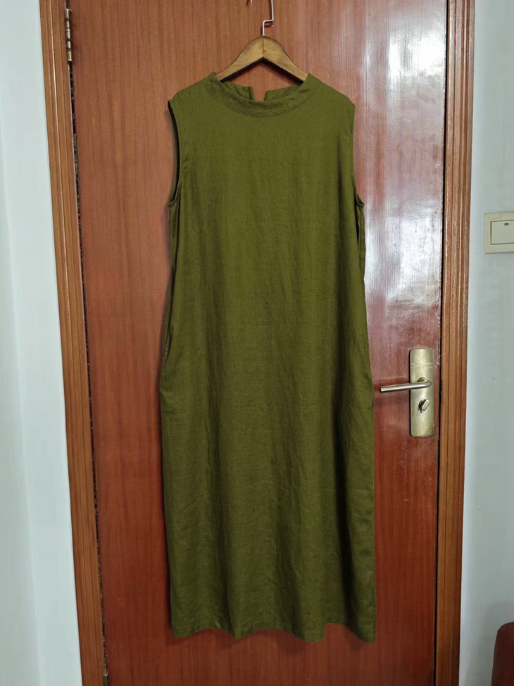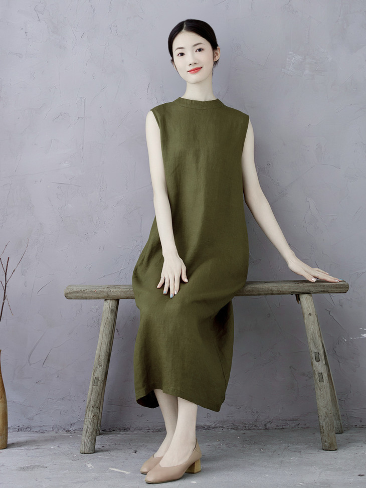 秋香色亚麻连衣裙文艺外穿内搭复古春夏秋【预售3天】GYD0622 商品图0
