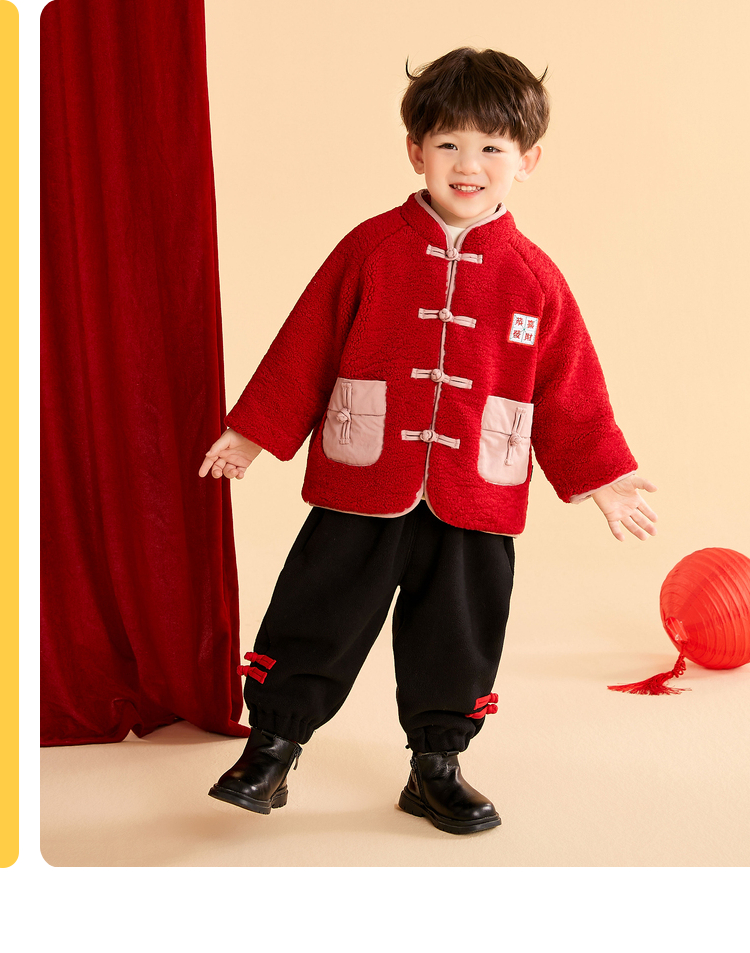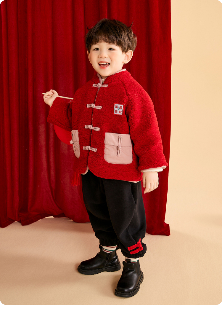 【清仓】嘟嘟家儿童男童女宝冬季三层夹棉拜年服套装BSG122DCF418