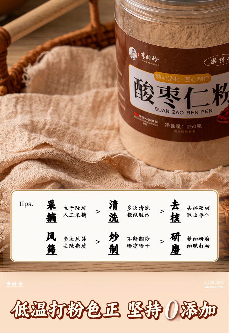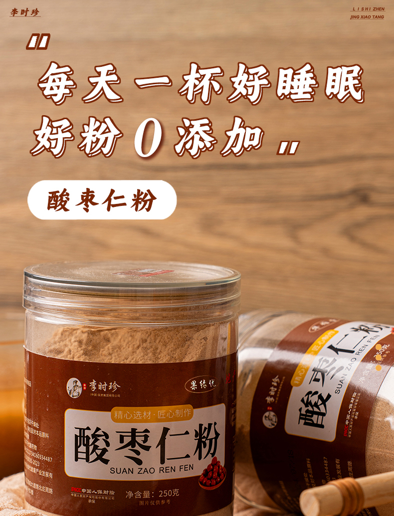 专属 【买5送4 一天一杯整晚安睡 】李时珍酸枣仁粉品超仁粉炒熟野生酸细枣丸膏睡眠安250g/罐