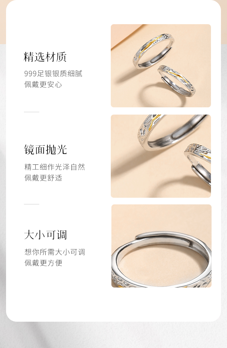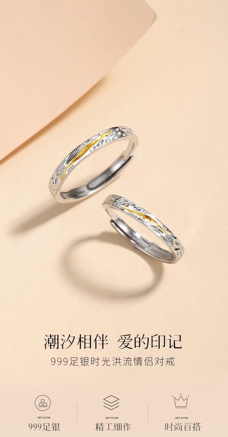Winy 999足银时光洪流情侣对戒配证书浪漫表白节日礼物