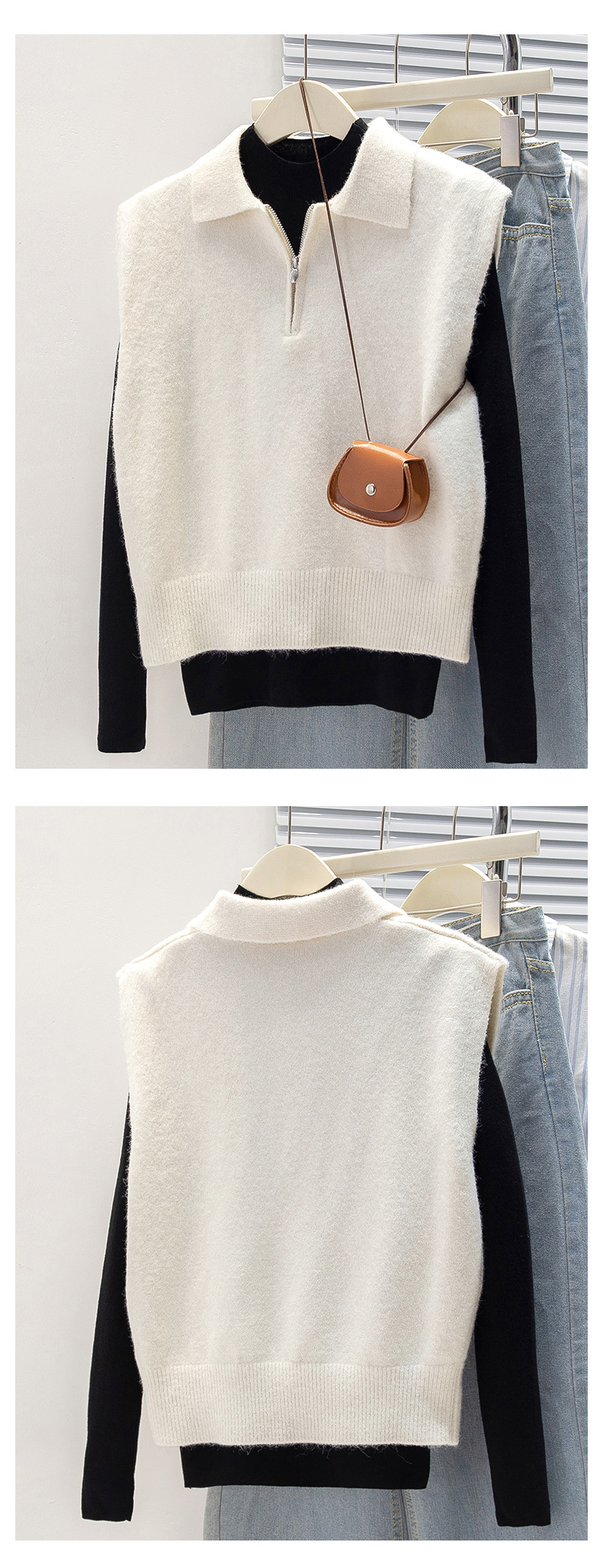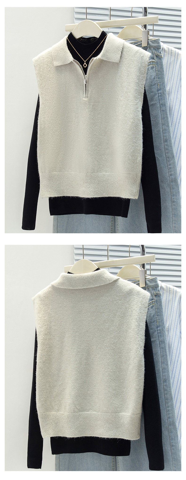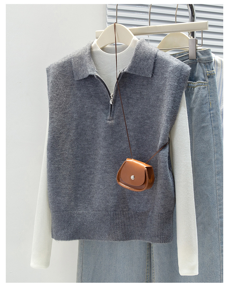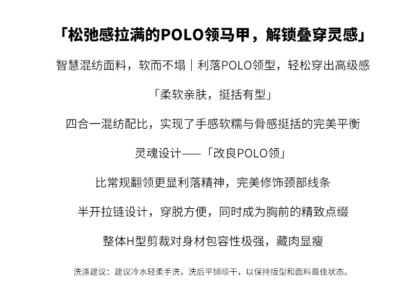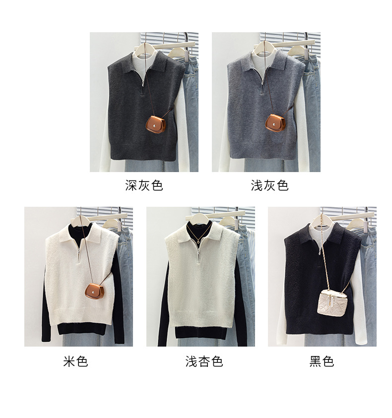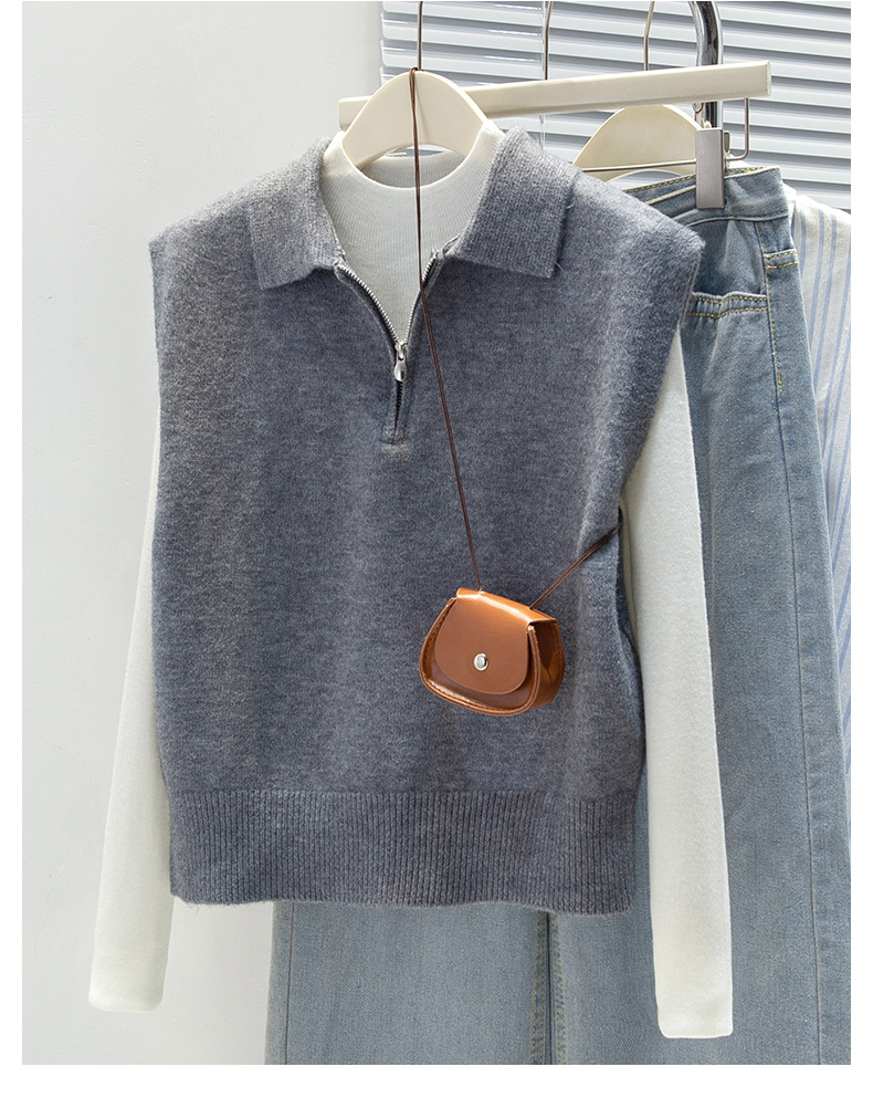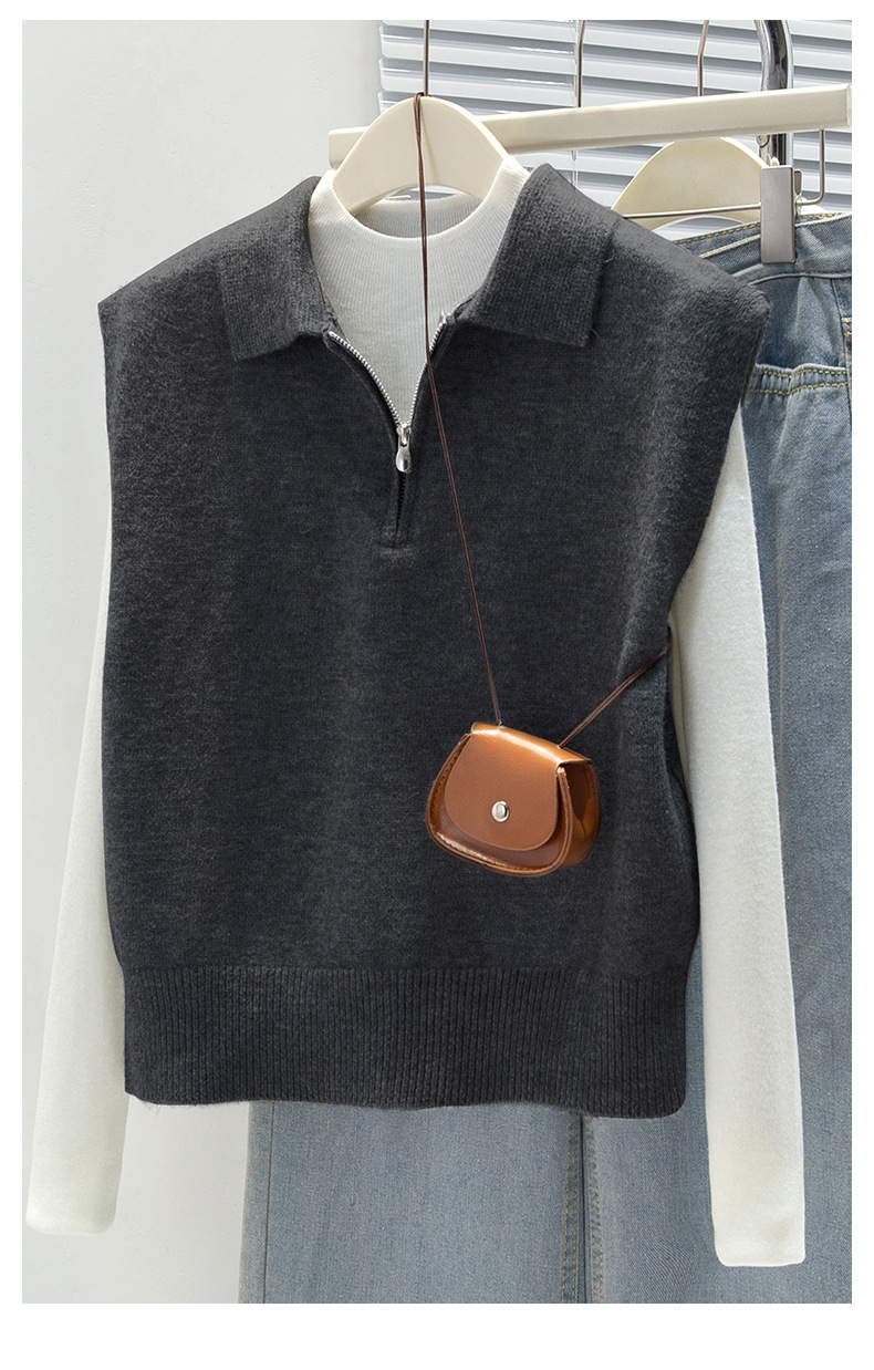 馥迦利落百搭半拉链马甲背心